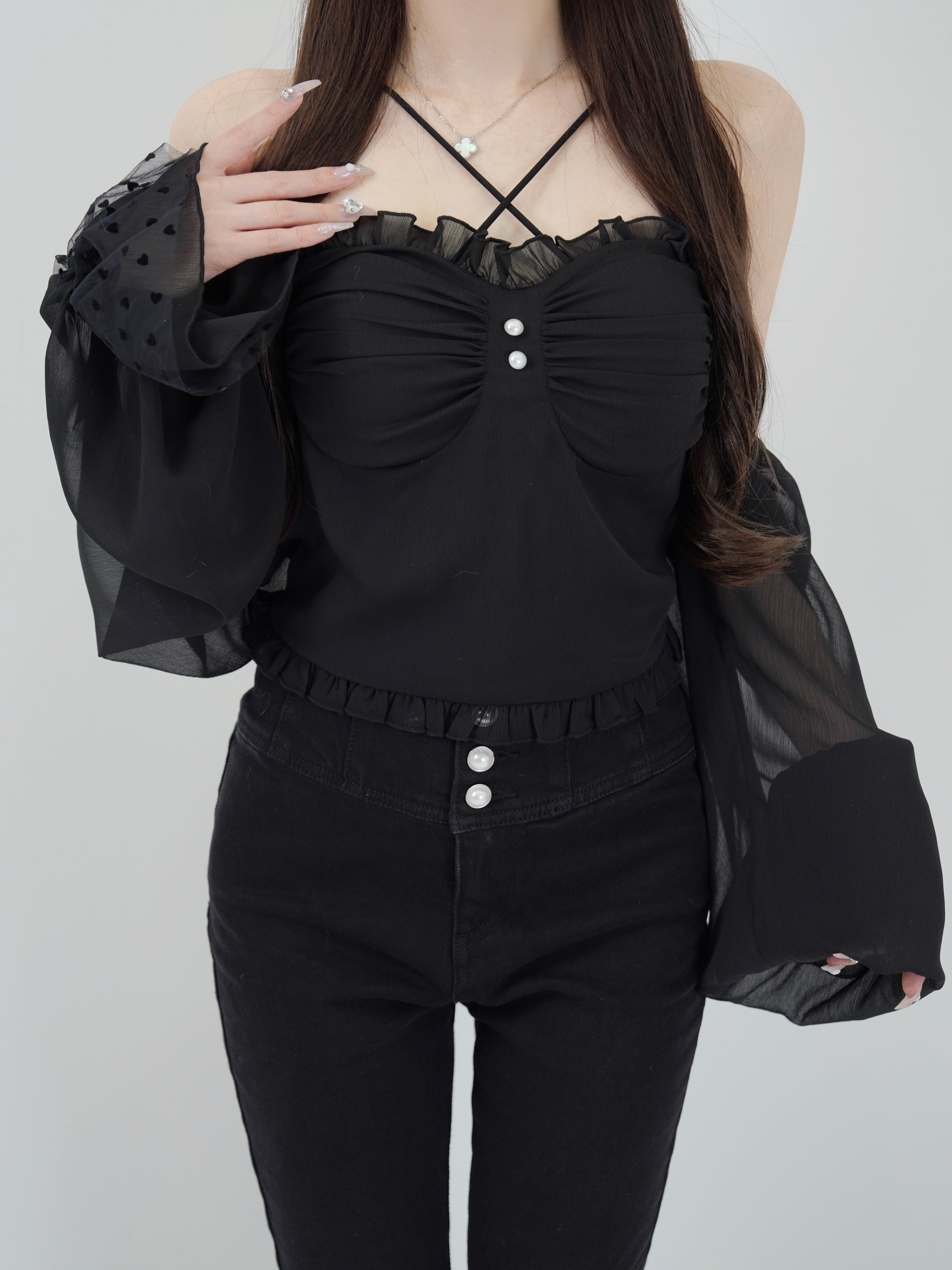 Lumignon original ♥ Mellow Heart Tulle Top 【ブラック】