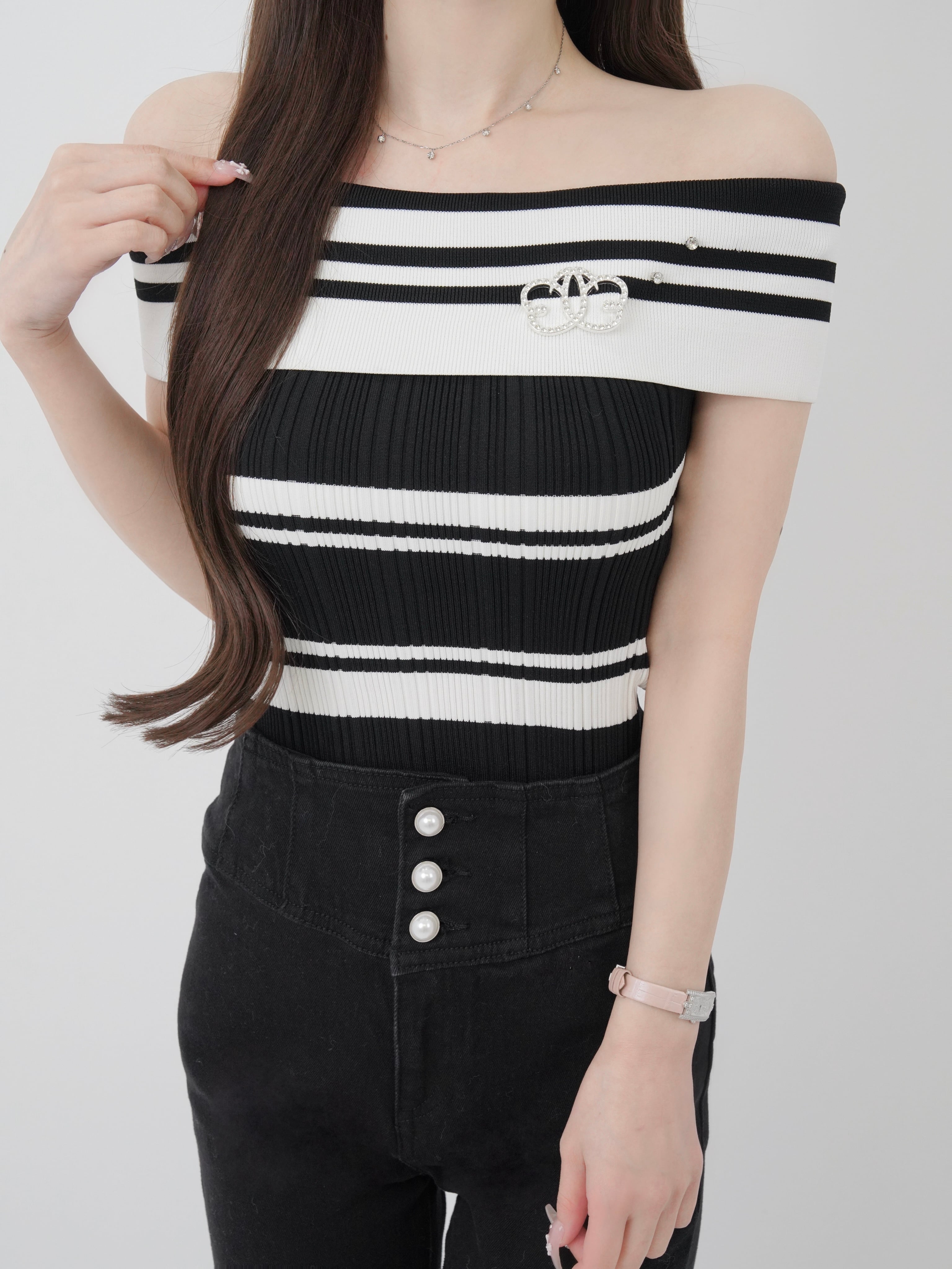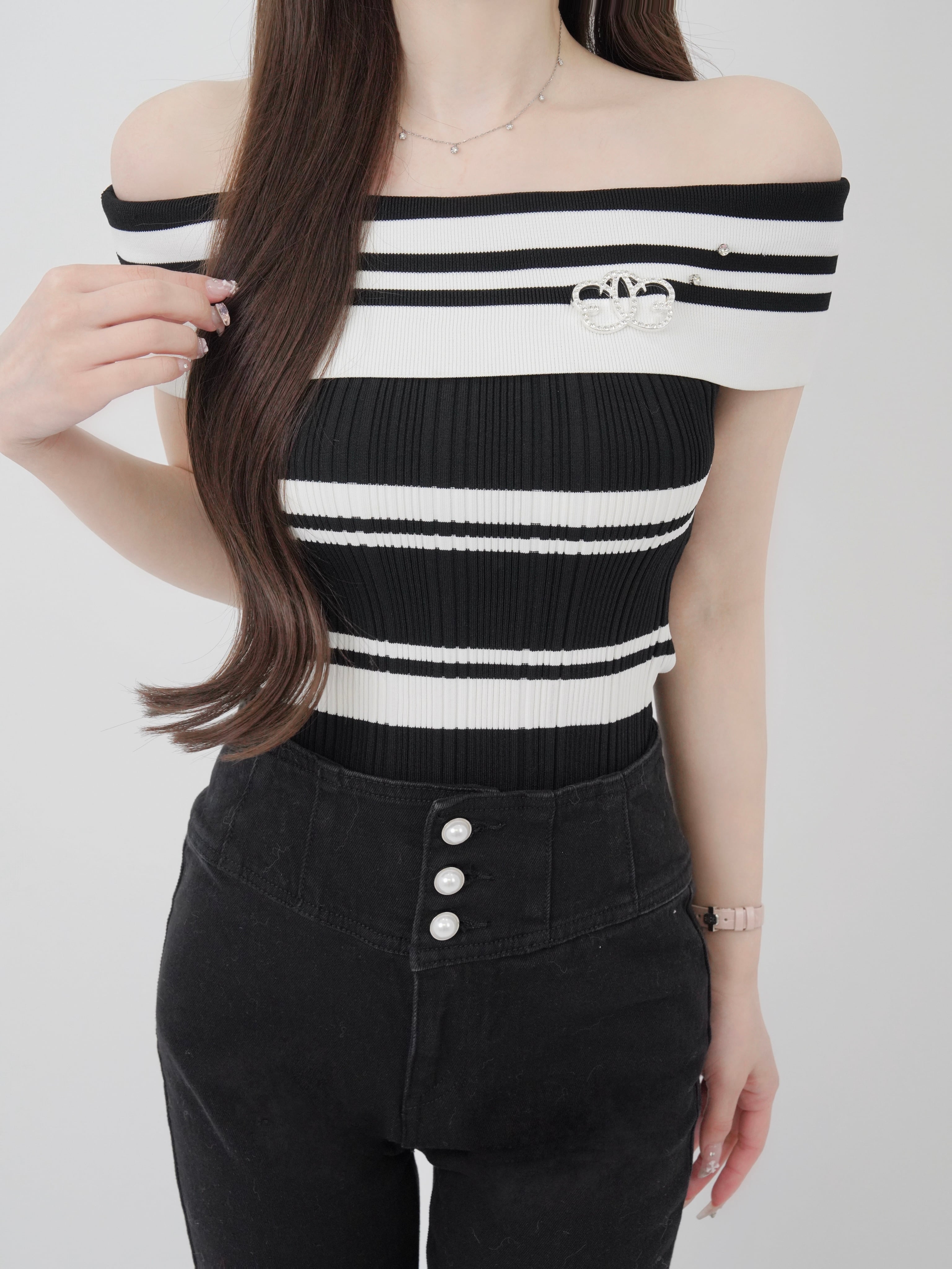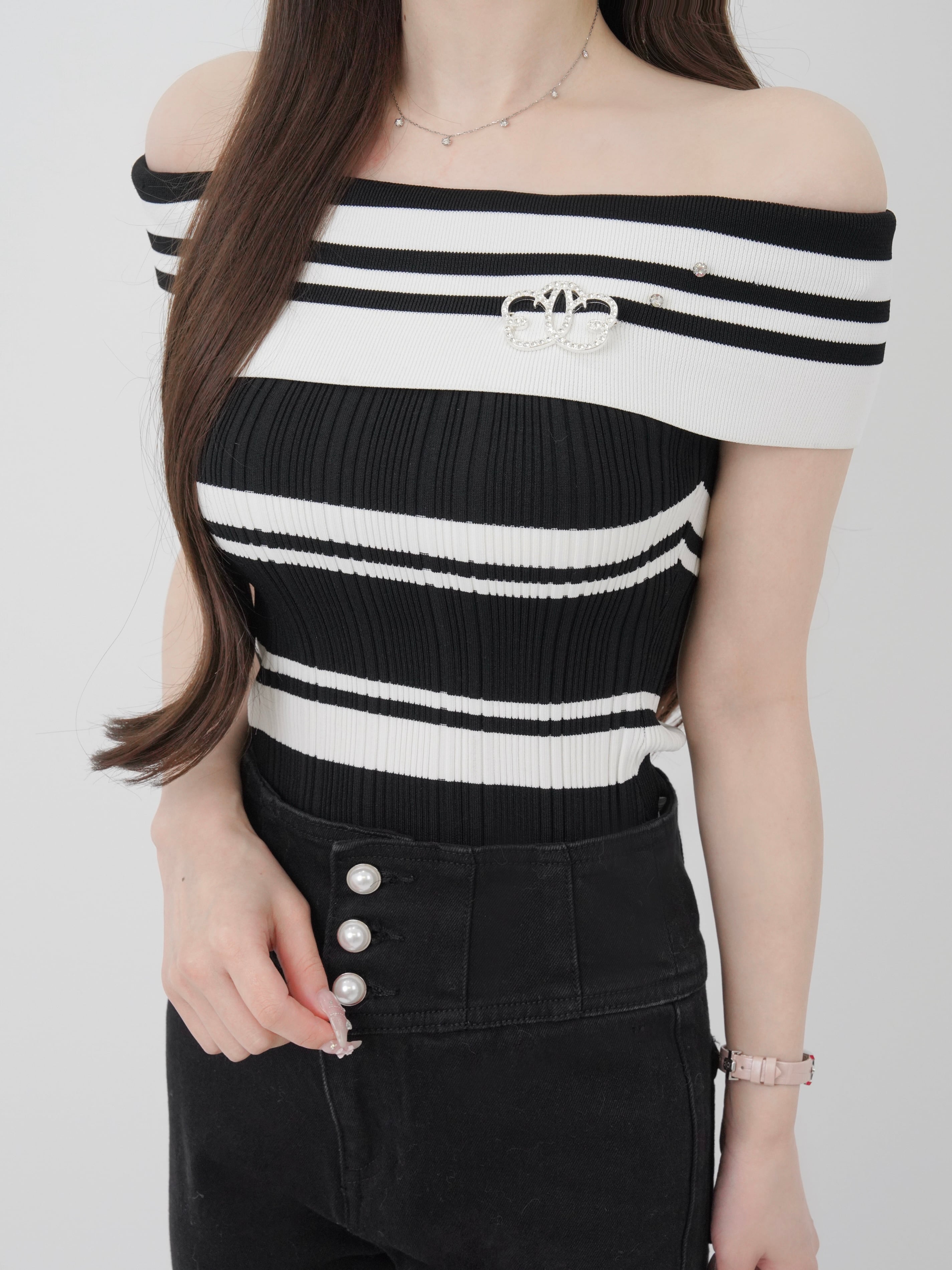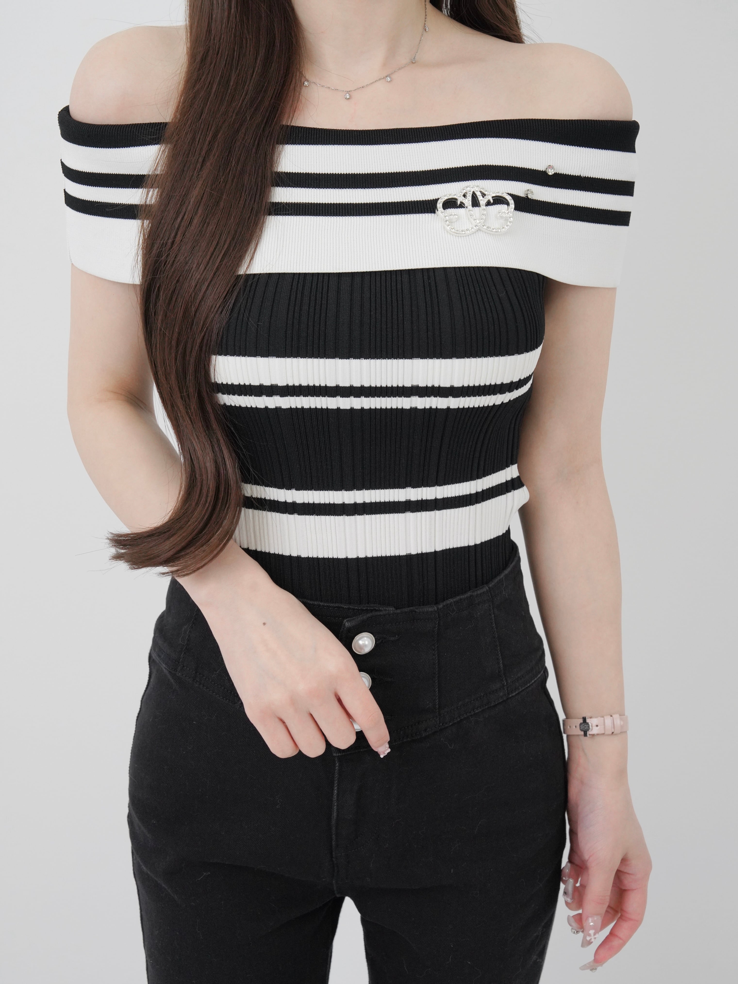 Lumignon original ♥ lumi papillon off shoulder top【ボーダー】