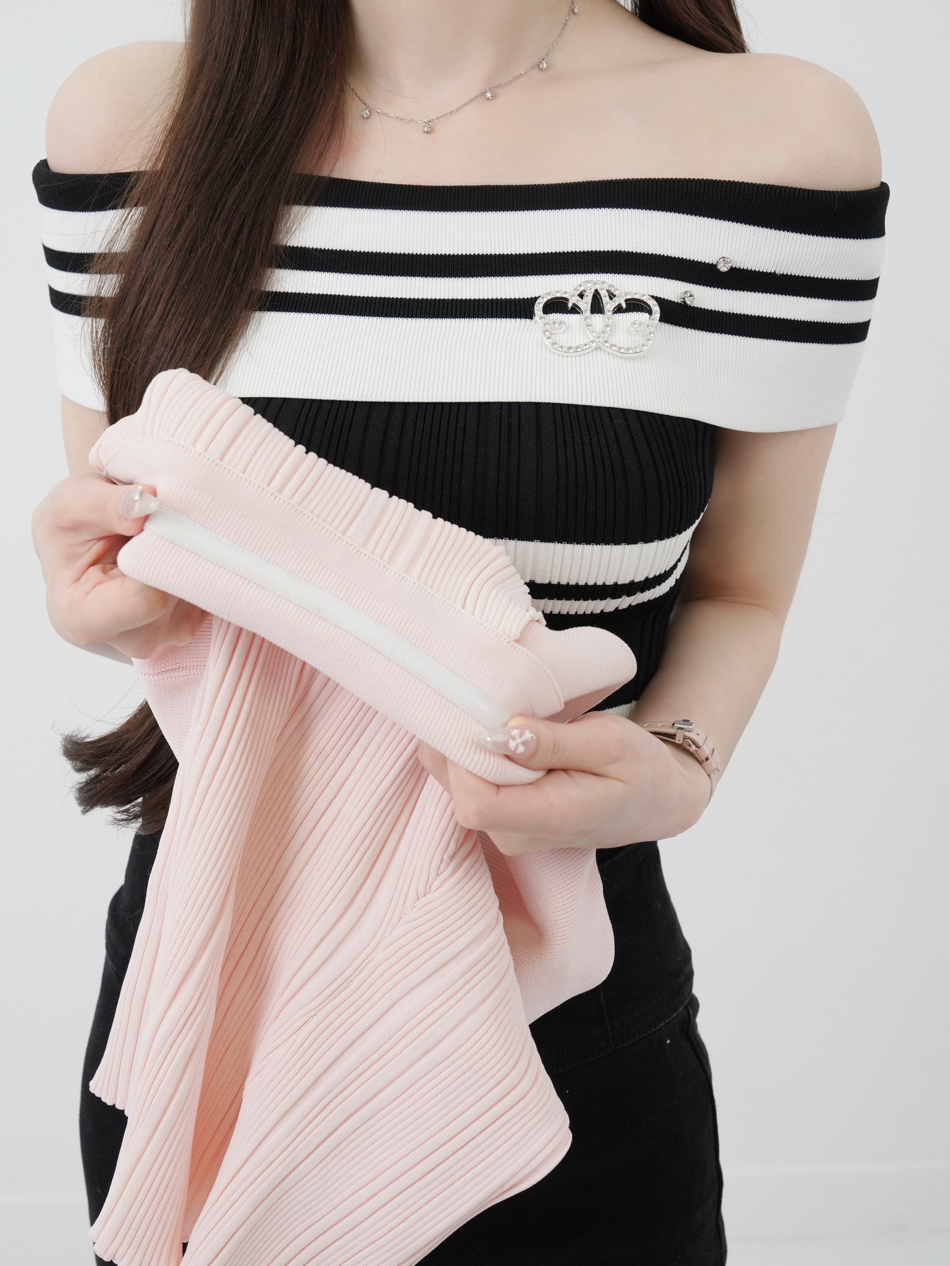 ・肩から腕にかけてなだらかに沿うオフショル設計で上半身がすっきり