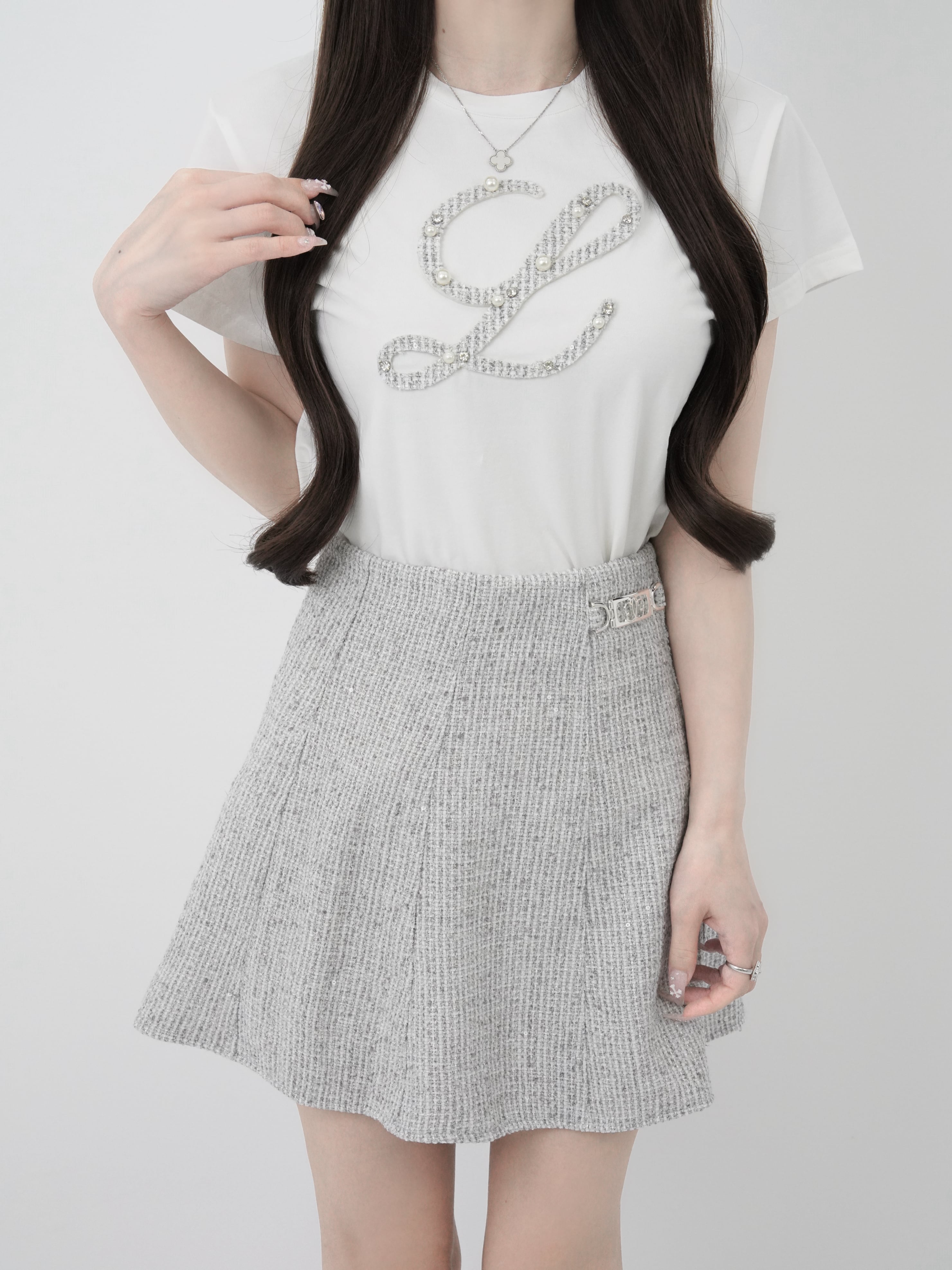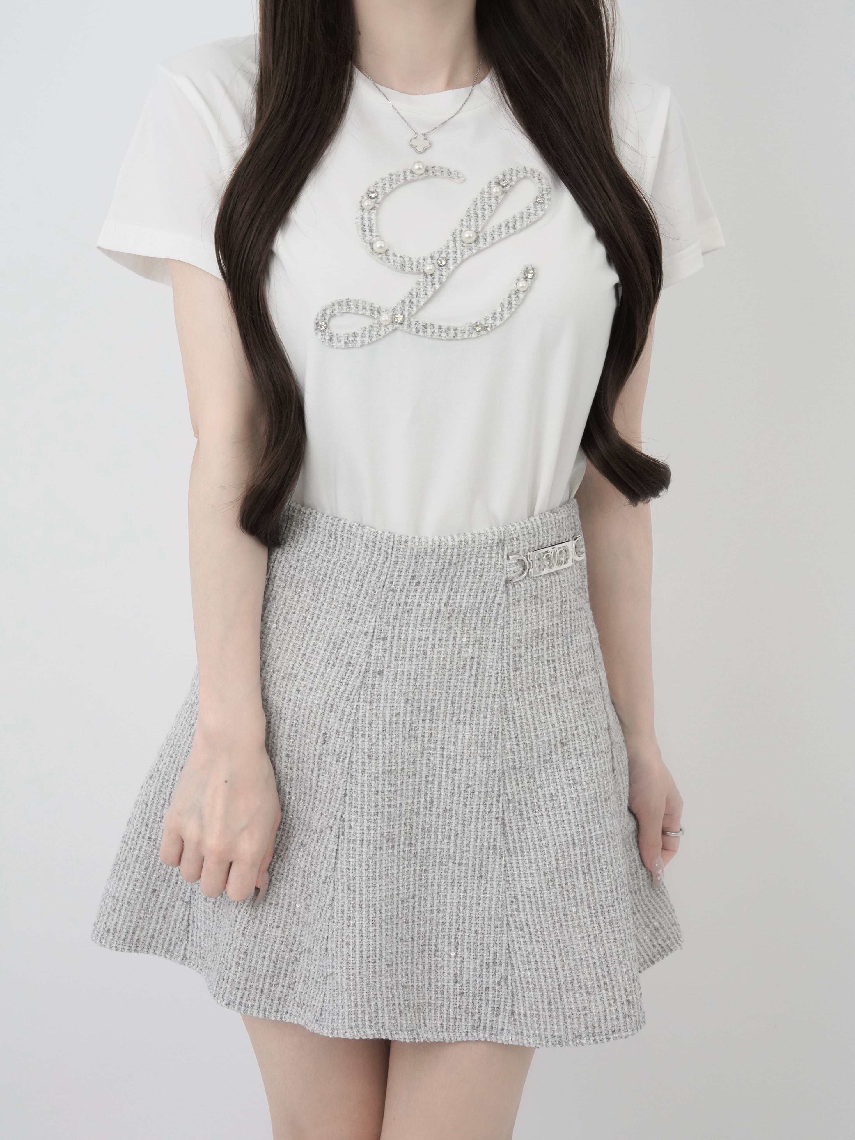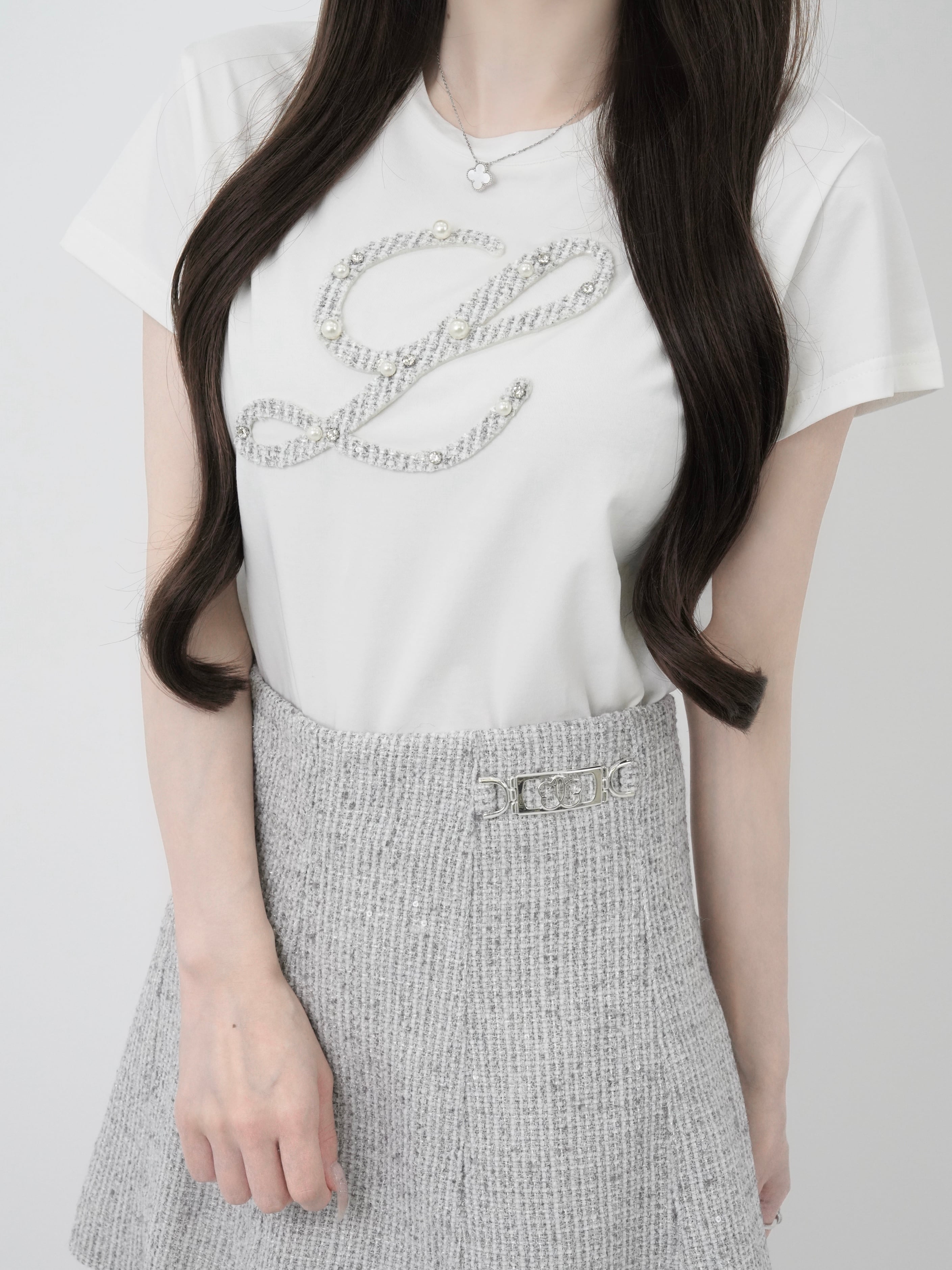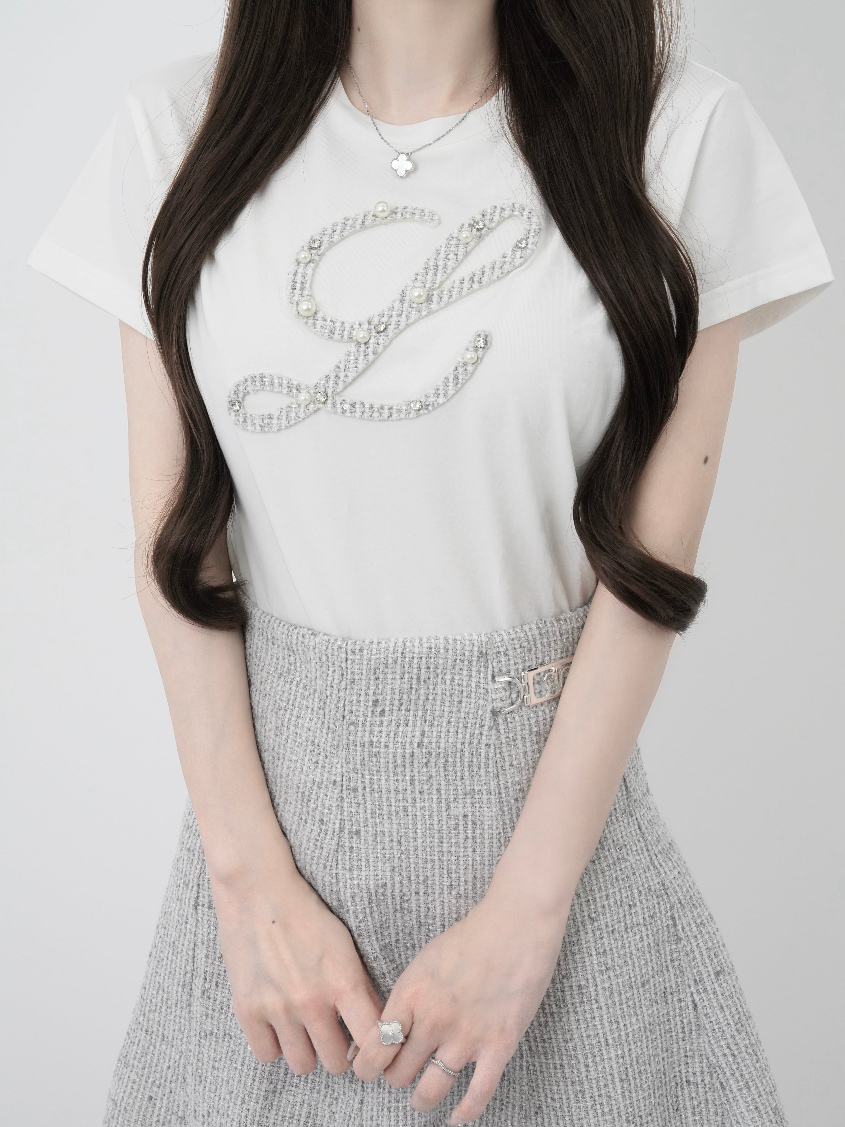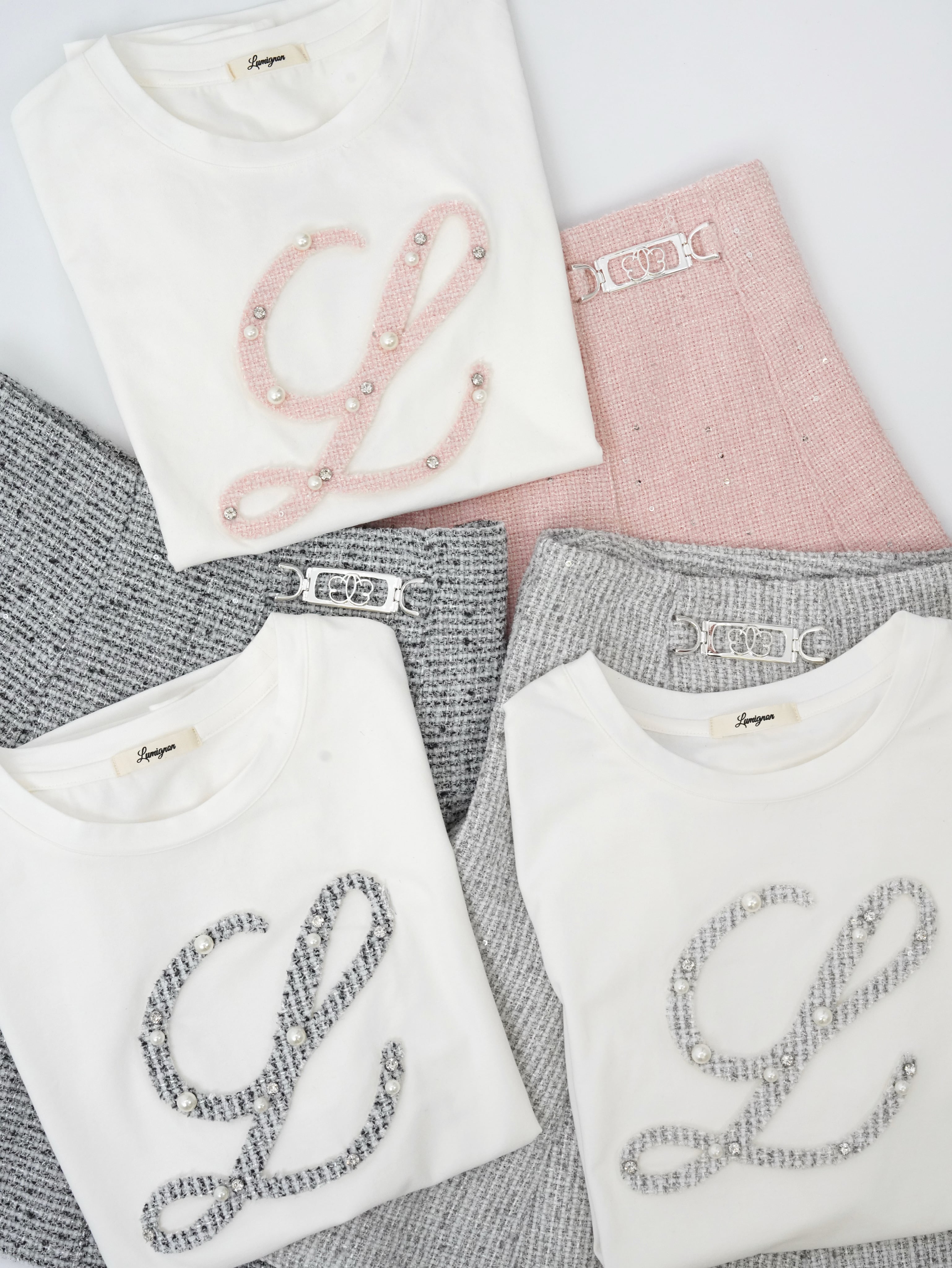 ・Lロゴをツイード×パール×ビジューで贅沢にアップリケ