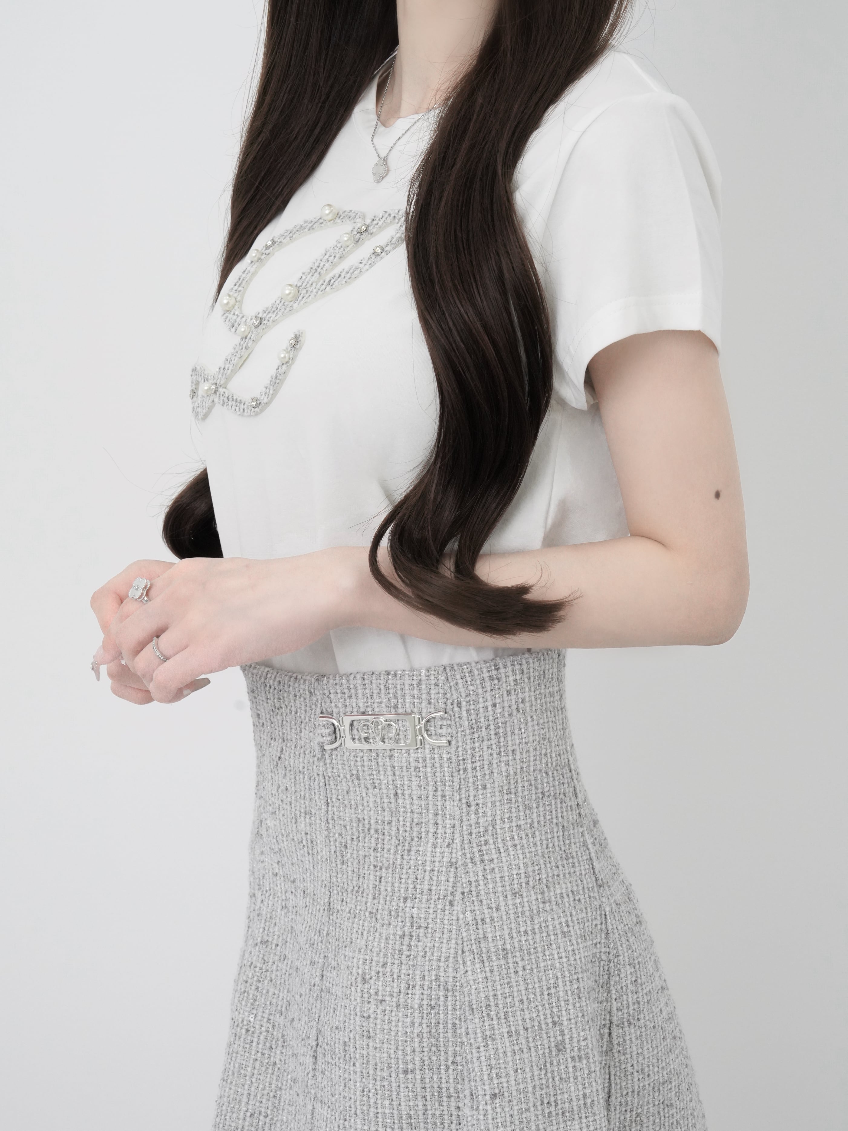 立体ツイード×パール×ビジューで