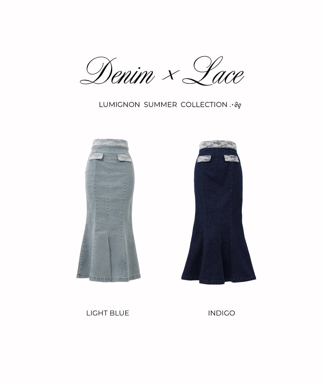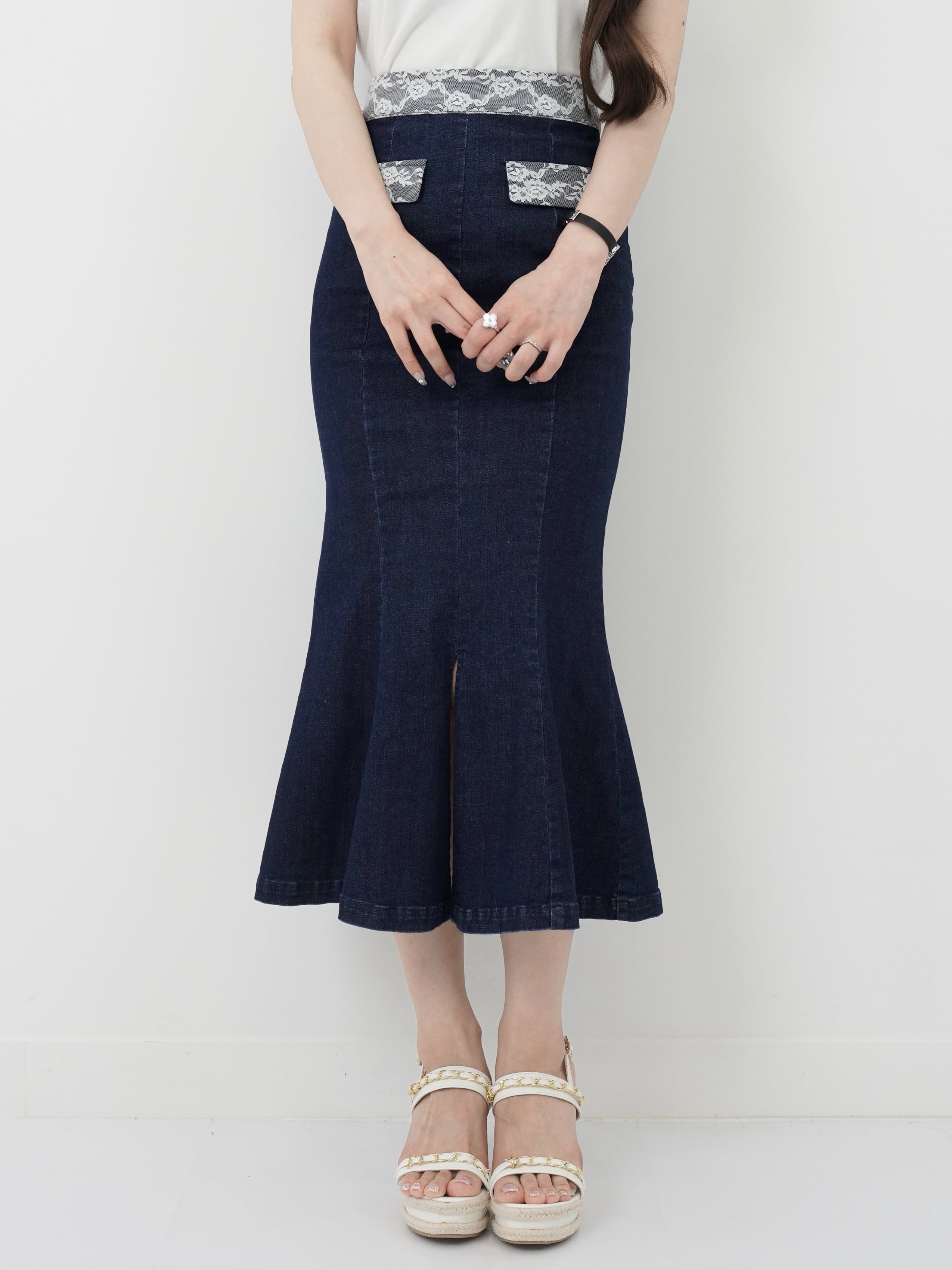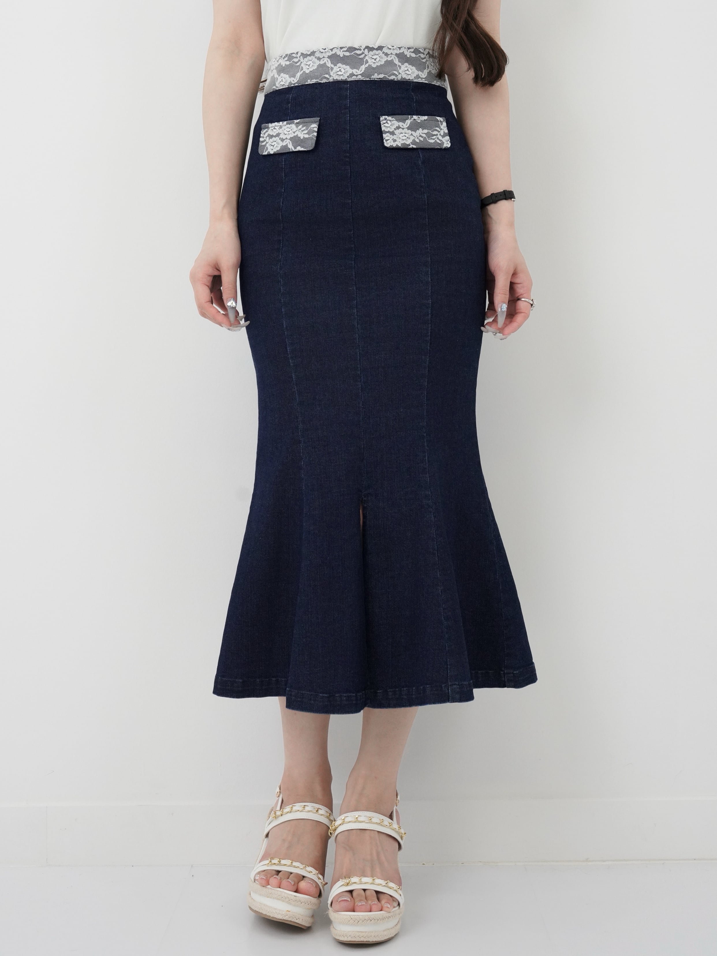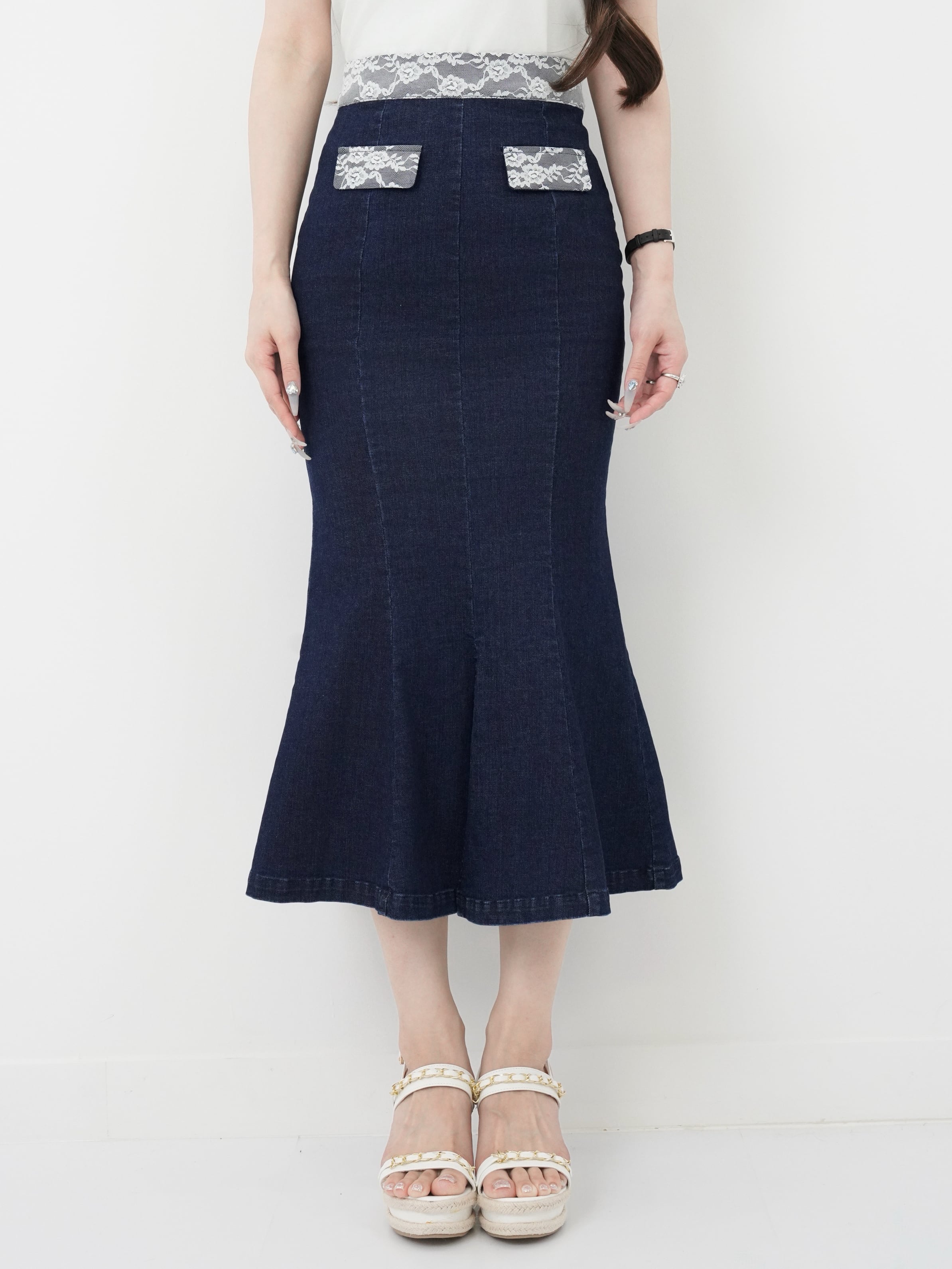 Lumignon original ♥ Denim lace mermaid skirt 【インディゴ】