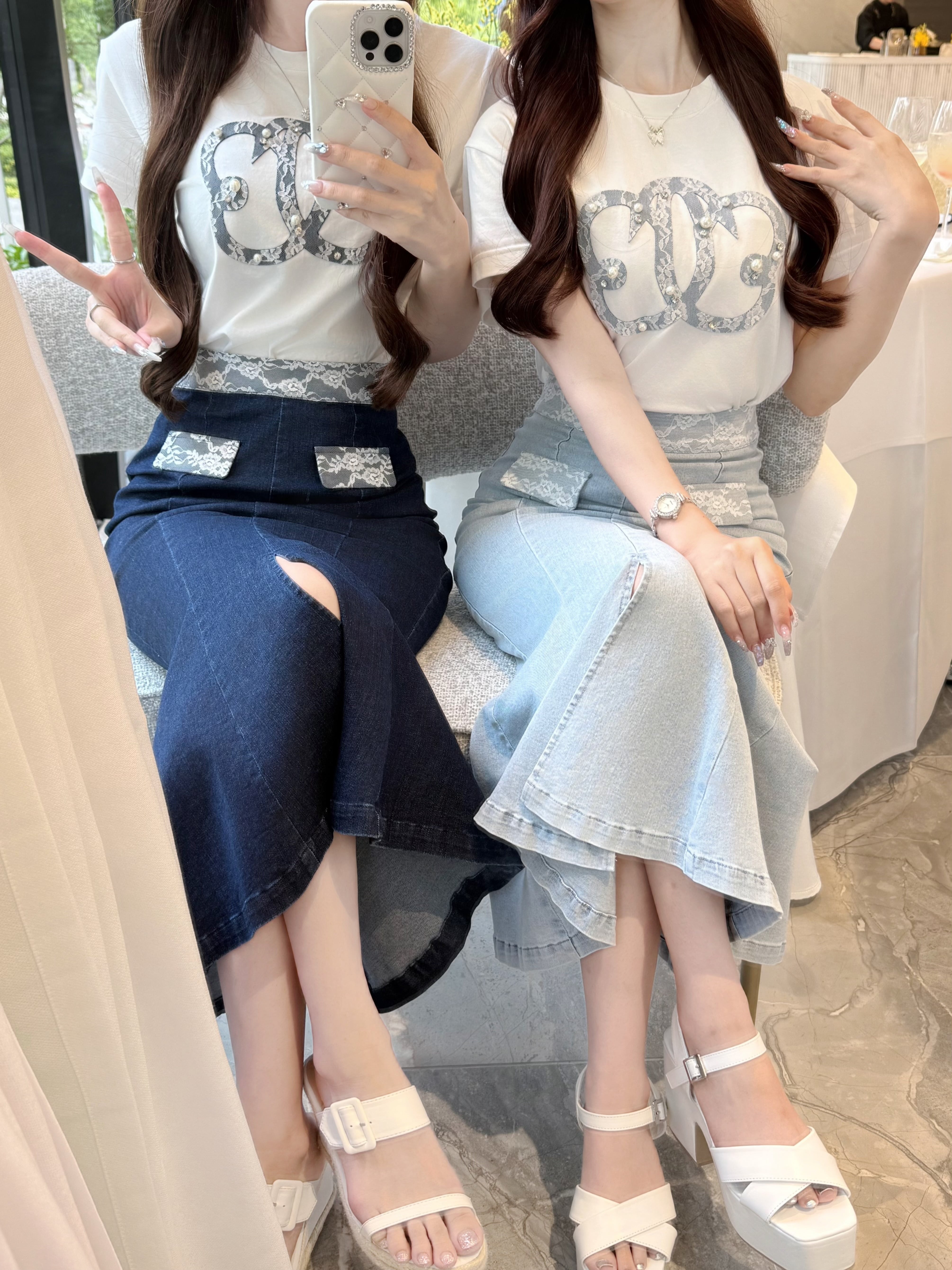 レース×デニムの異素材コンビが目を惹く…