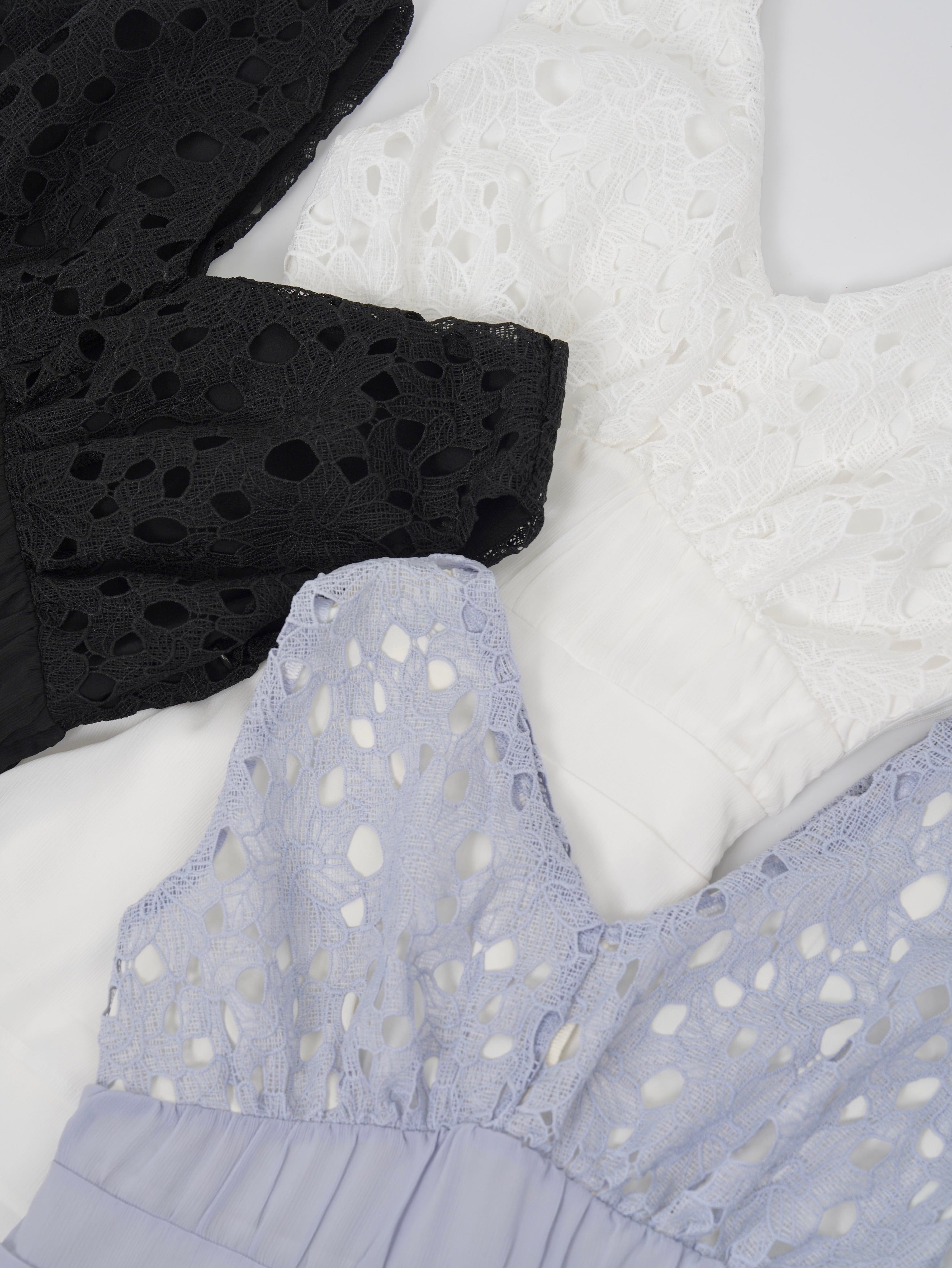 ・胸元に立体レースを贅沢に使用した繊細なデザイン