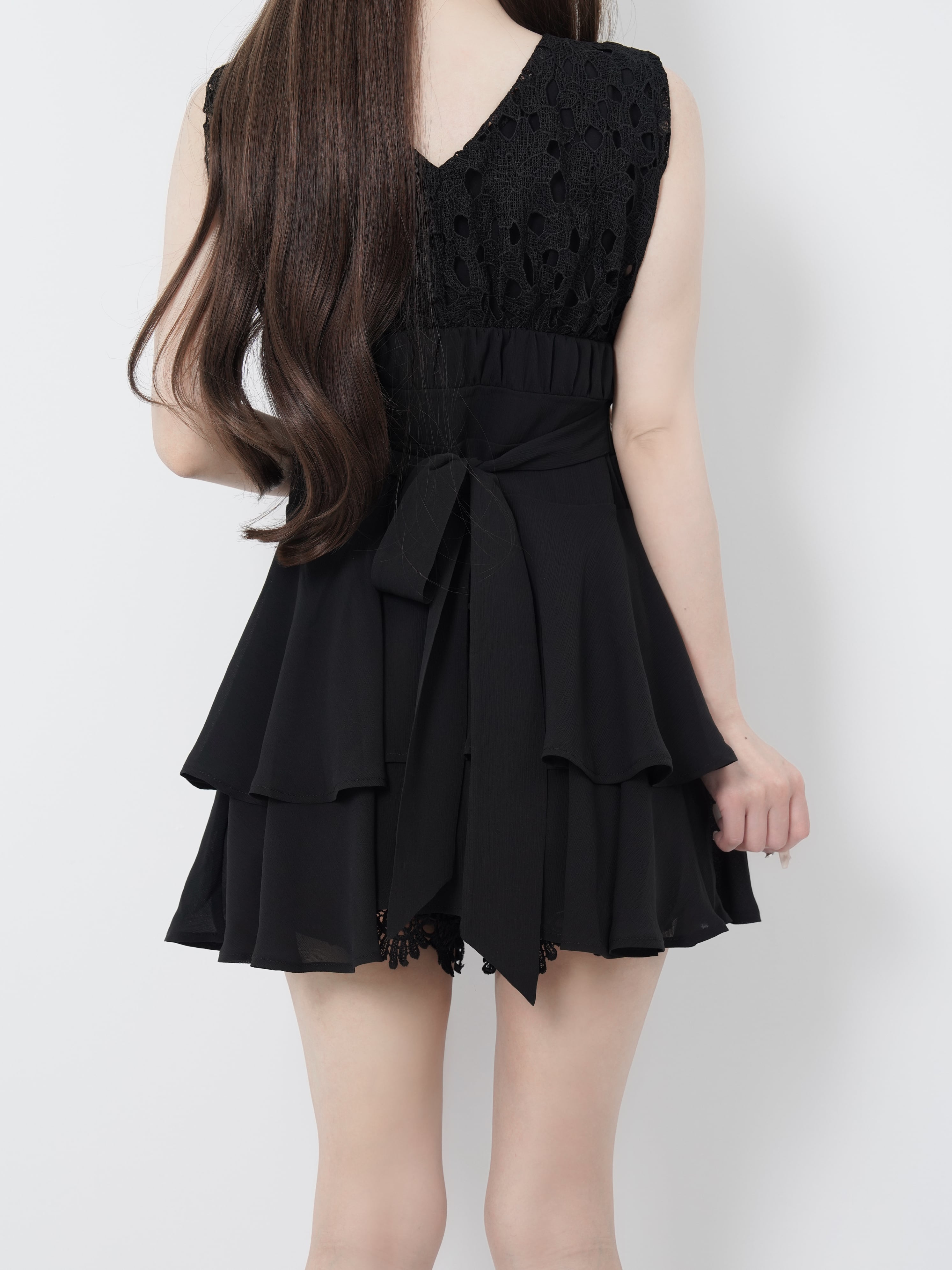 Lumignon original ♥ Lace frill back ribbon dress【ブラック】