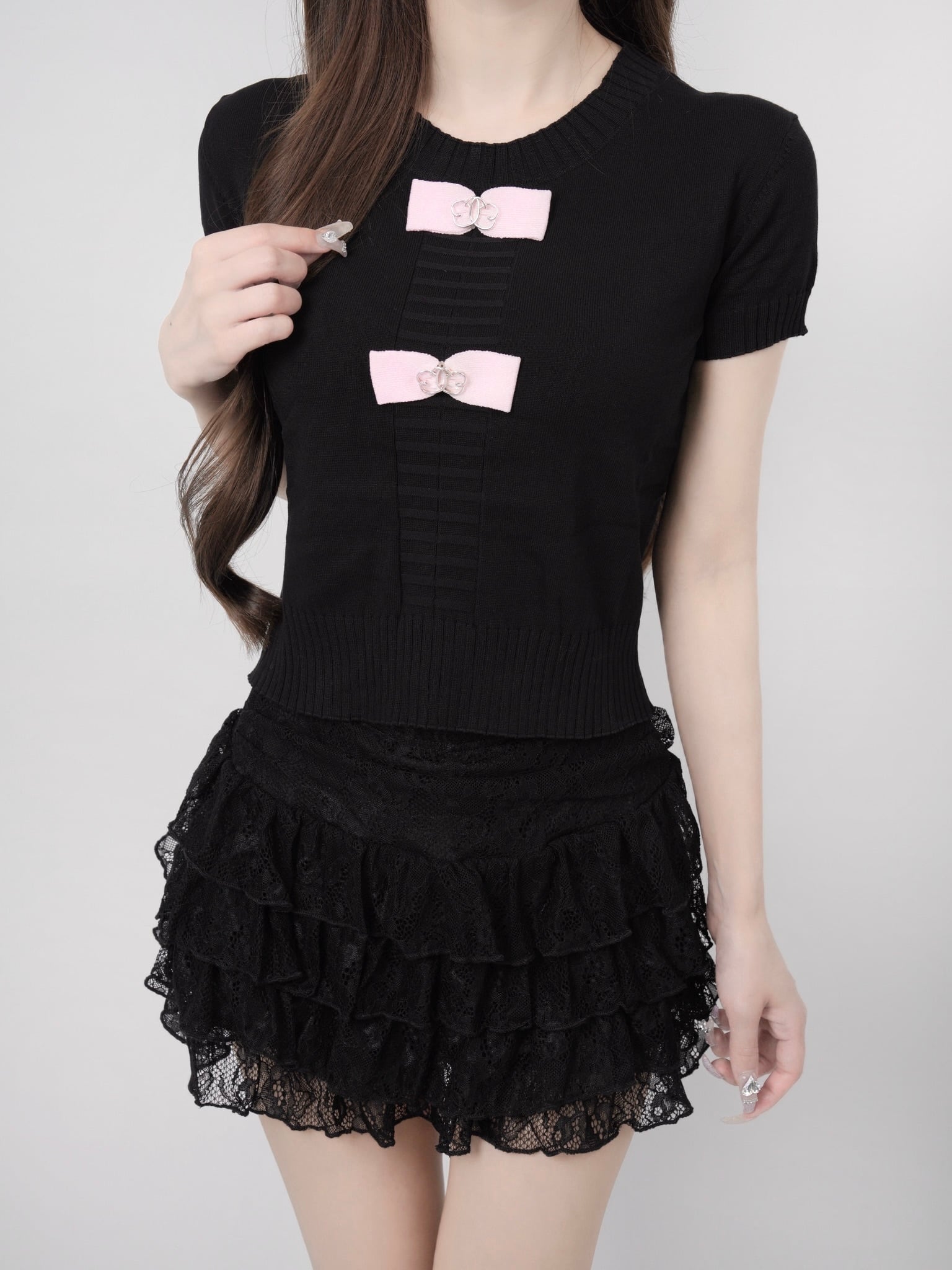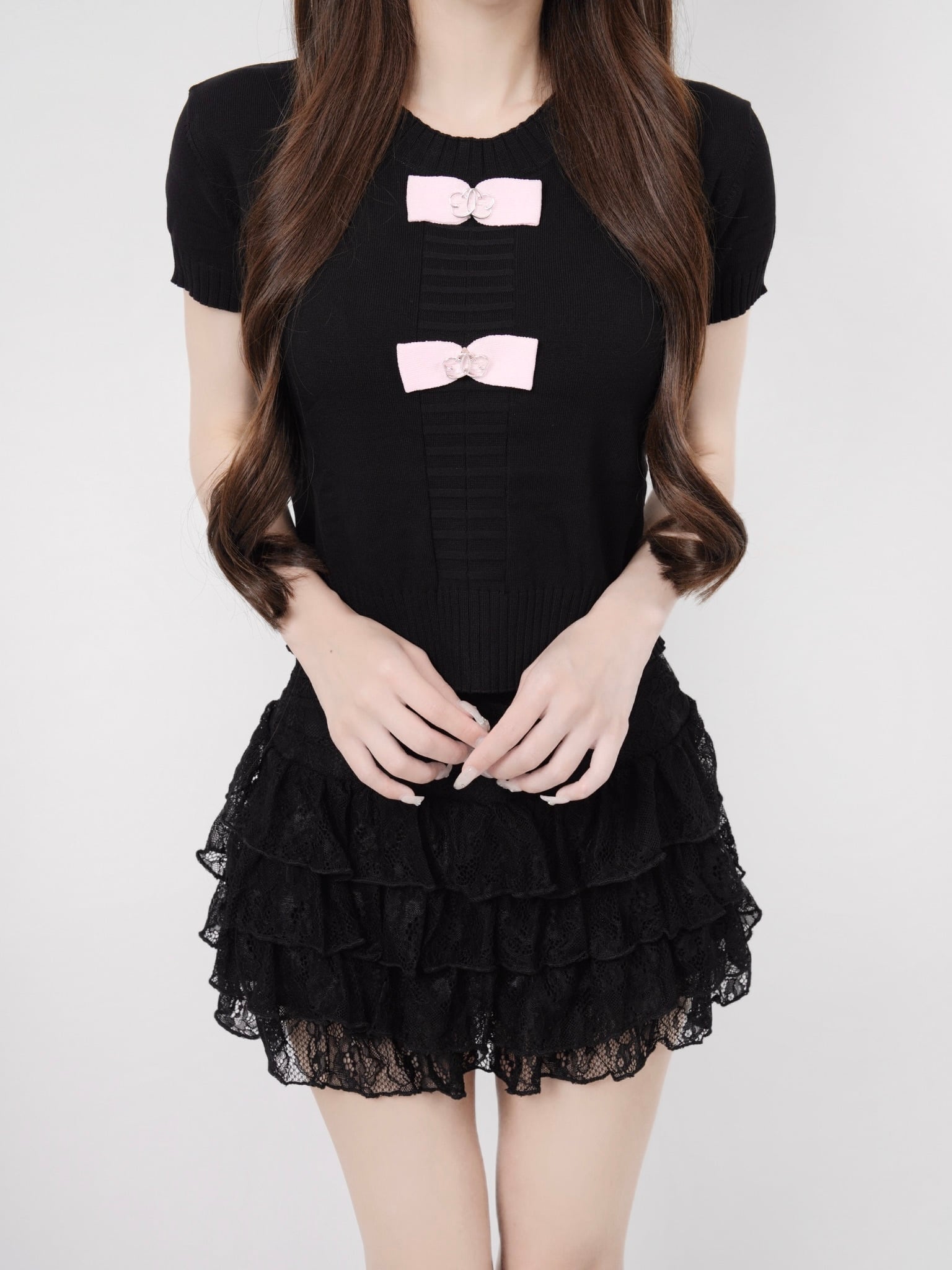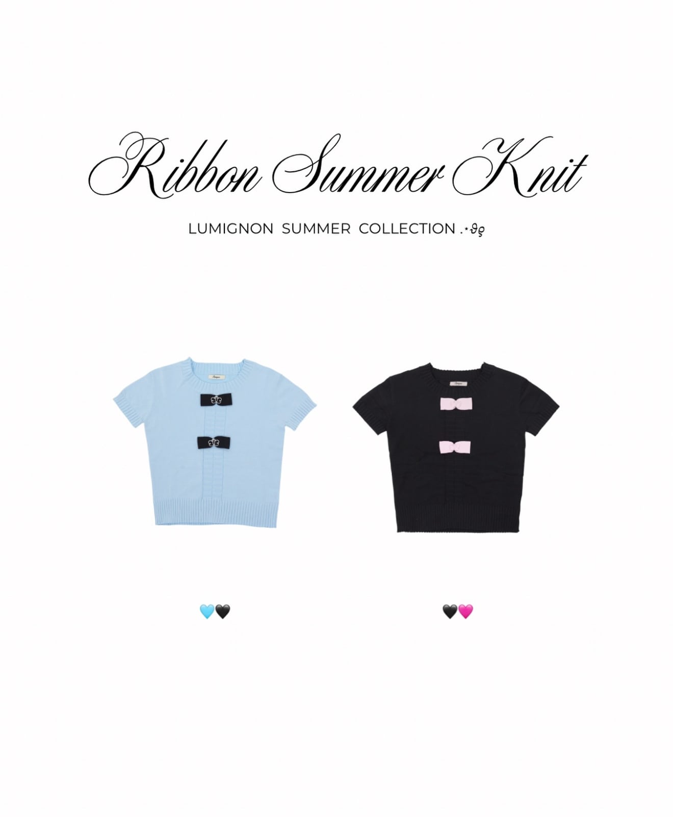 Lumignon original ♥ Ribbon lumi papillon summer knit【ブラック×ピンク】