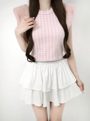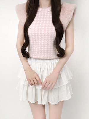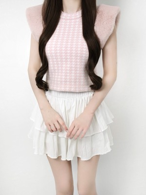 Lumignon original ♥ Houndstooth fur knit top【ピンク】
