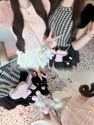 Lumignon original ♥ Houndstooth fur knit top【ブラック】