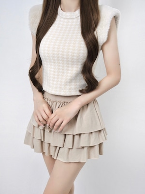 Lumignon original ♥ Houndstooth fur knit top【ベージュ】