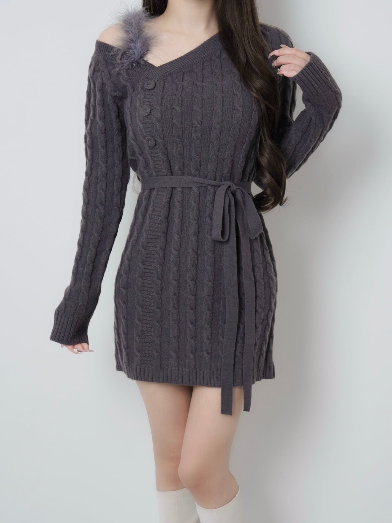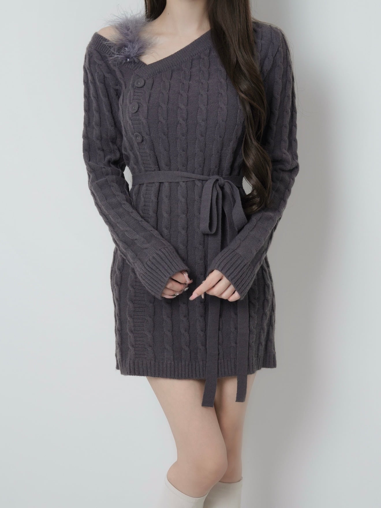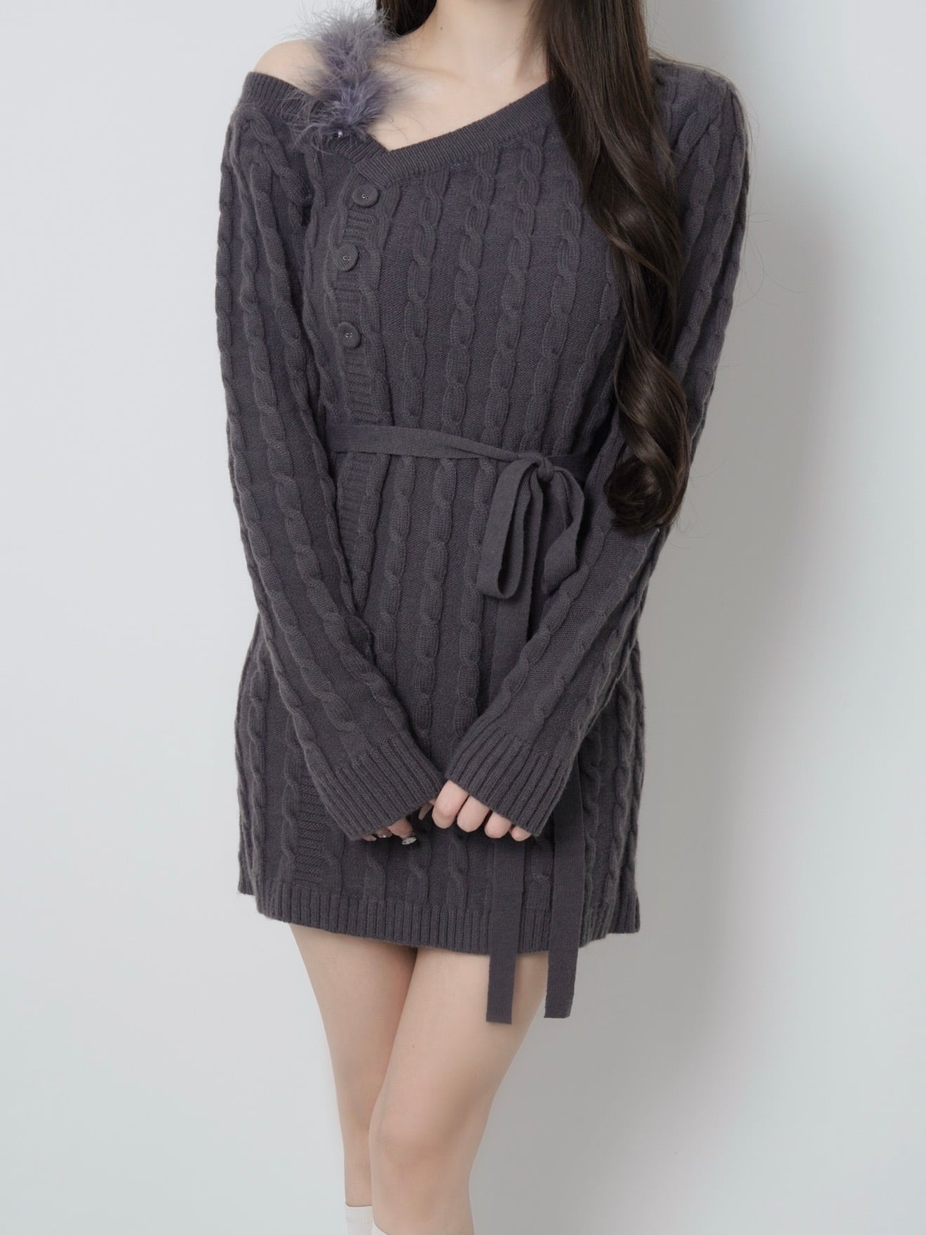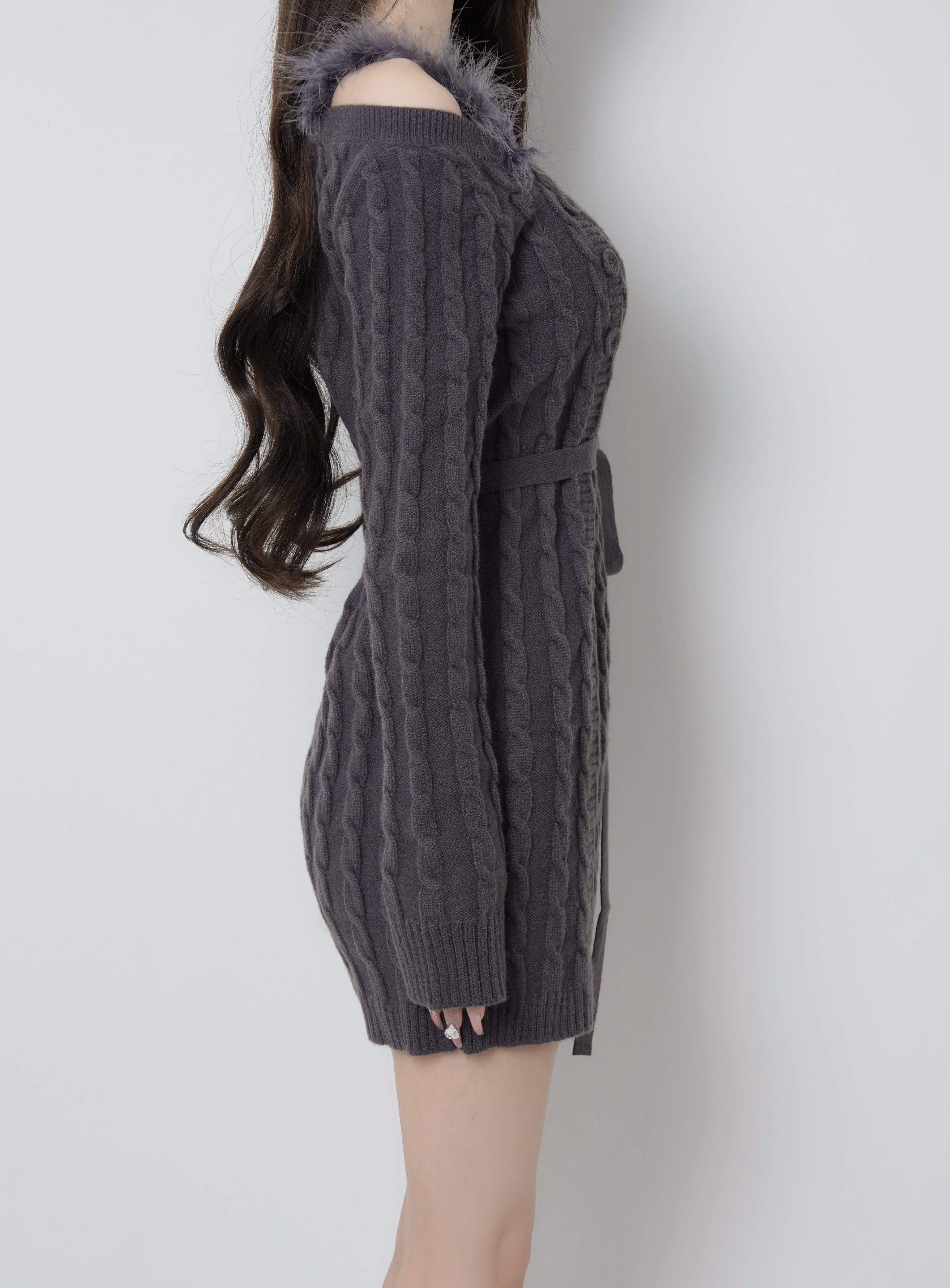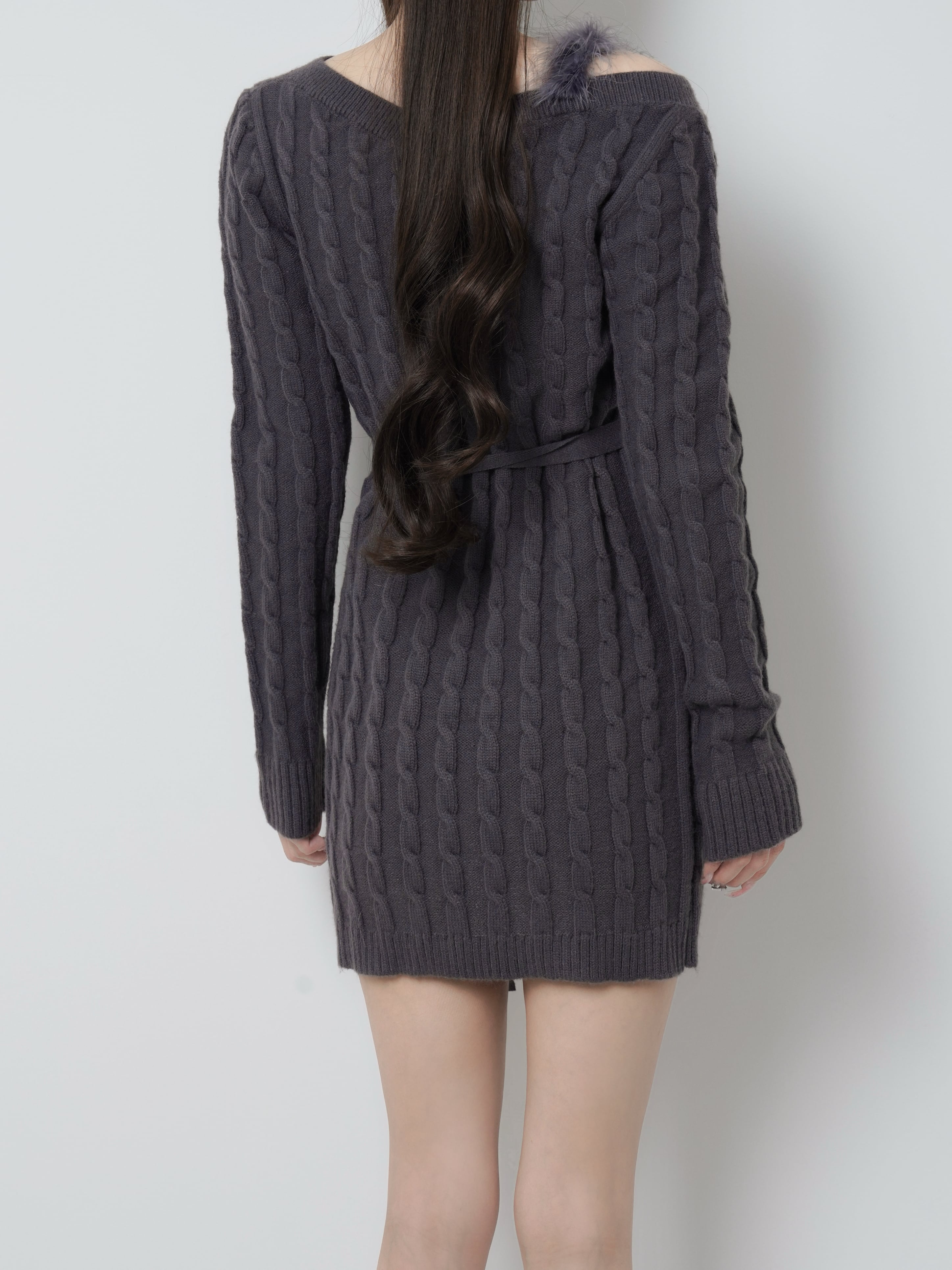 Lumignon original ♥ Fur cable knit dress mini【チャコールグレー】