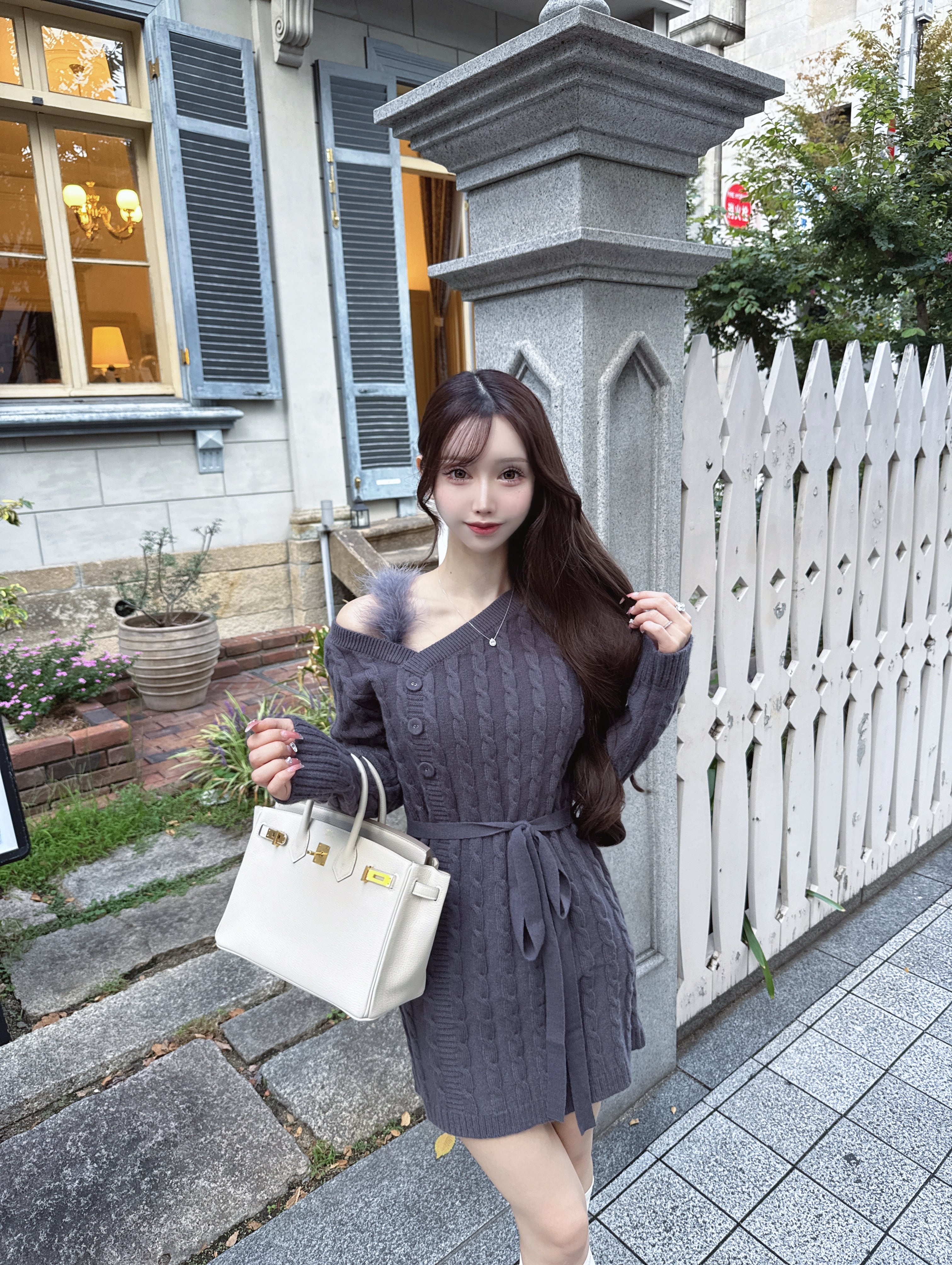 繊細なケーブル編みとふわふわの