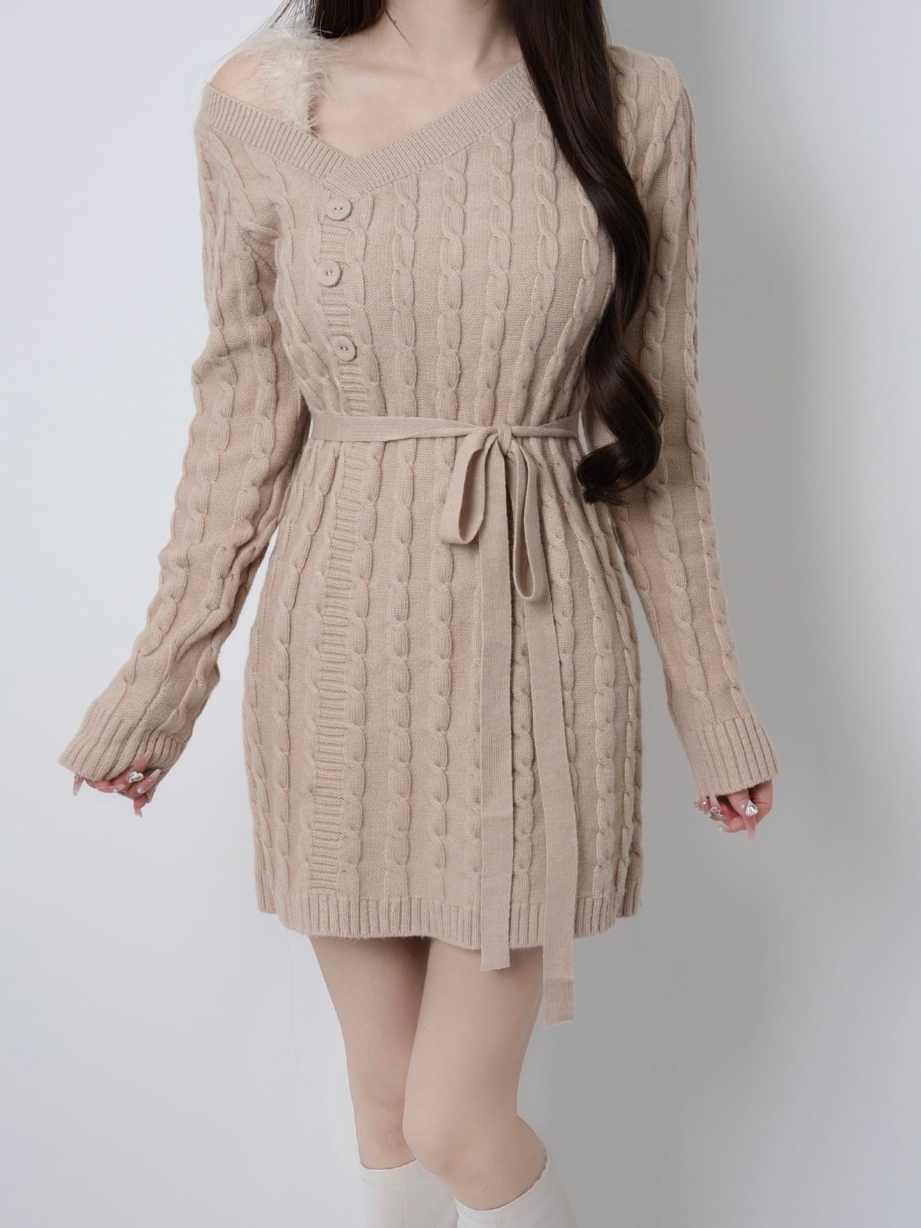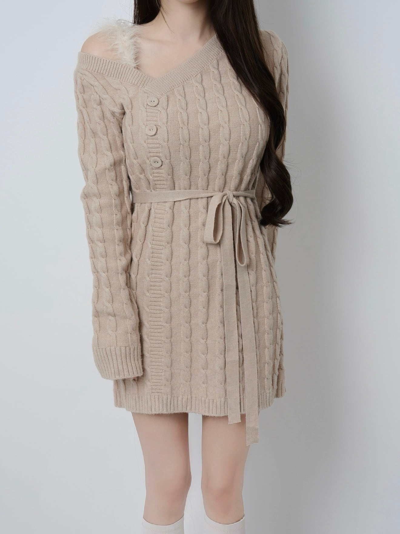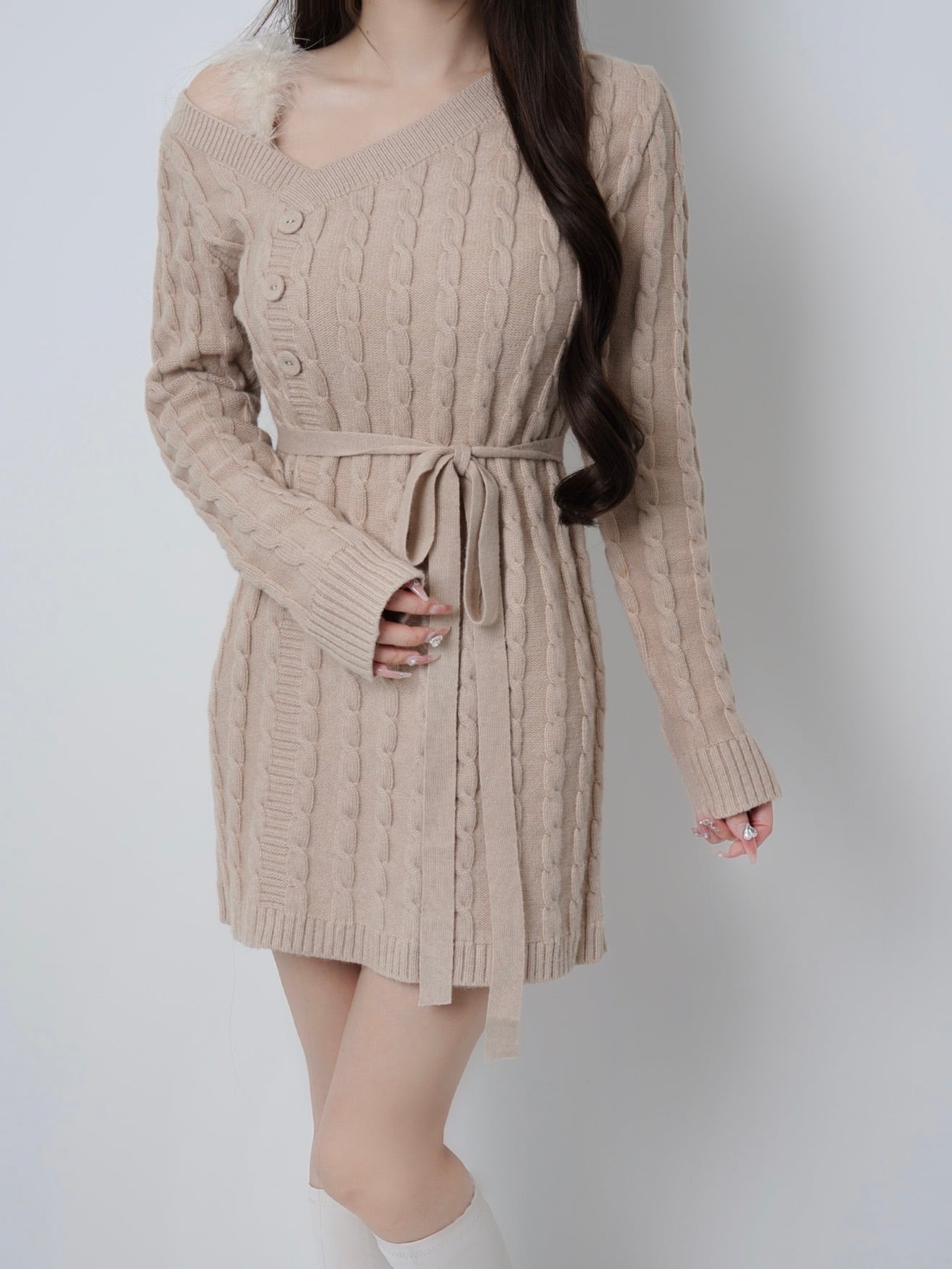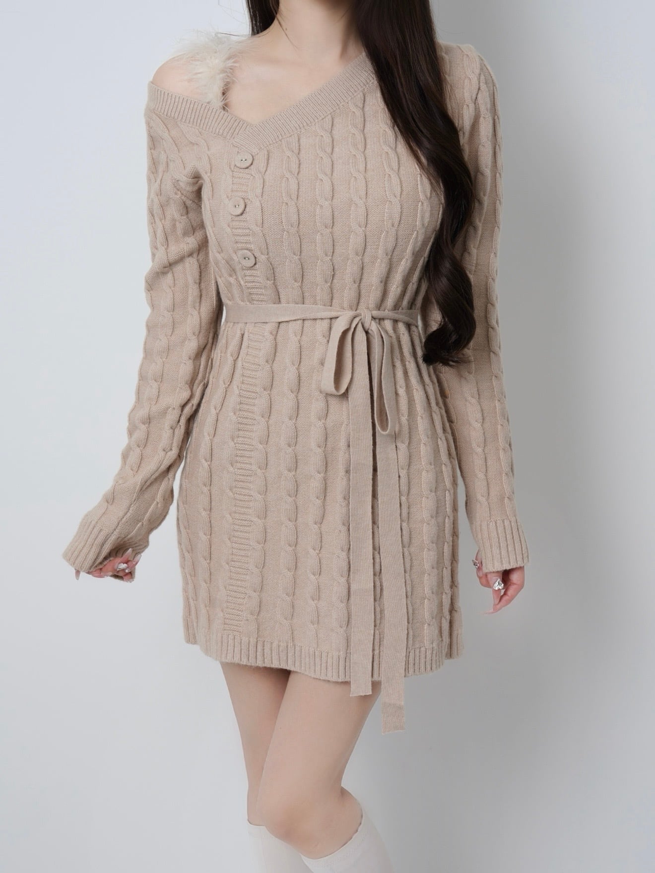 Lumignon original ♥ Fur cable knit dress mini【ベージュ】