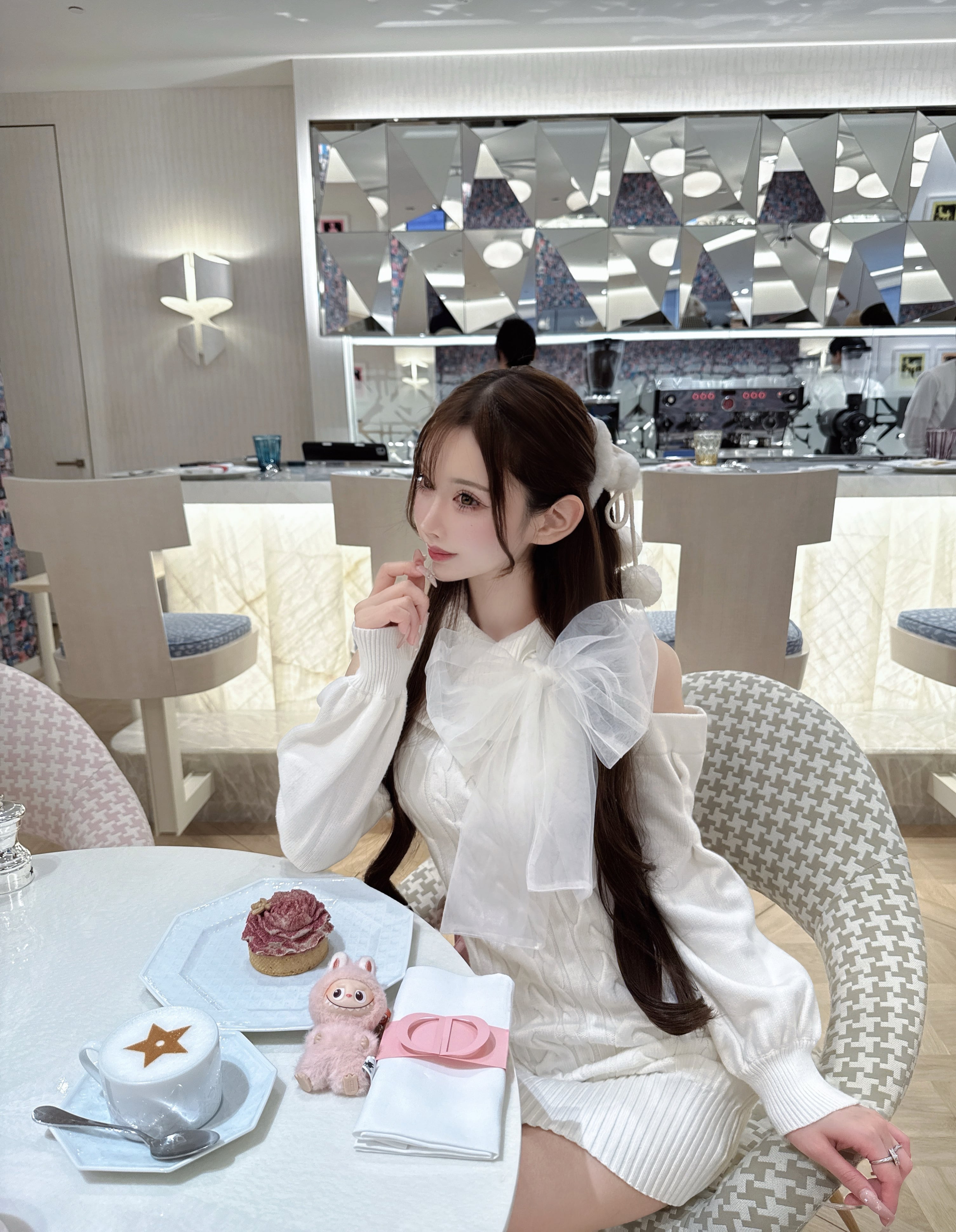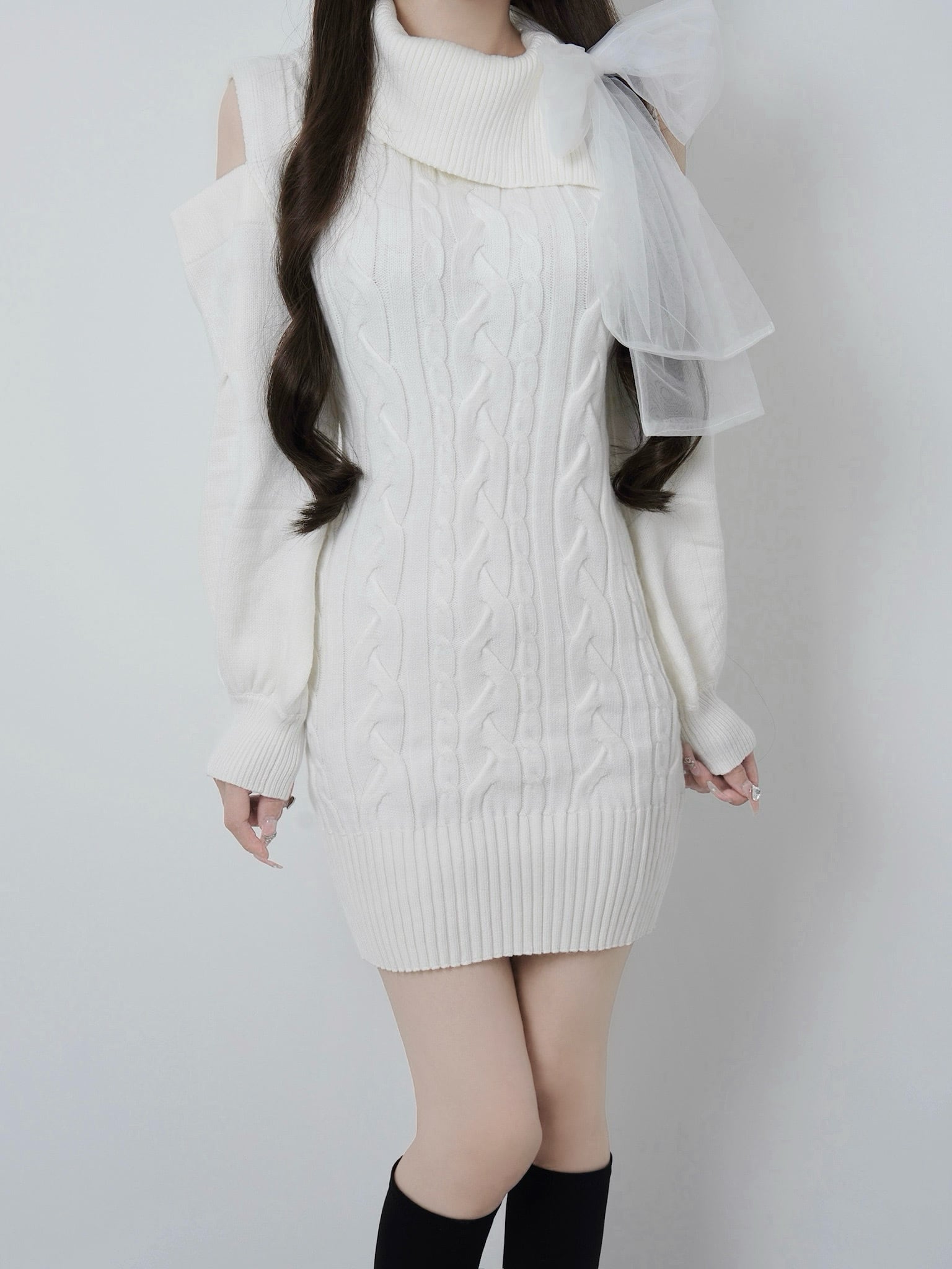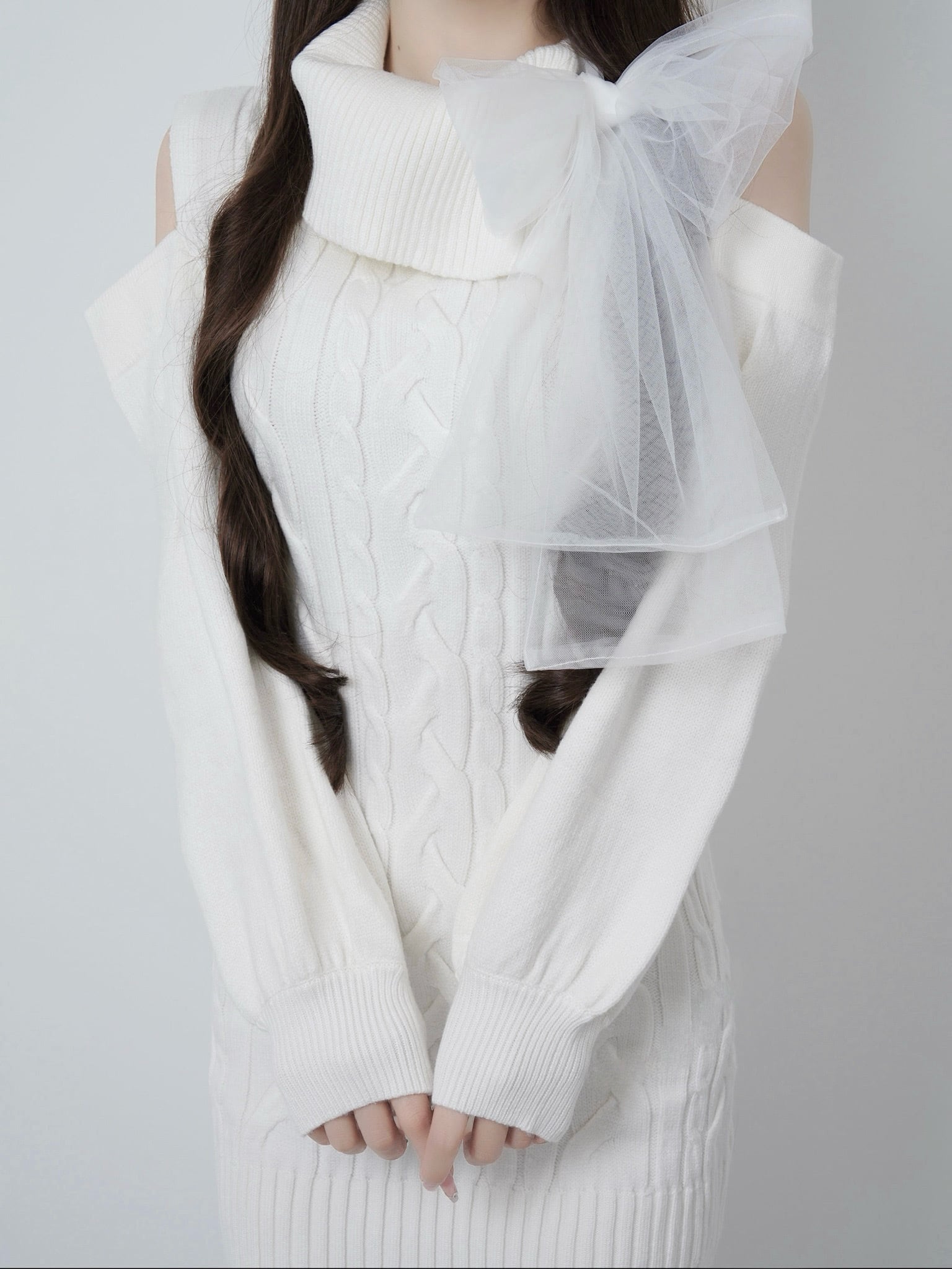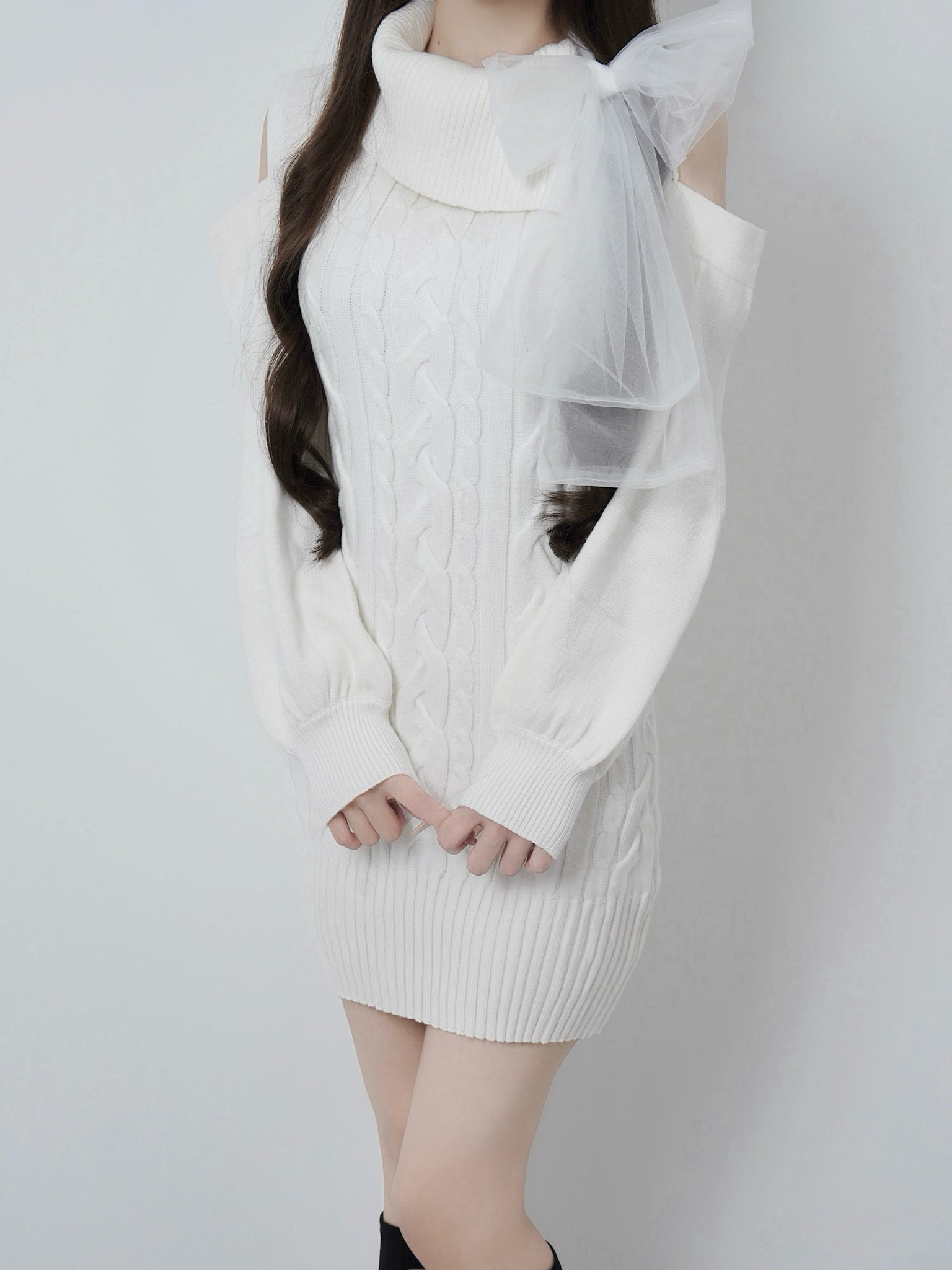 Lumignon original ♥ Tulle ribbon cable knit dress【ホワイト】