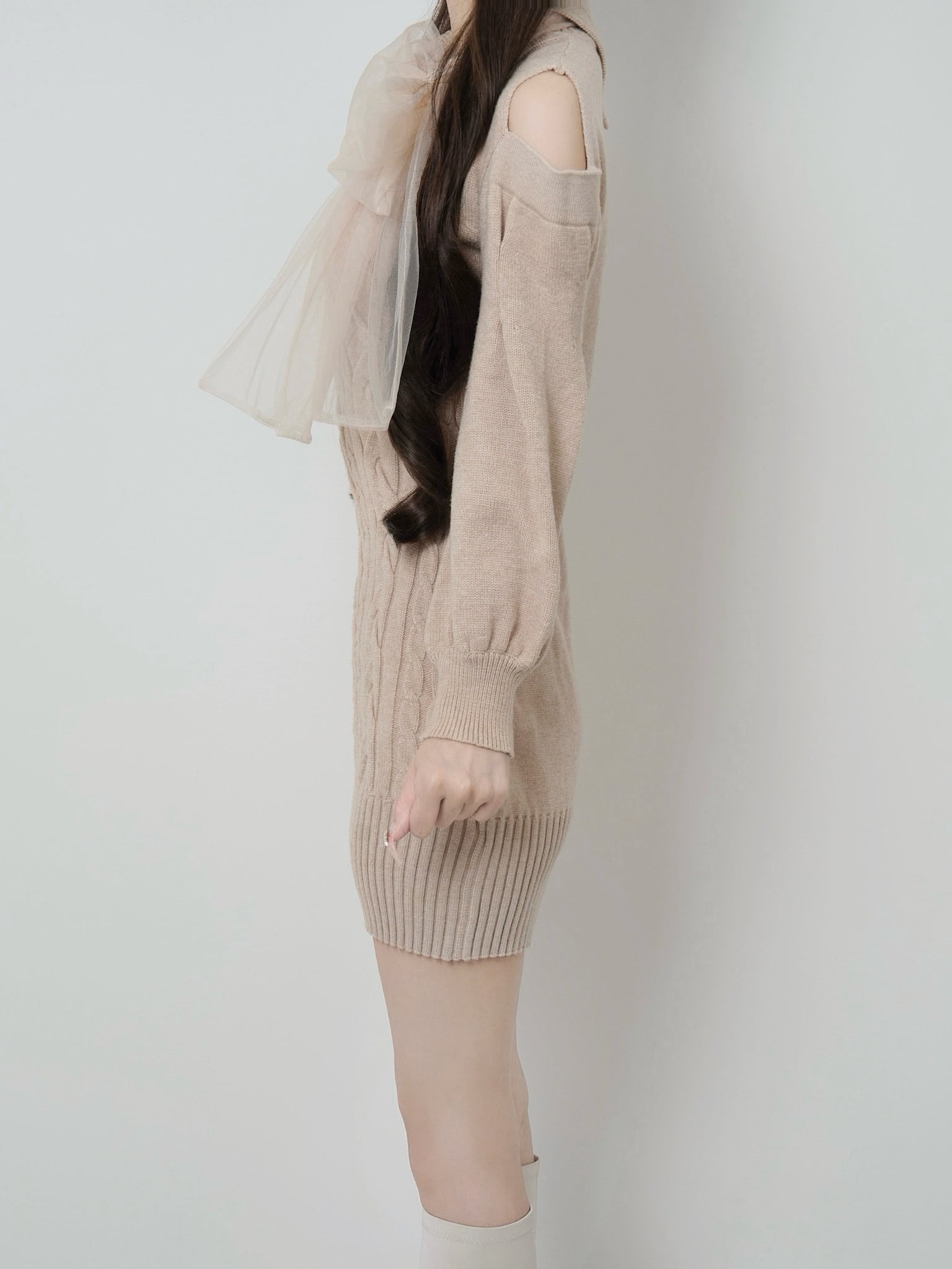 Lumignon original ♥ Tulle ribbon cable knit dress【ベージュ】