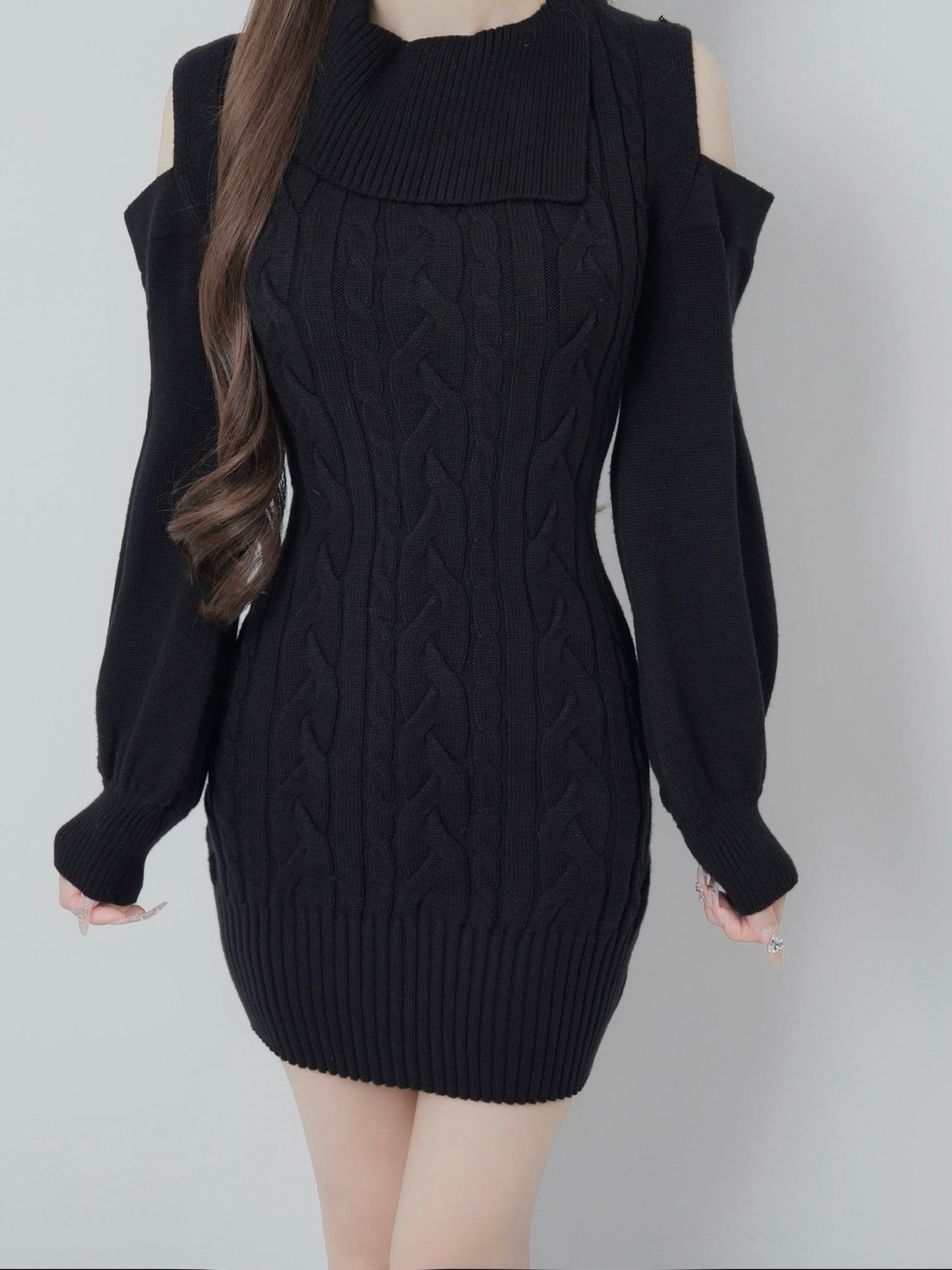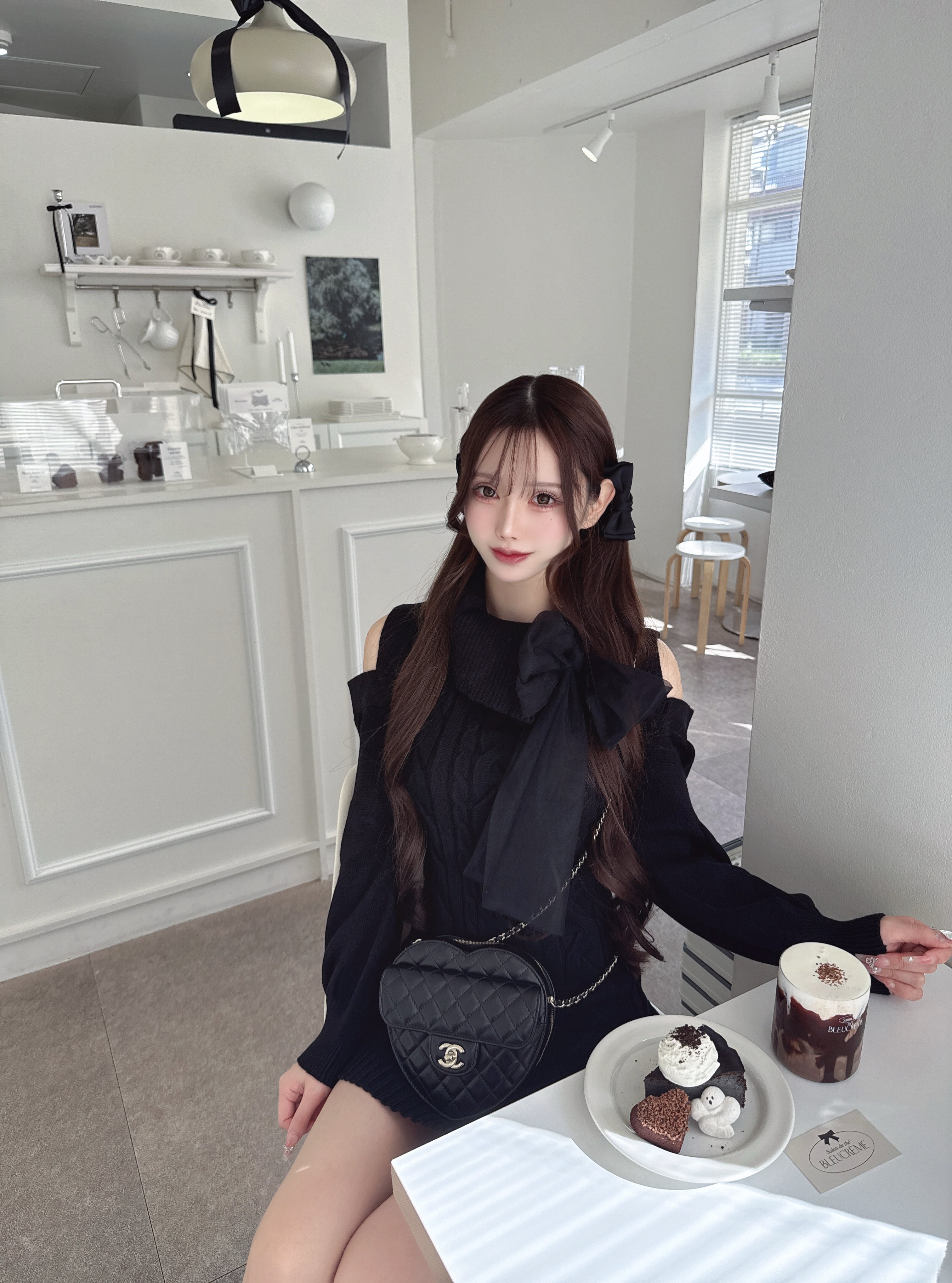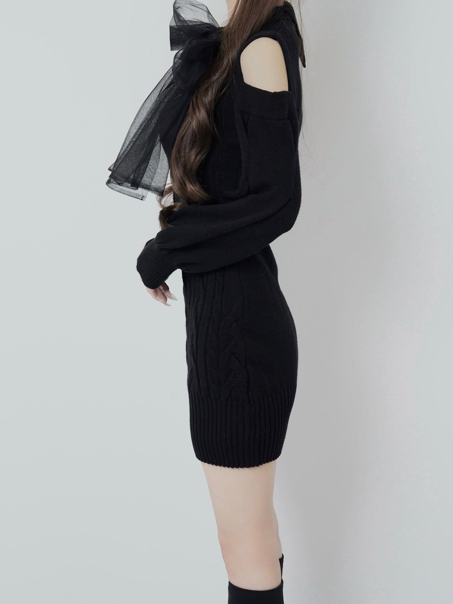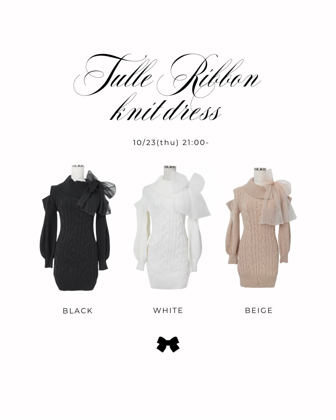 Lumignon original ♥ Tulle ribbon cable knit dress【ブラック】