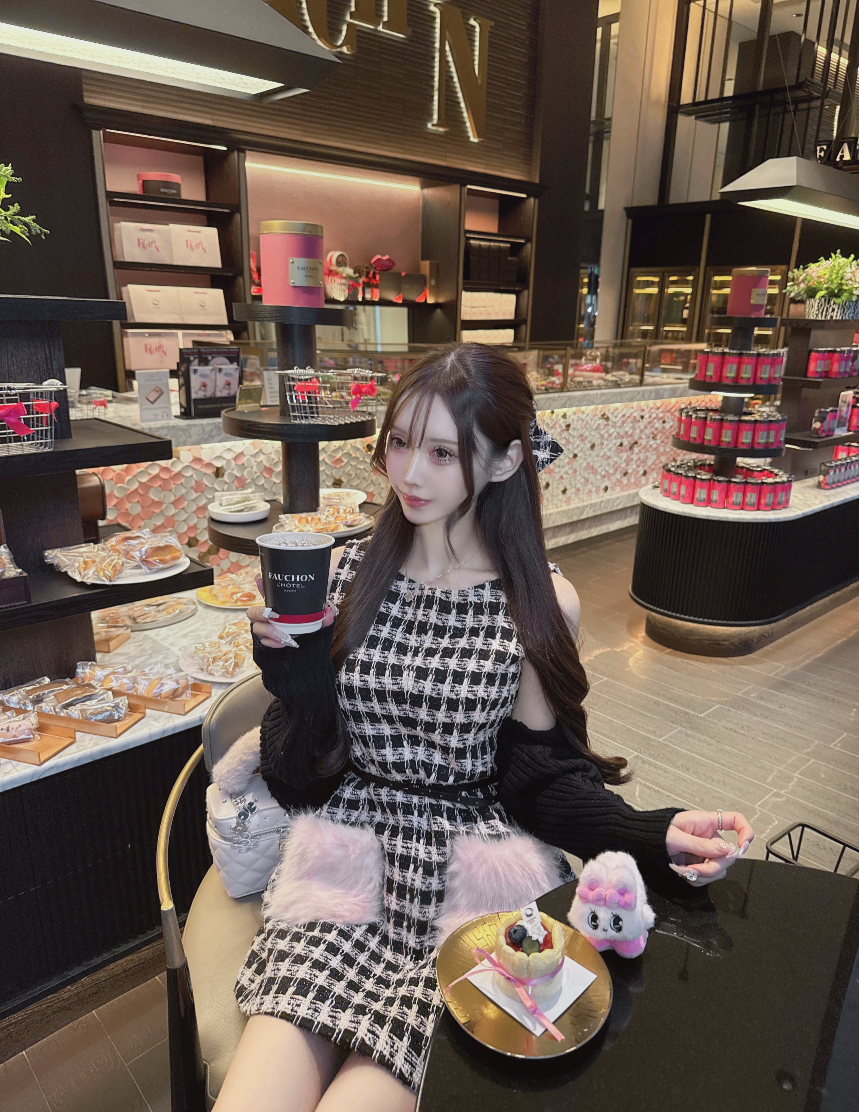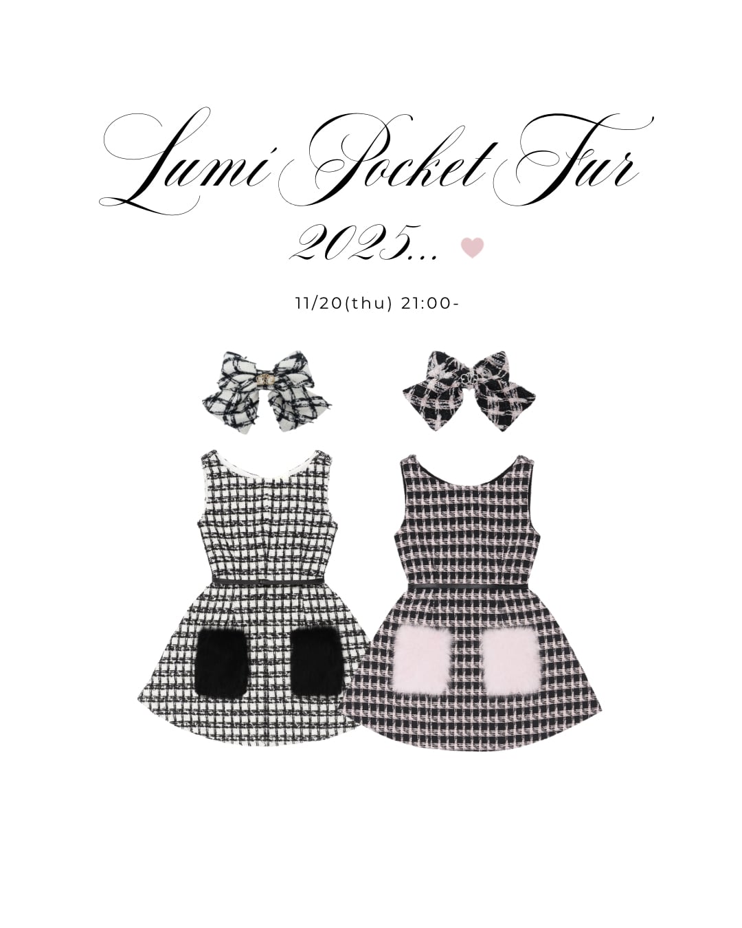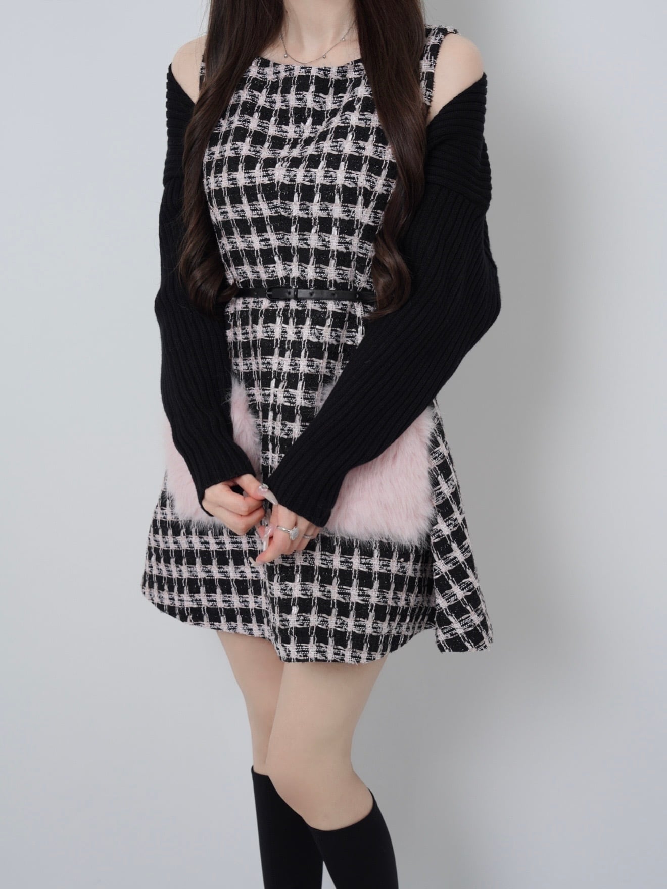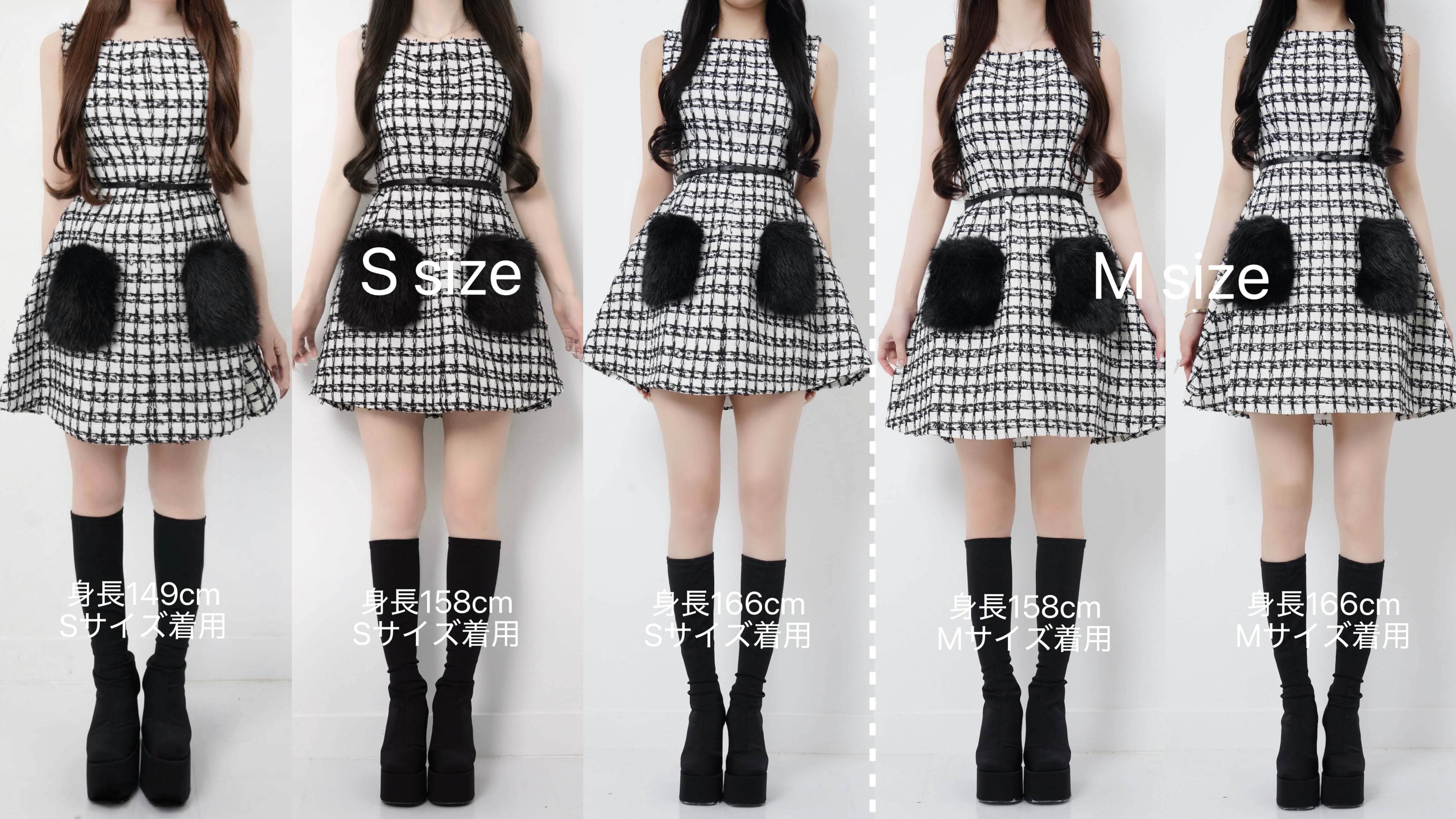 Lumignon original ♥ Tweed pocket fur dress 【ブラック×ピンク】