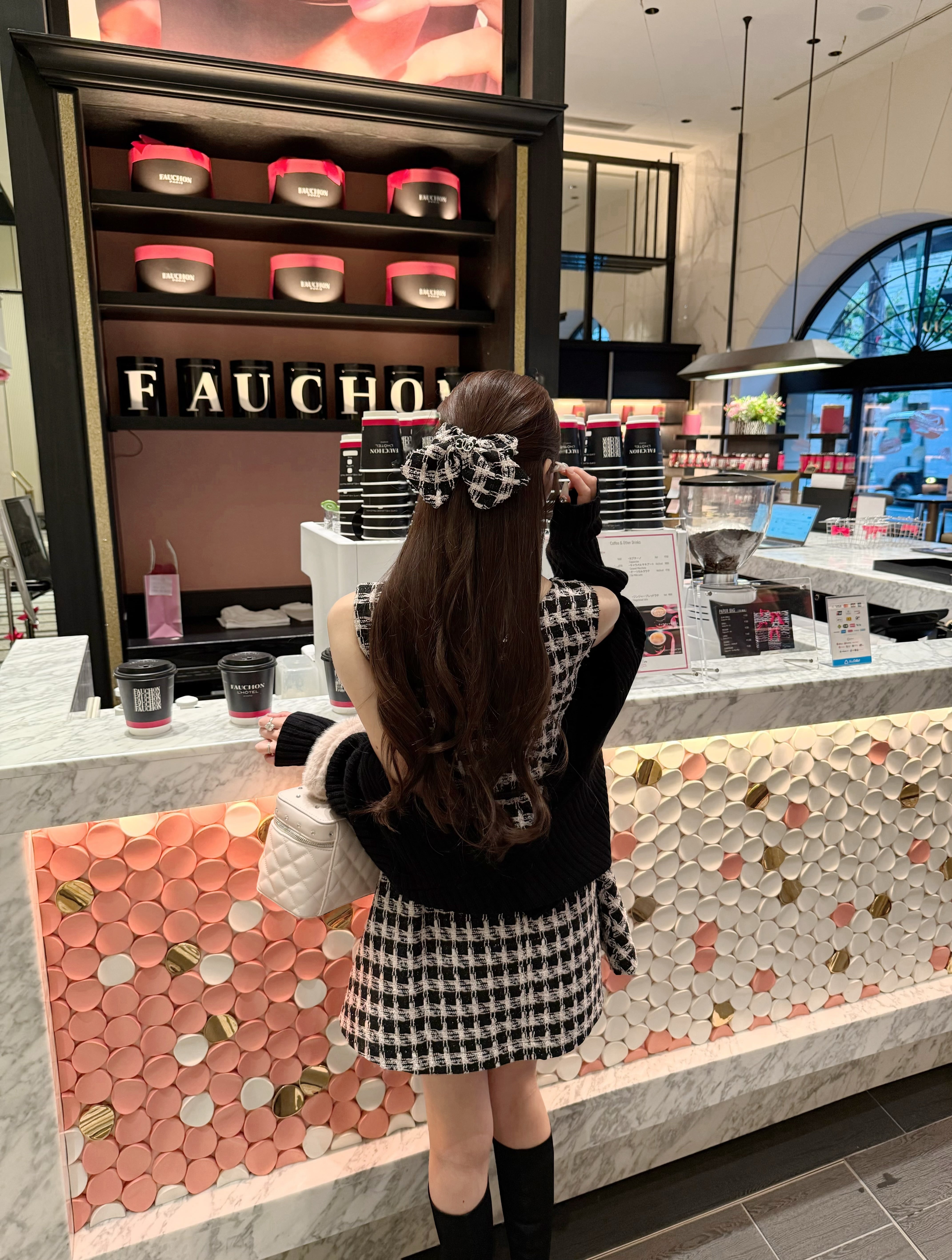 ・上品なラメ入りツイード生地で冬の高見えスタイルに