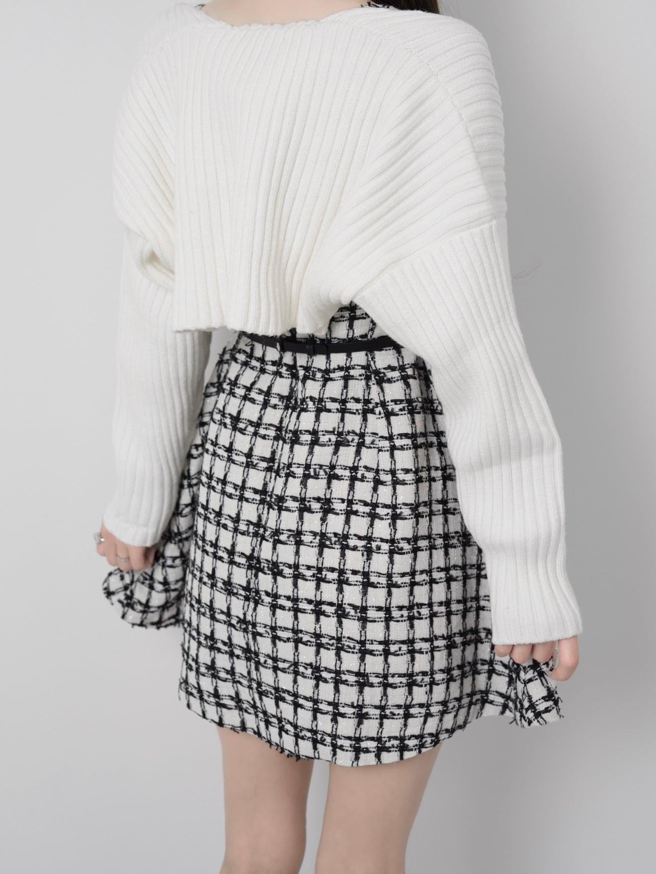 ・上品なラメ入りツイード生地で冬の高見えスタイルに