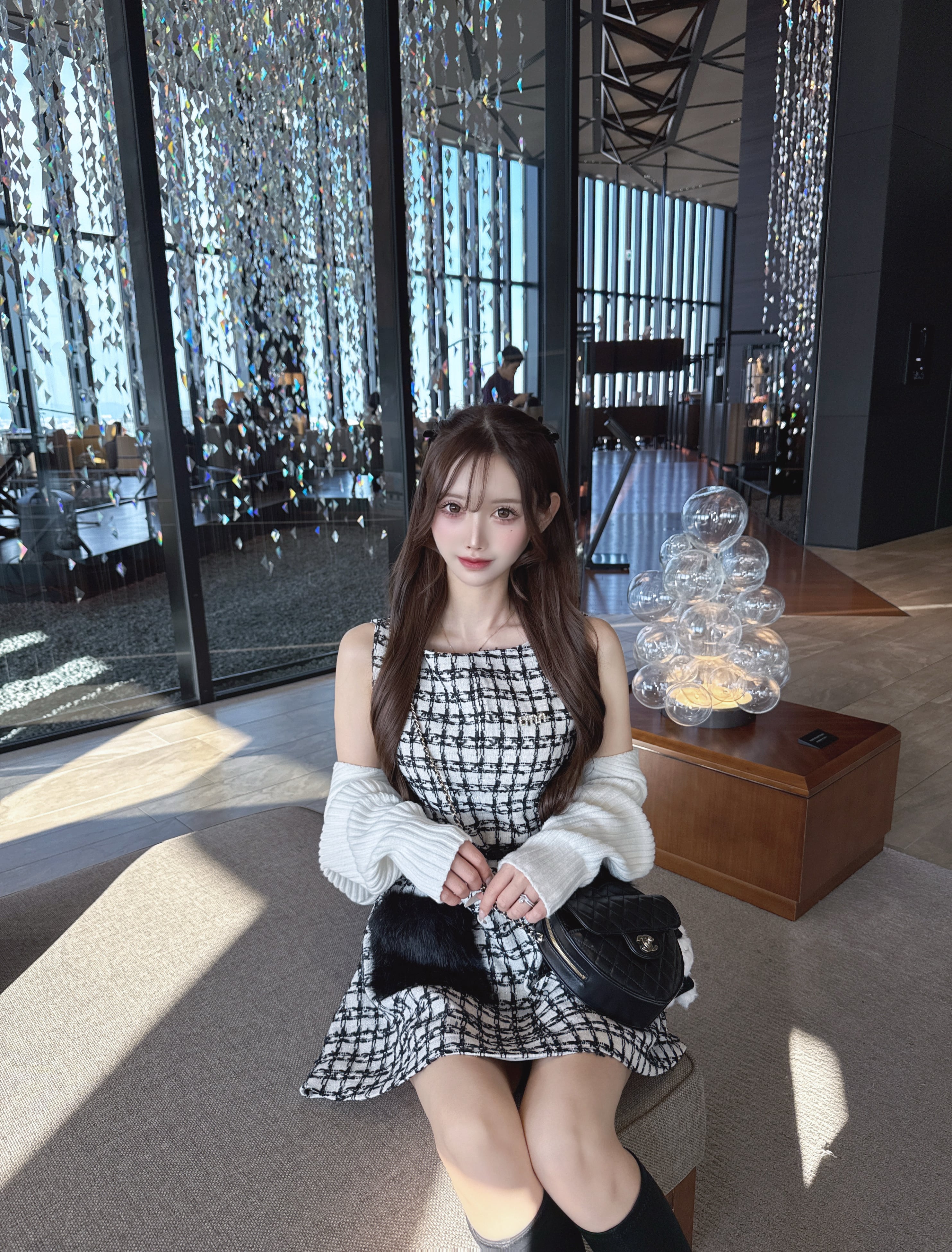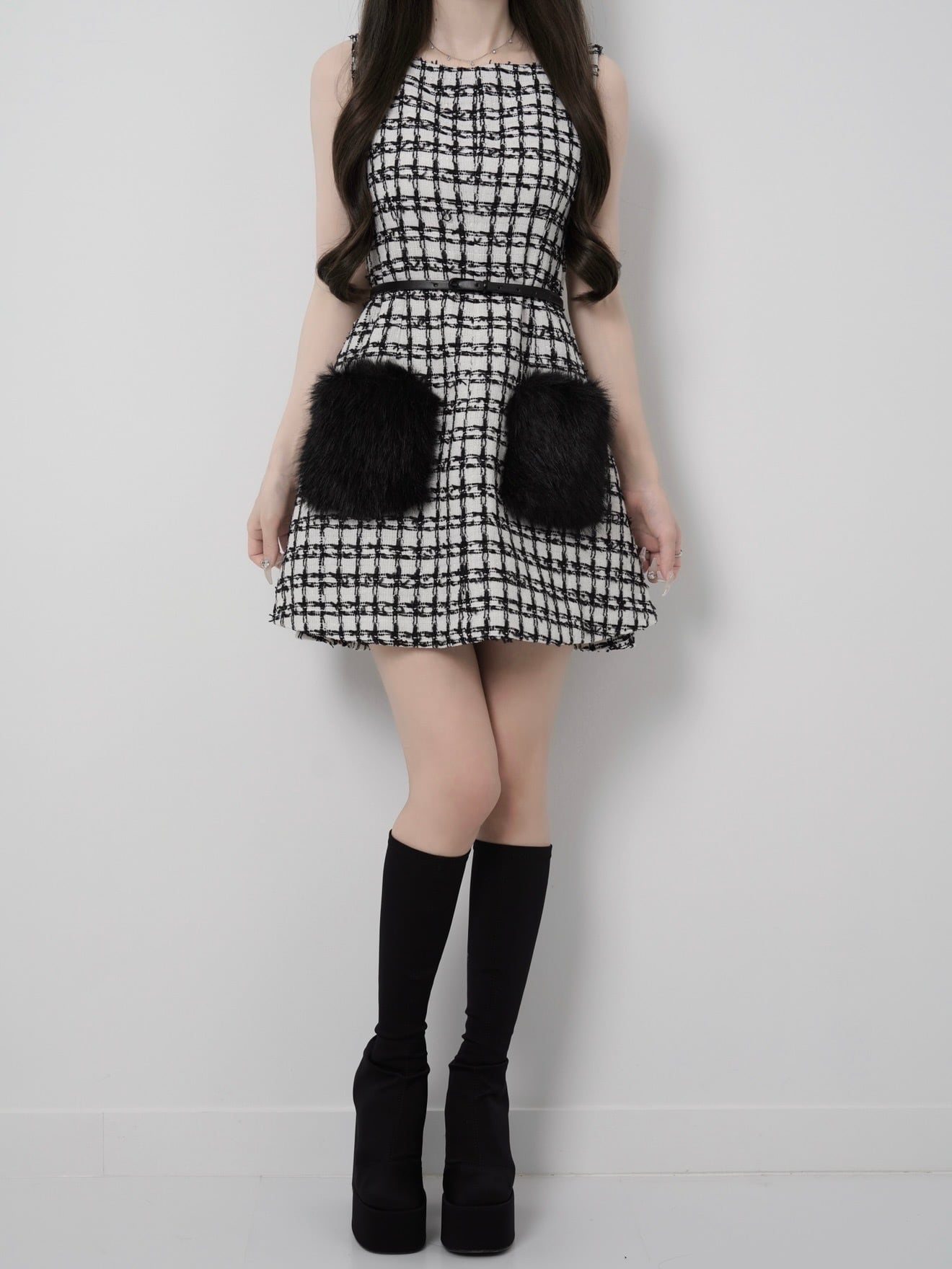 Lumignon original ♥ Tweed pocket fur dress 【ホワイト×ブラック】