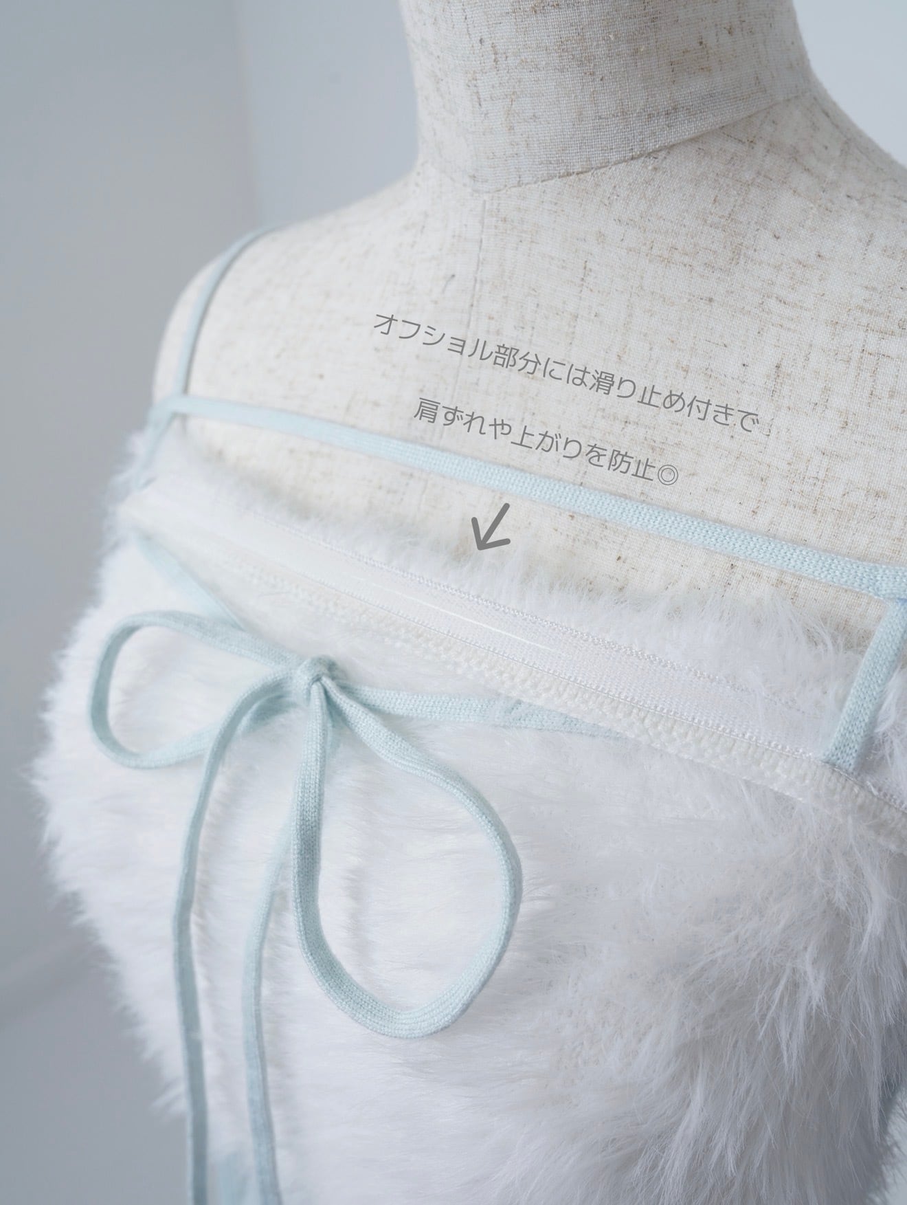 ・オフショル部分には滑り止め付きで、肩ずれや上がりを防止◎