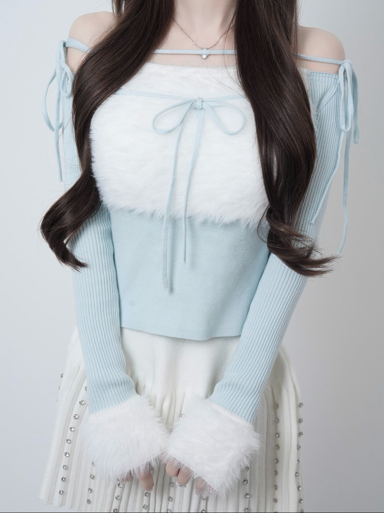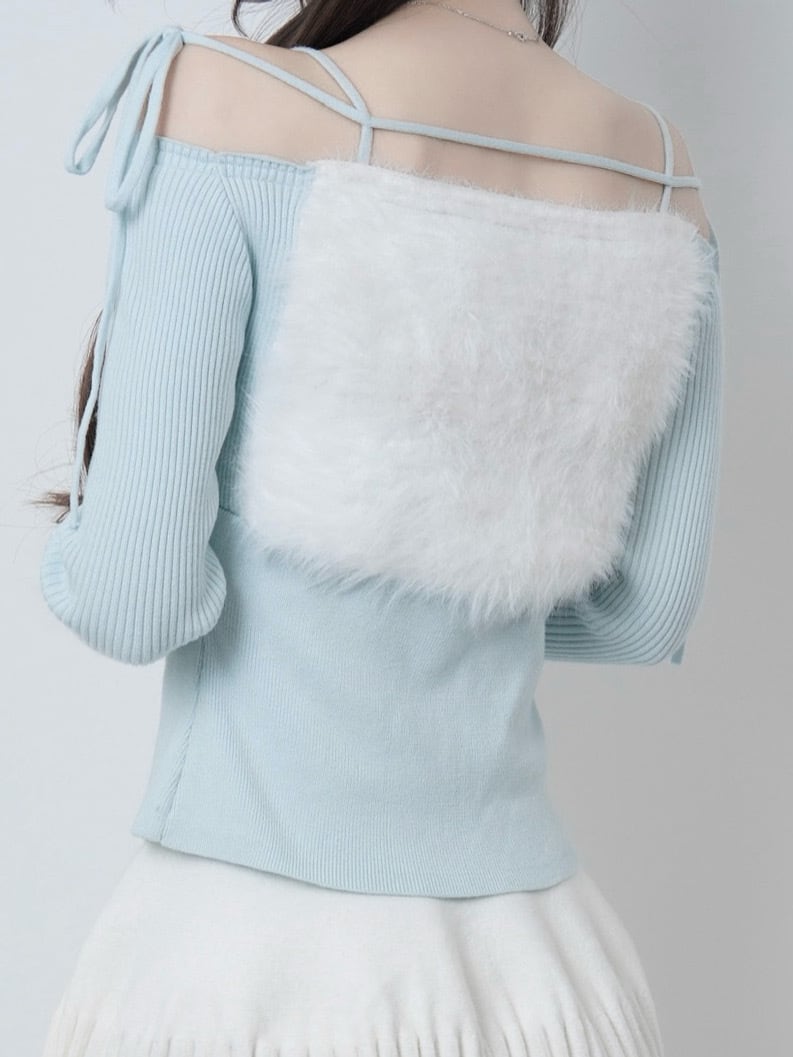 Lumignon original ♥ Ribbon bust fluffy tops【ライトブルー(トップス)】