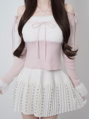 【受注】Lumignon original ♥ Ribbon bust fluffy tops【ピンク(トップス)】