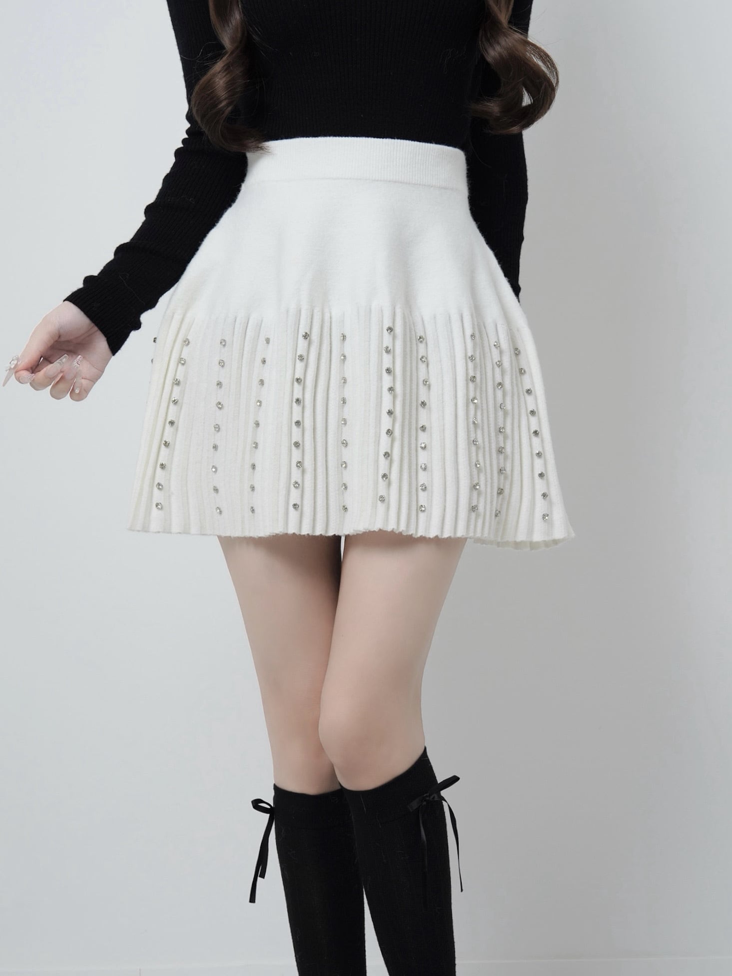 Lumignon original ♥ Bijou pleated knit skirt【ホワイト】