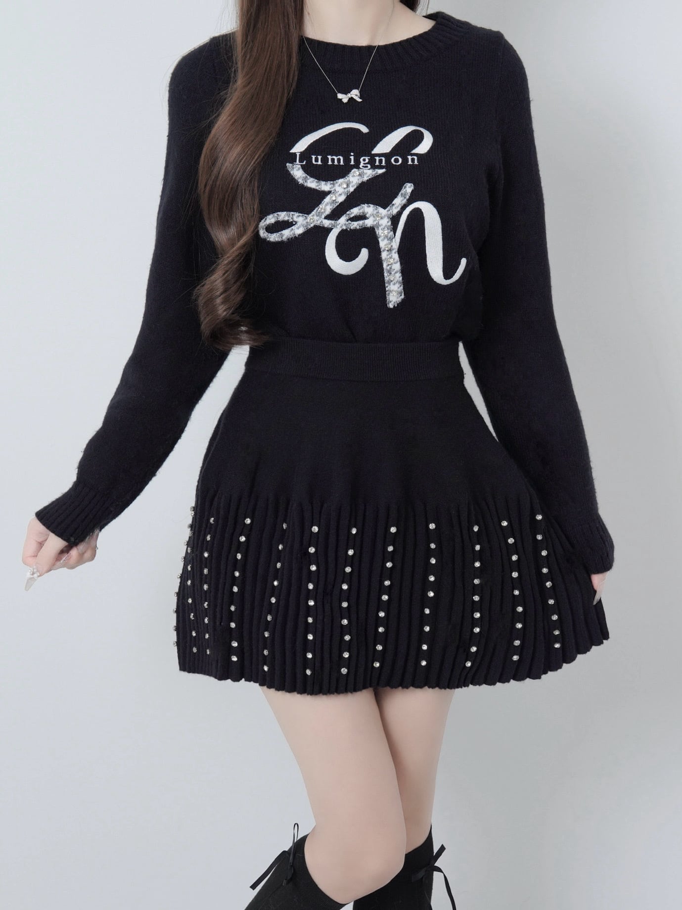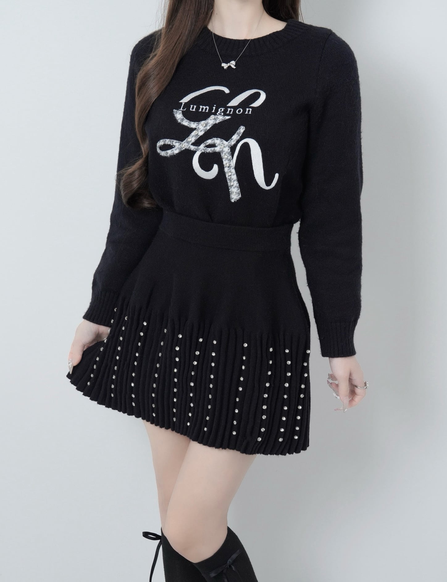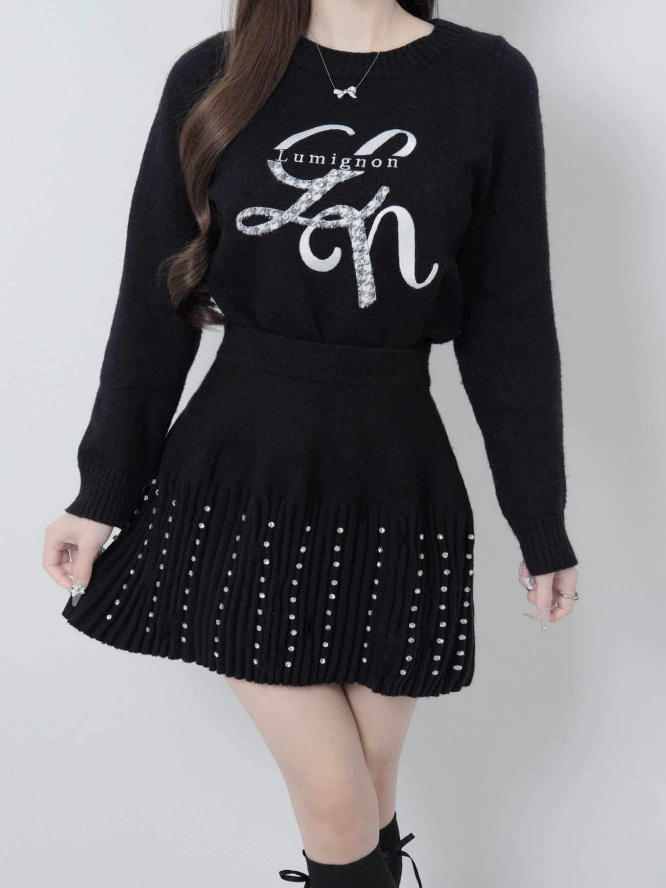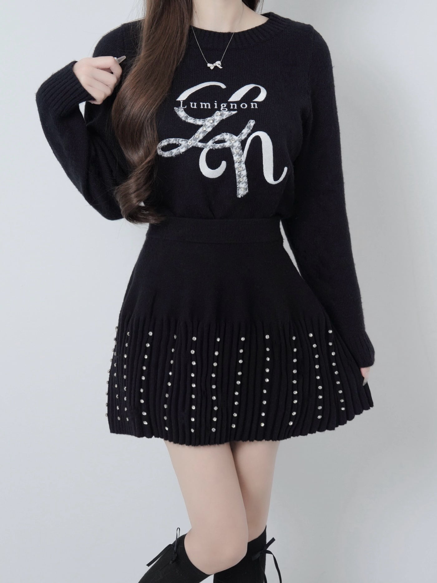 Lumignon original ♥ Lumi logo houndstooth knit【ブラック】