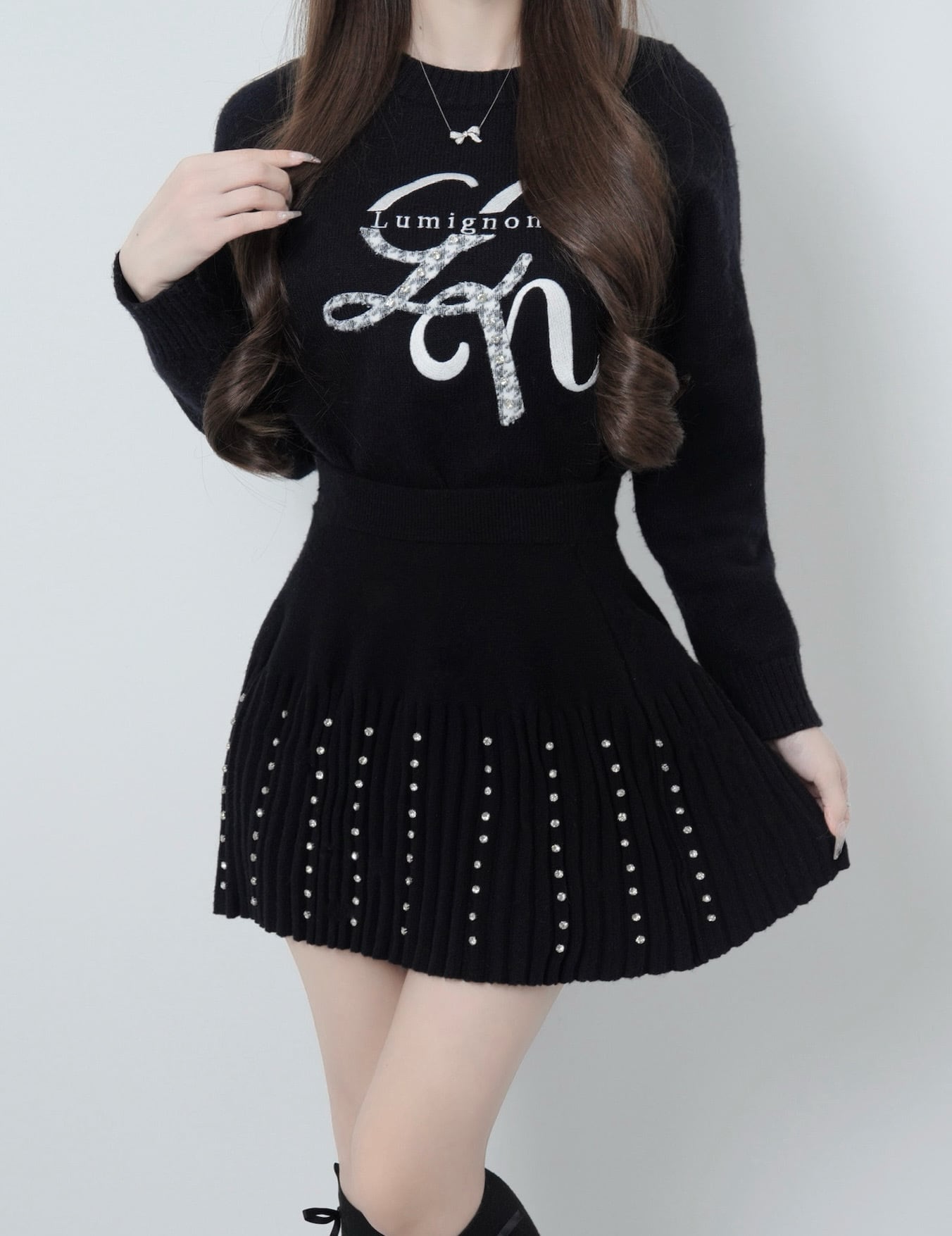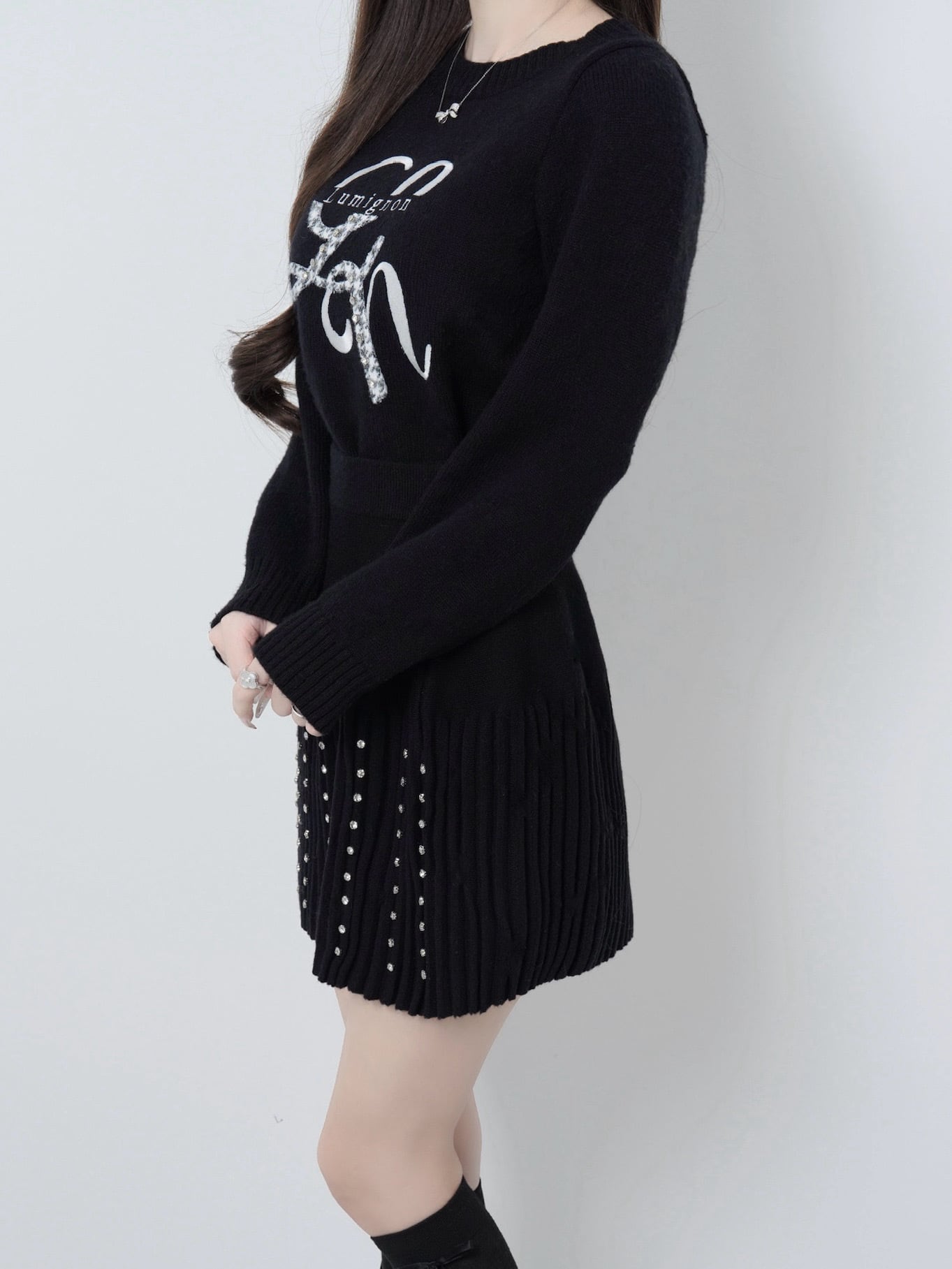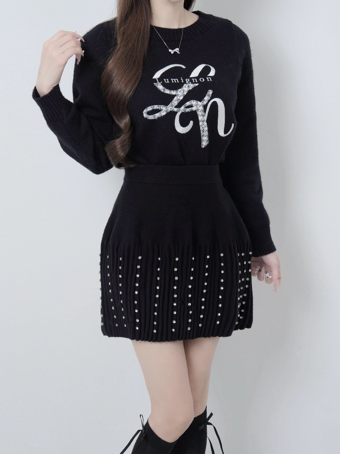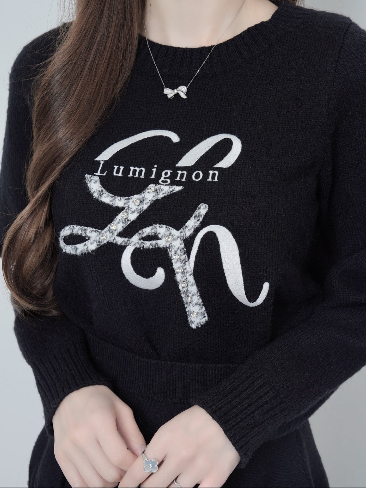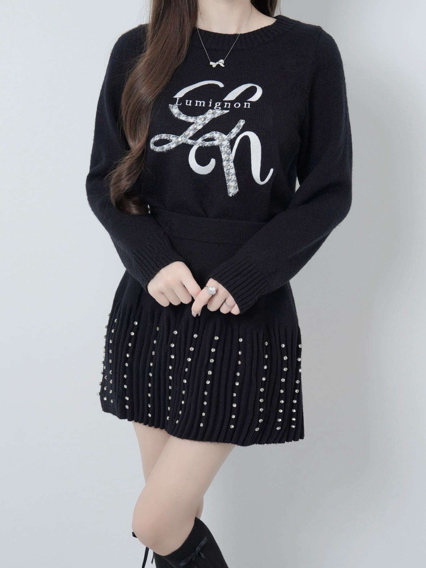 Lumignon original ♥ Lumi logo houndstooth knit【ブラック】