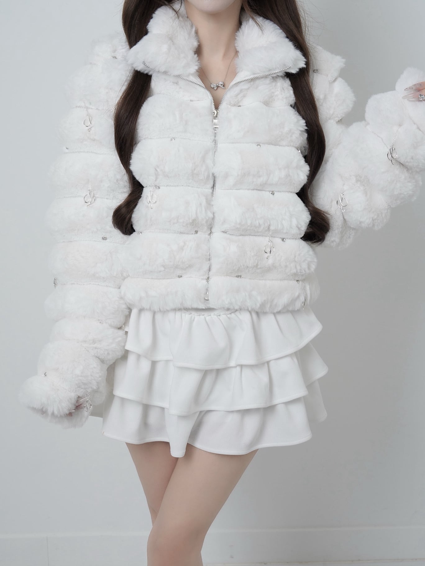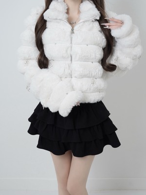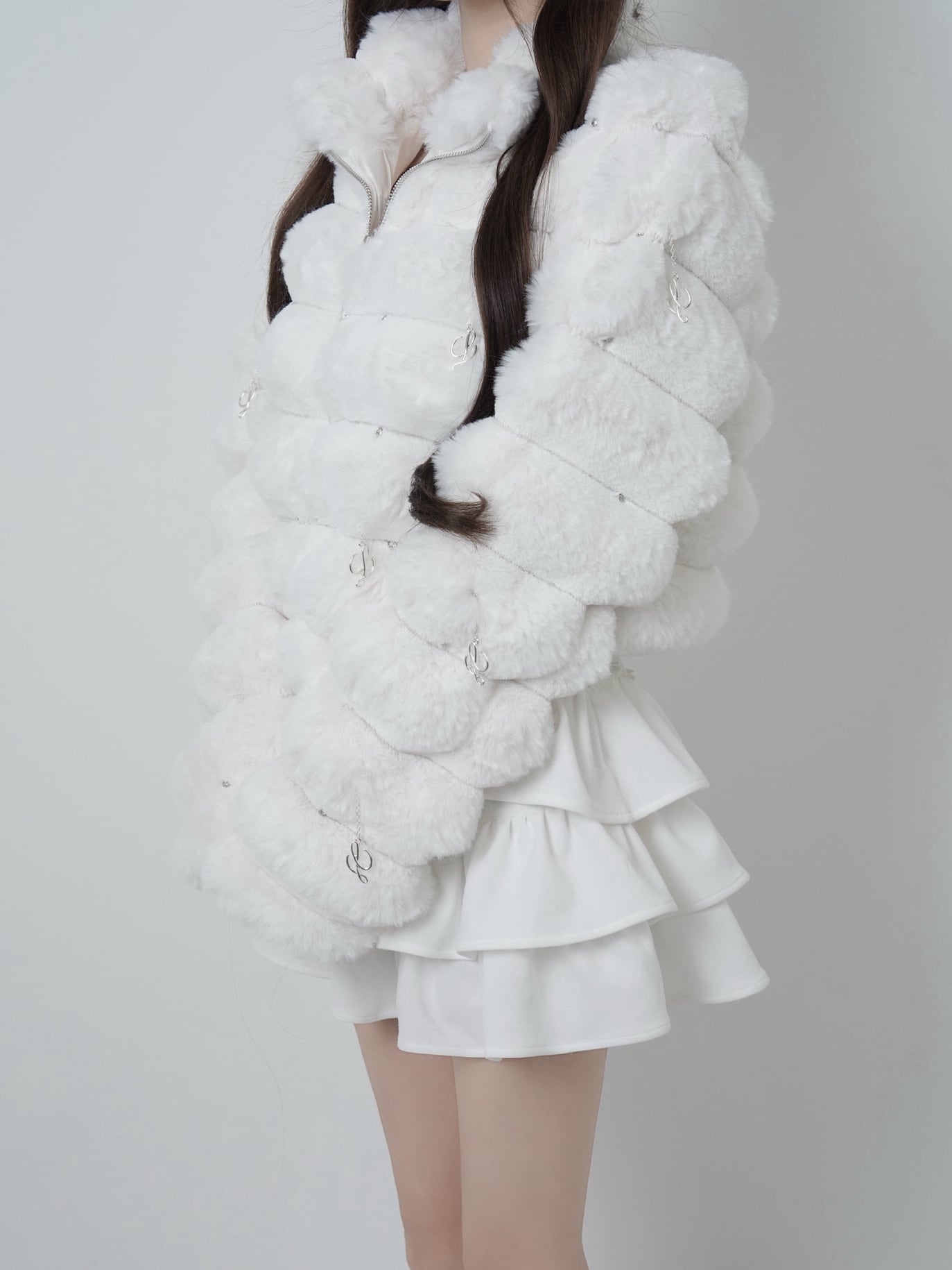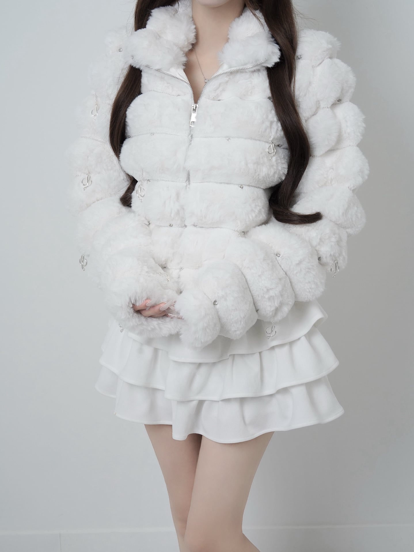 Lumignon original ♥ Lumi puff kirakira bijou fur coat【ホワイト】