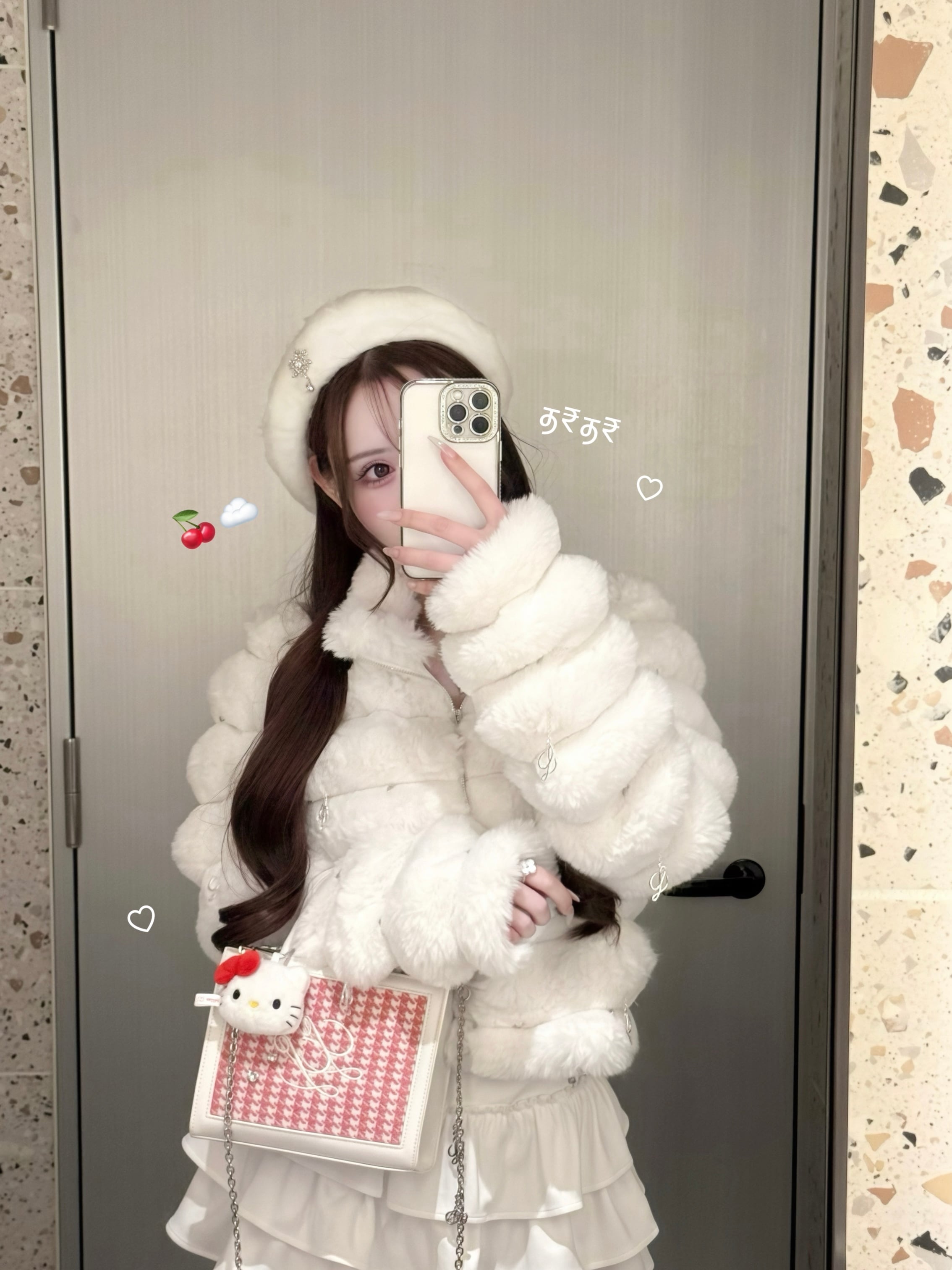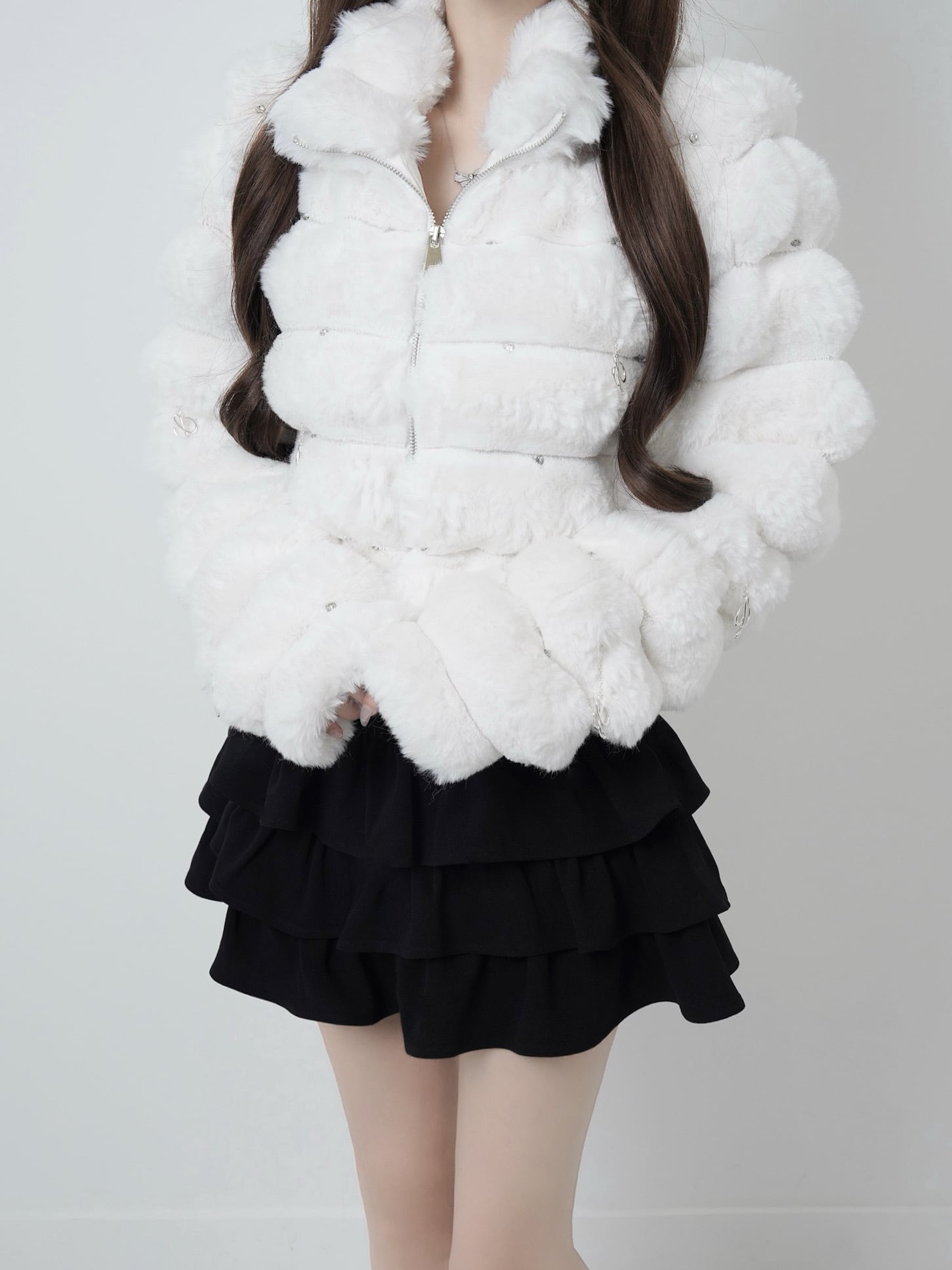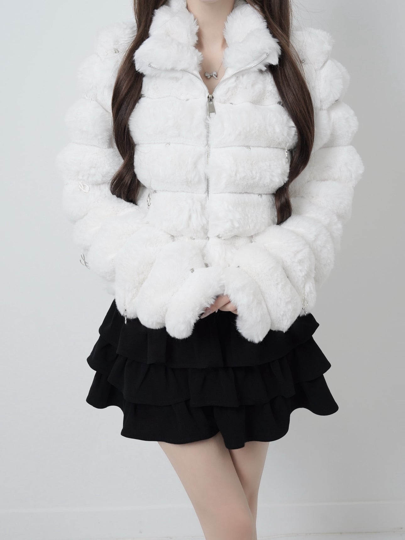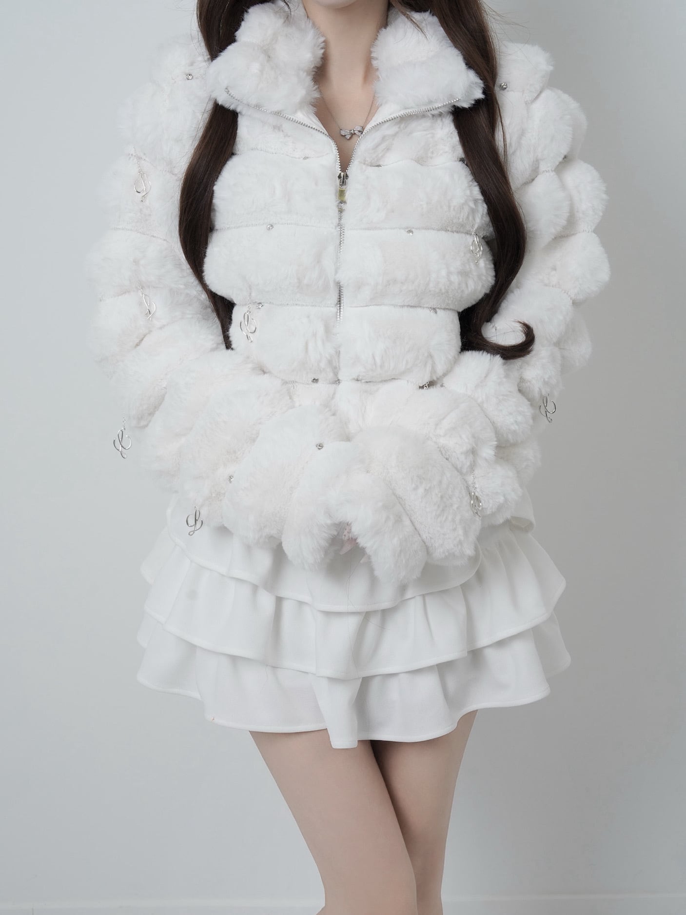 Lumignon original ♥ Lumi puff kirakira bijou fur coat【ホワイト】