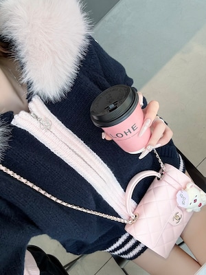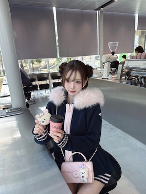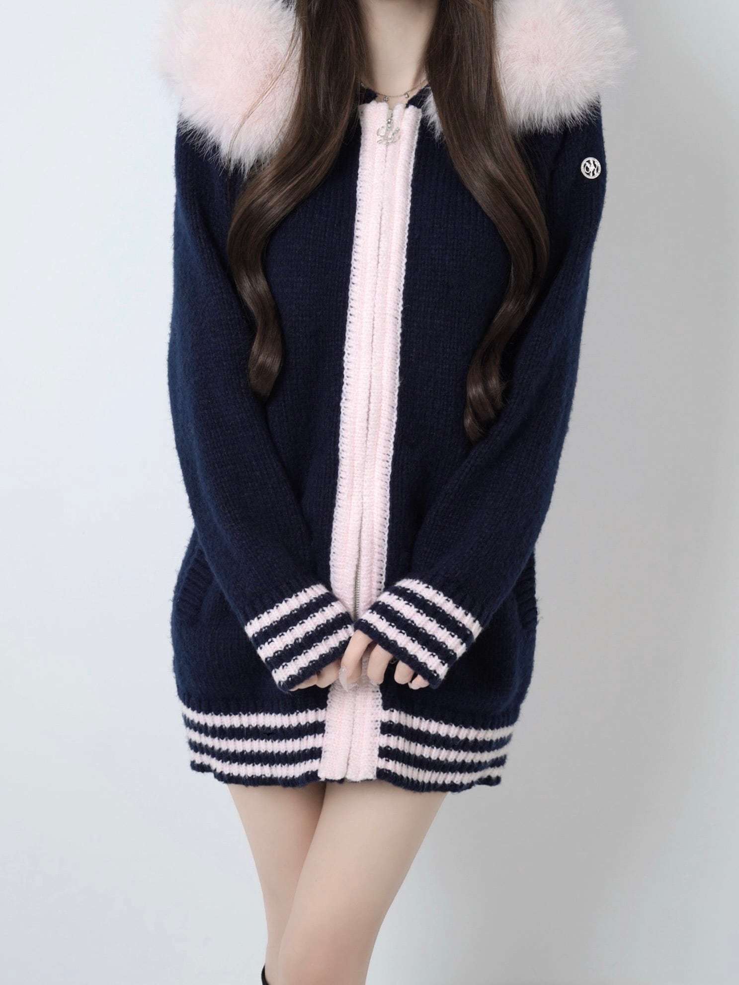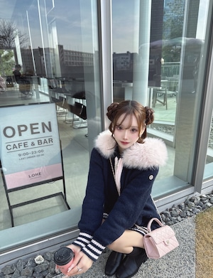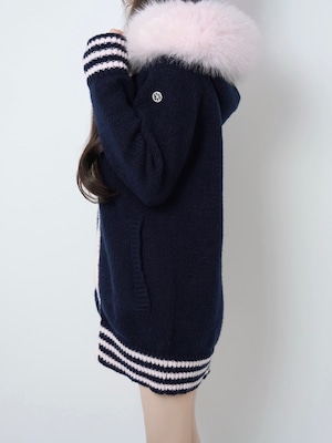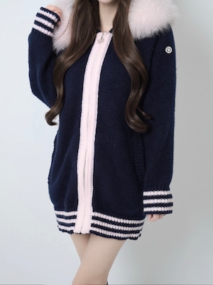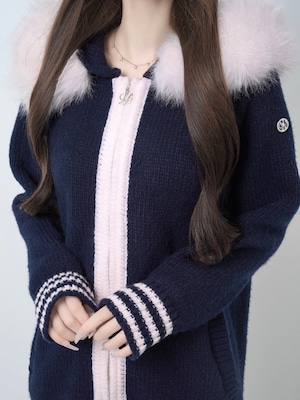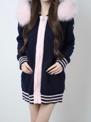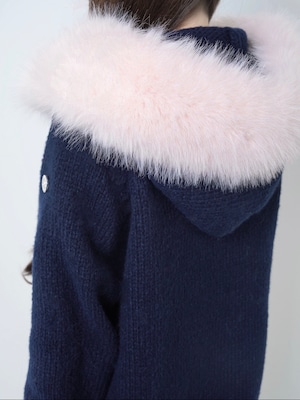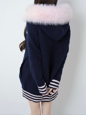 Lumignon original ♥ Big Fur knit hoodie【ネイビー×ピンク】