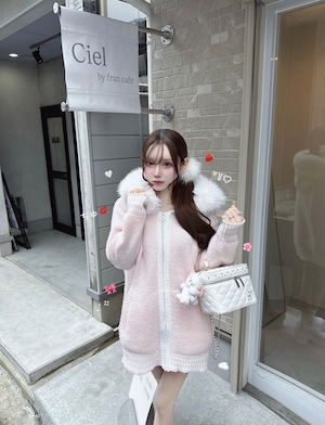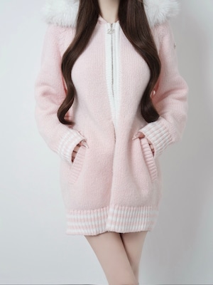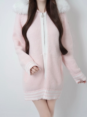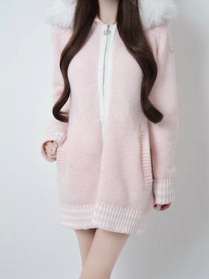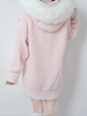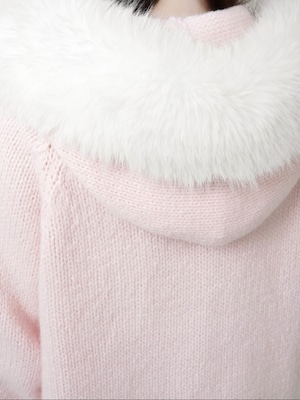 【受注】Lumignon original ♥ Big Fur knit hoodie【ピンク×ホワイト】
