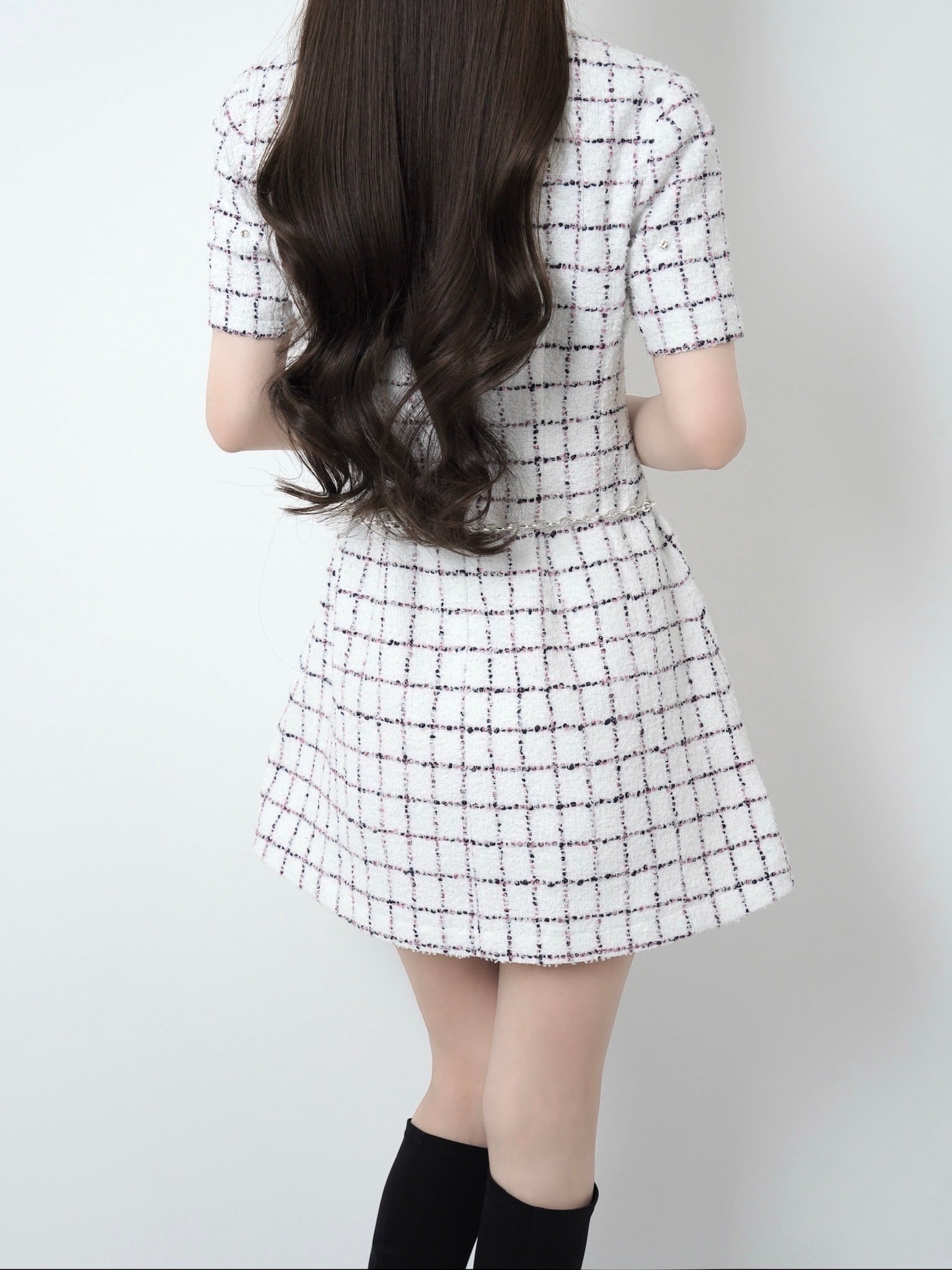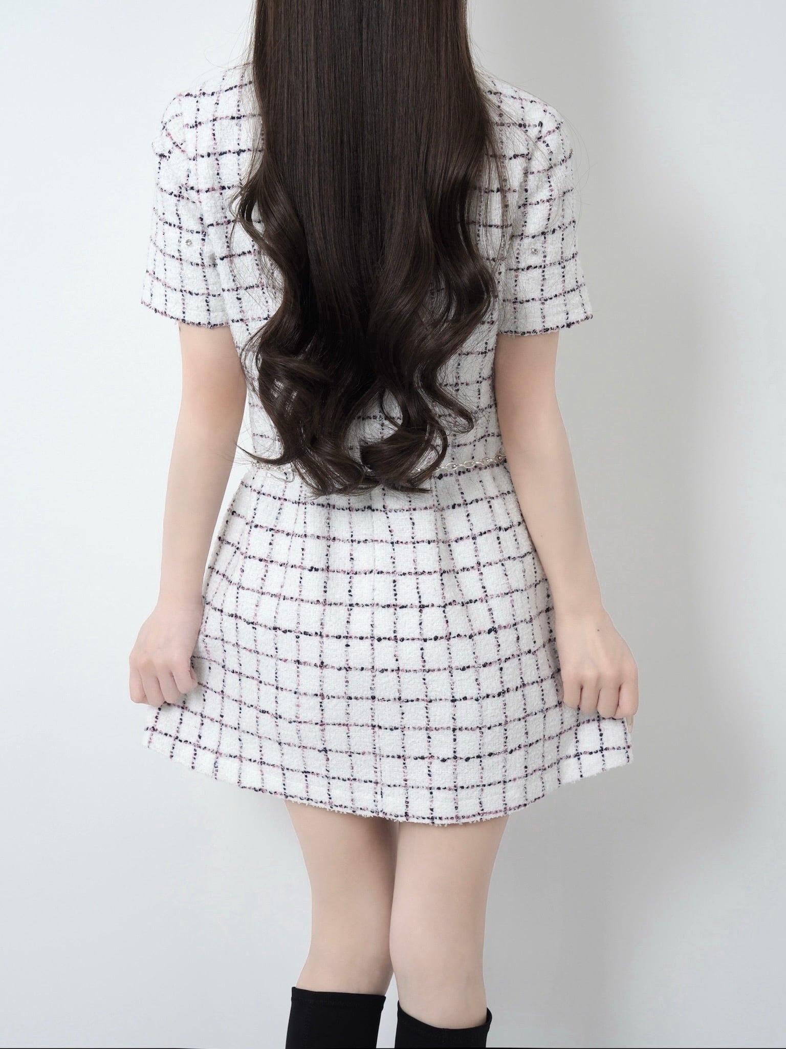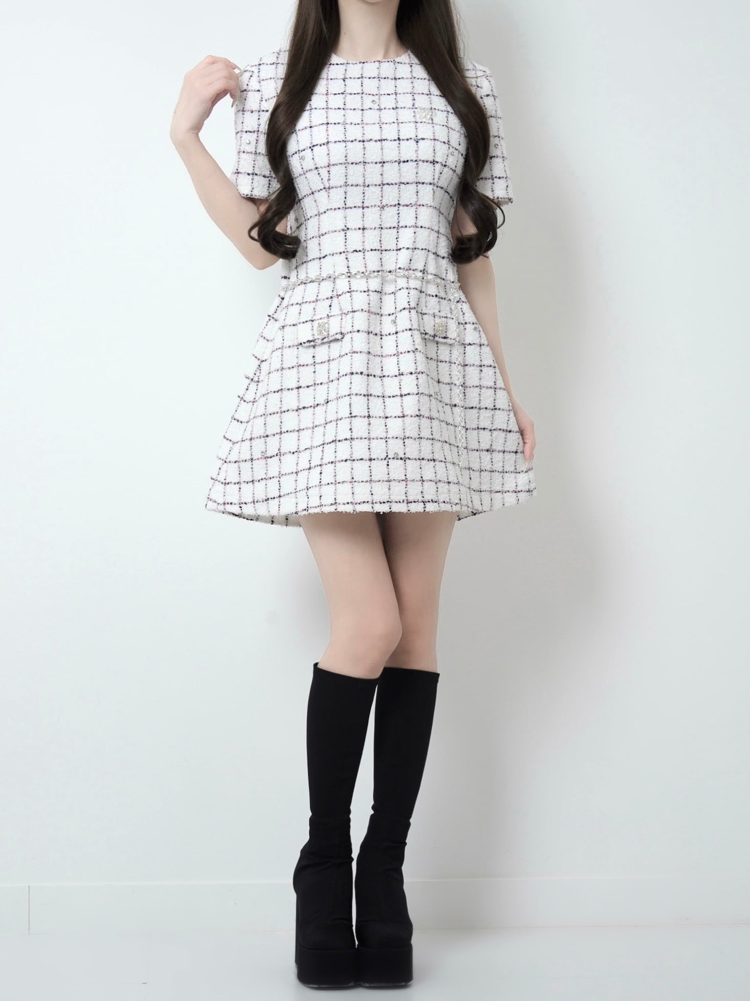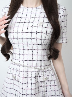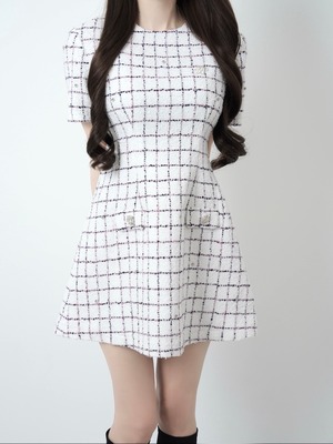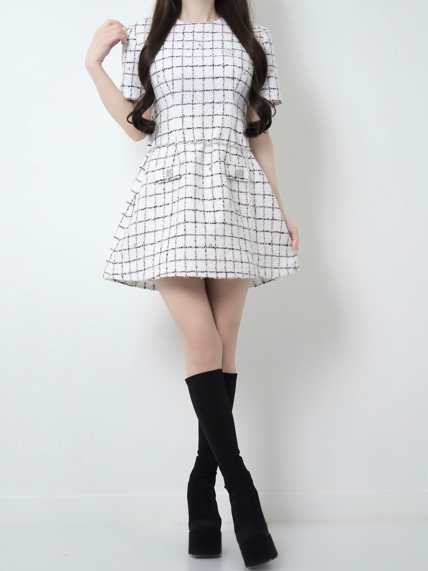 Lumignon original ♥ Pink tweed bijou flare dress 【ホワイト】