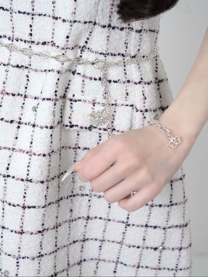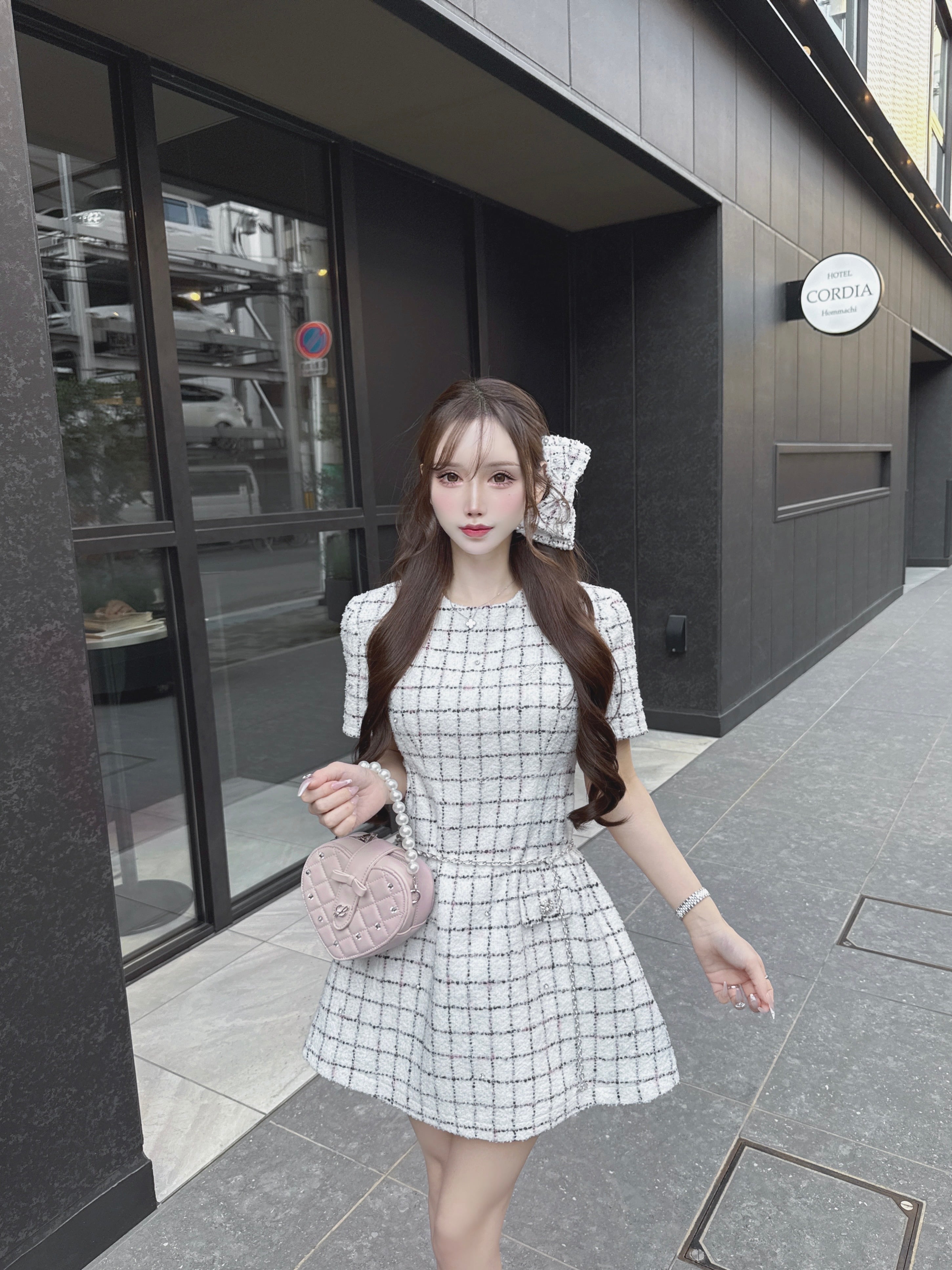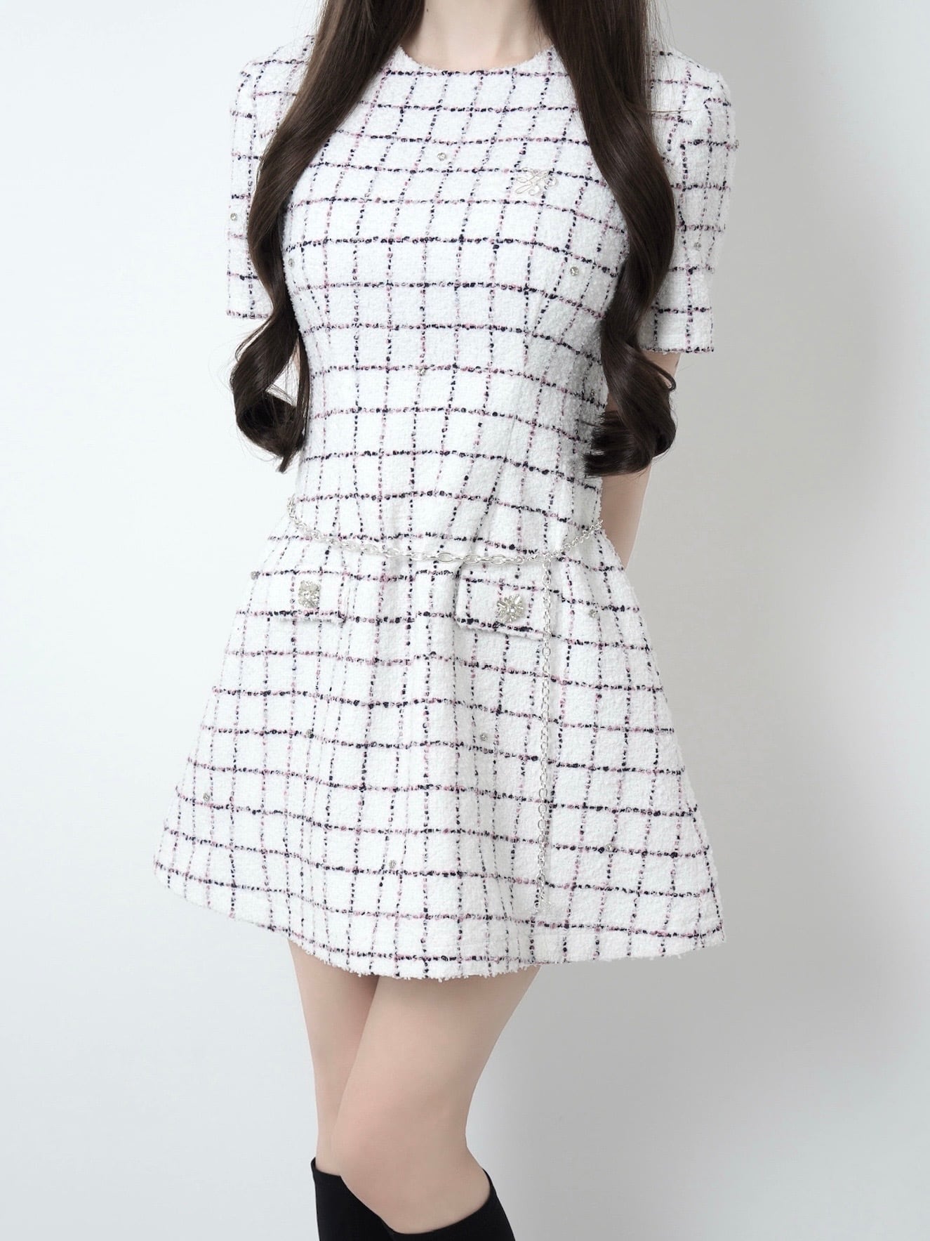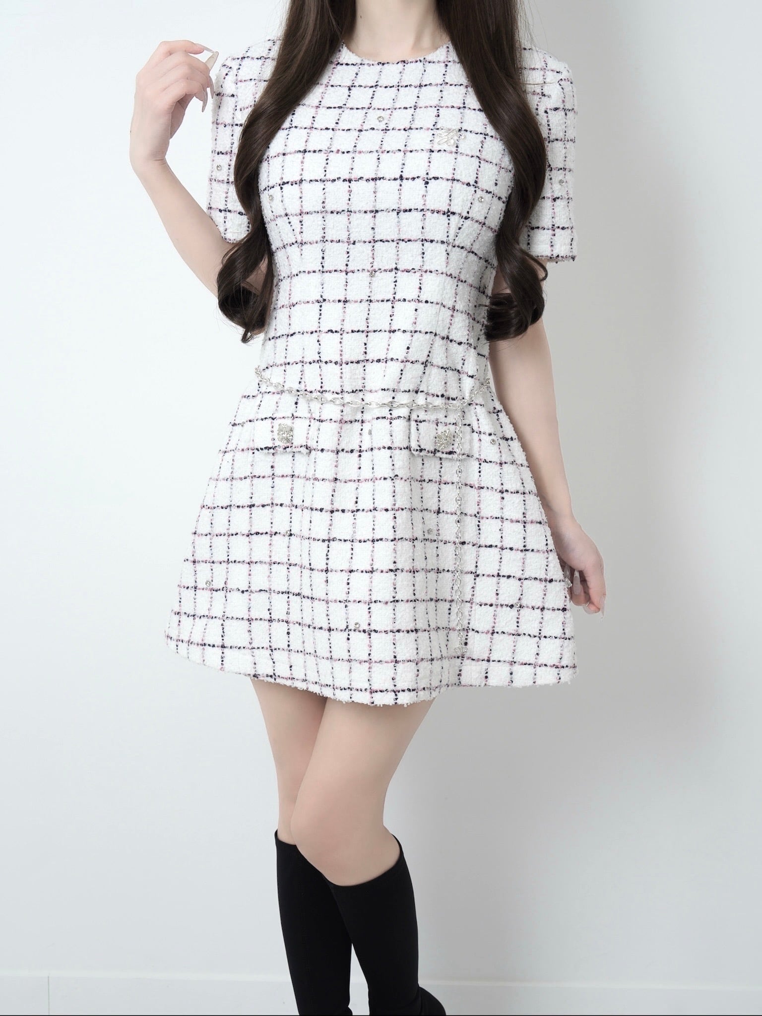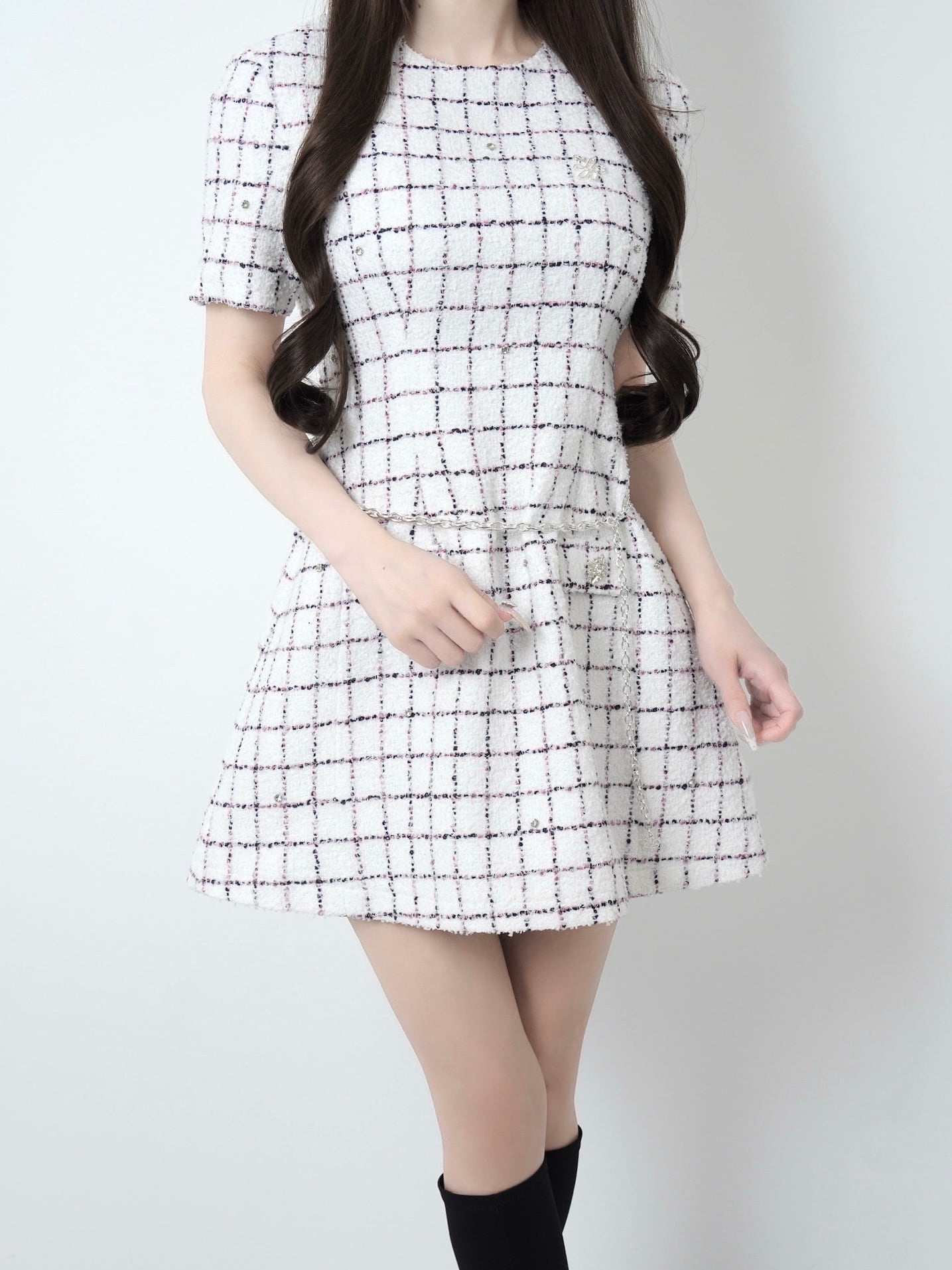 Lumignon original ♥ Pink tweed bijou flare dress 【ホワイト】