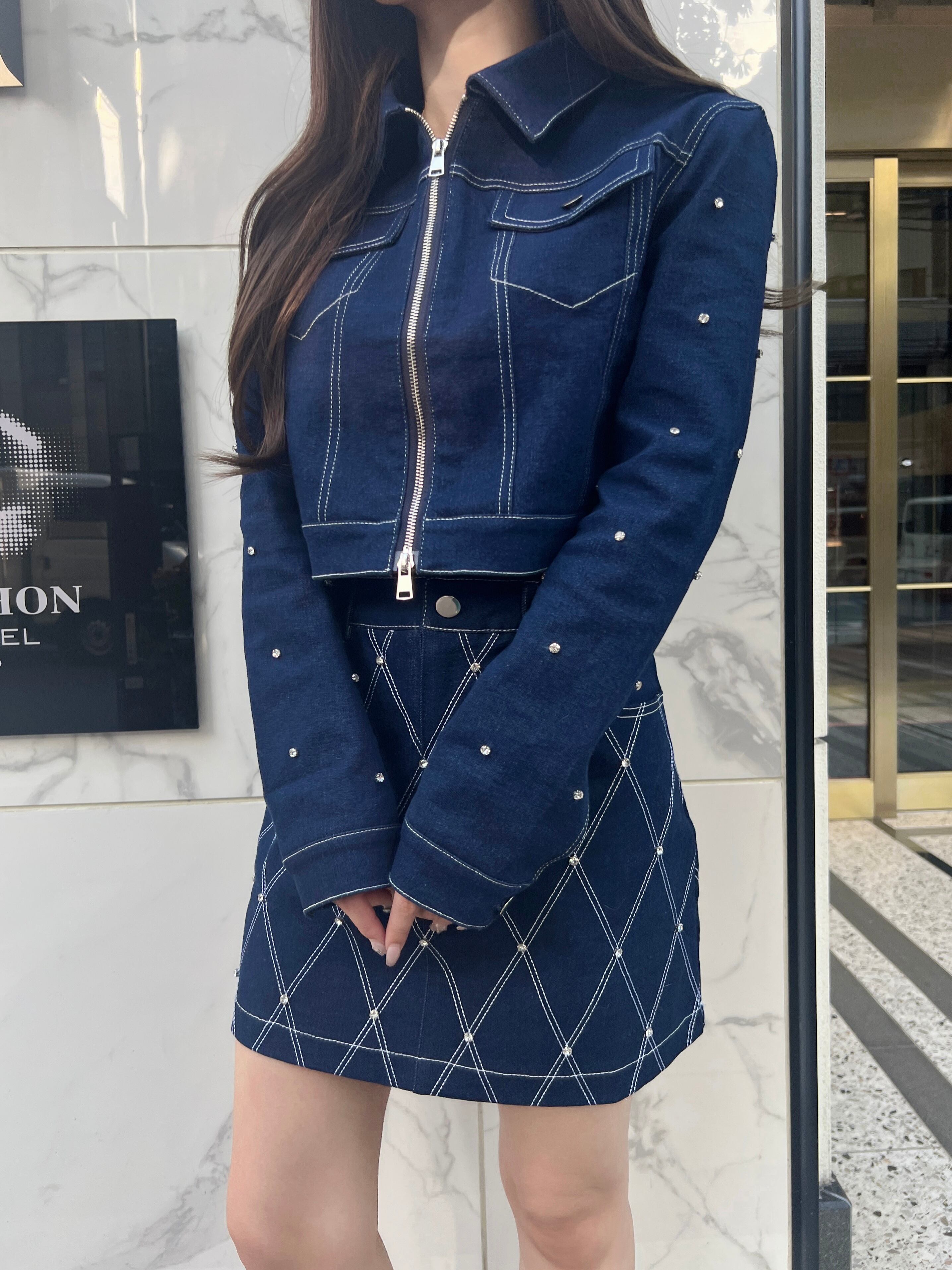 Lumignon original ♥ Denim white stitch kirakira skirt