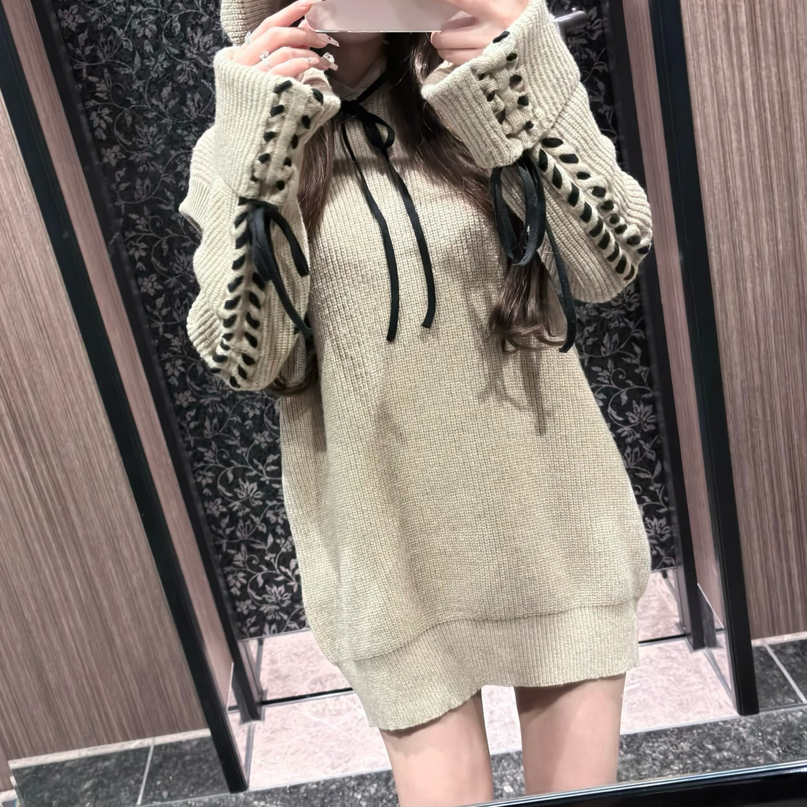 袖の編みリボンがと配色がかわいすぎる!!୨୧