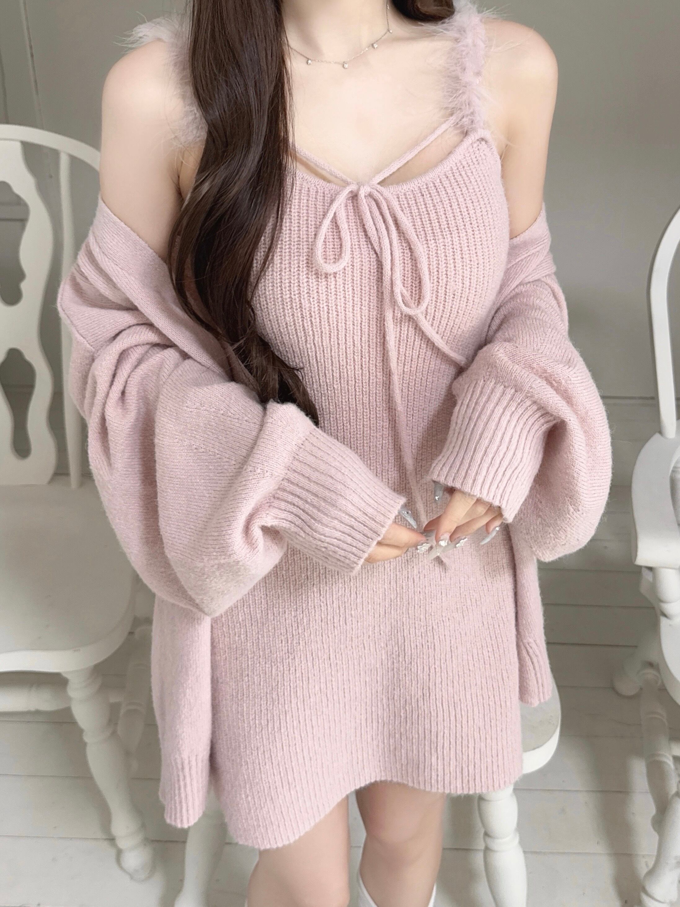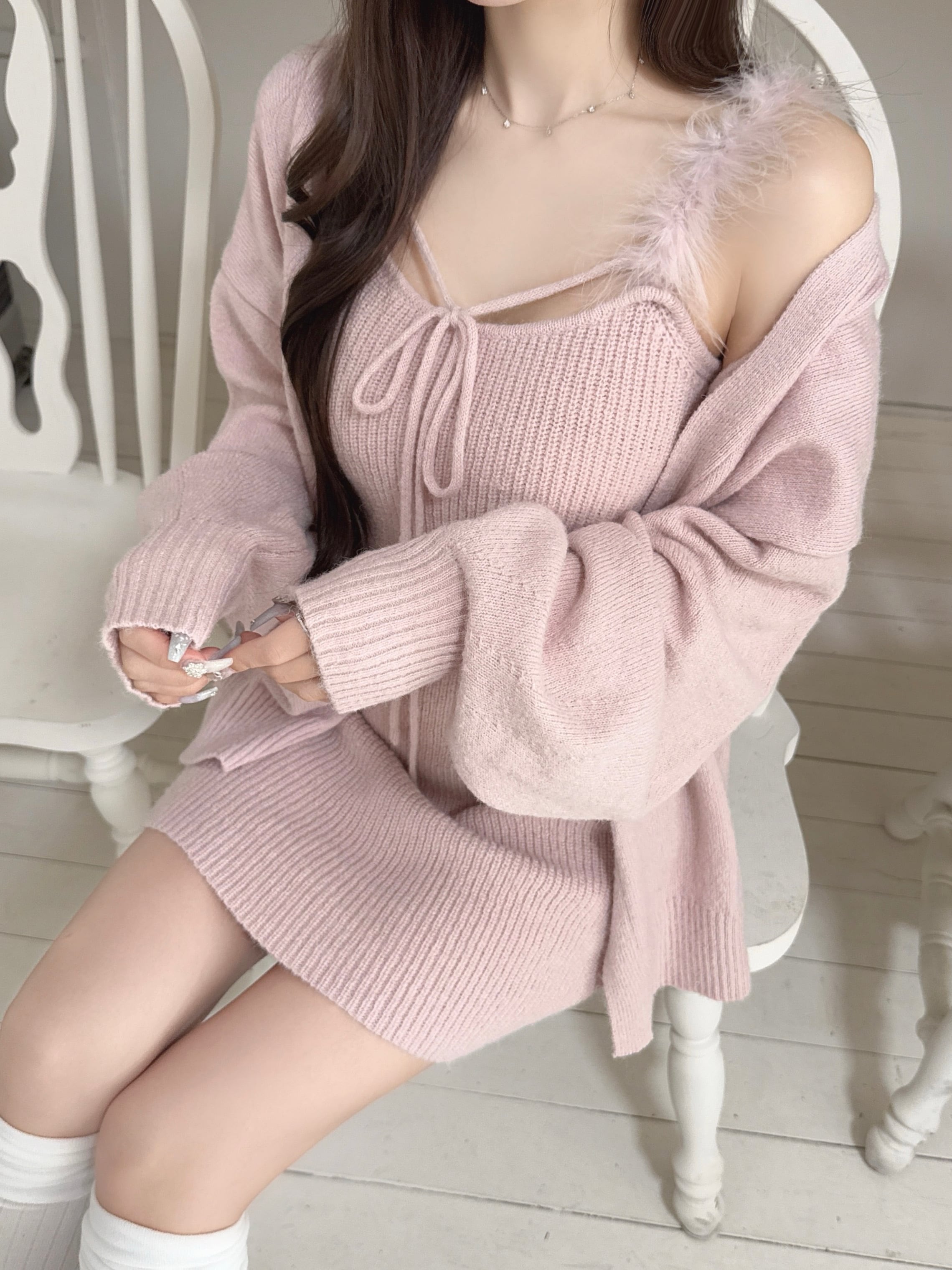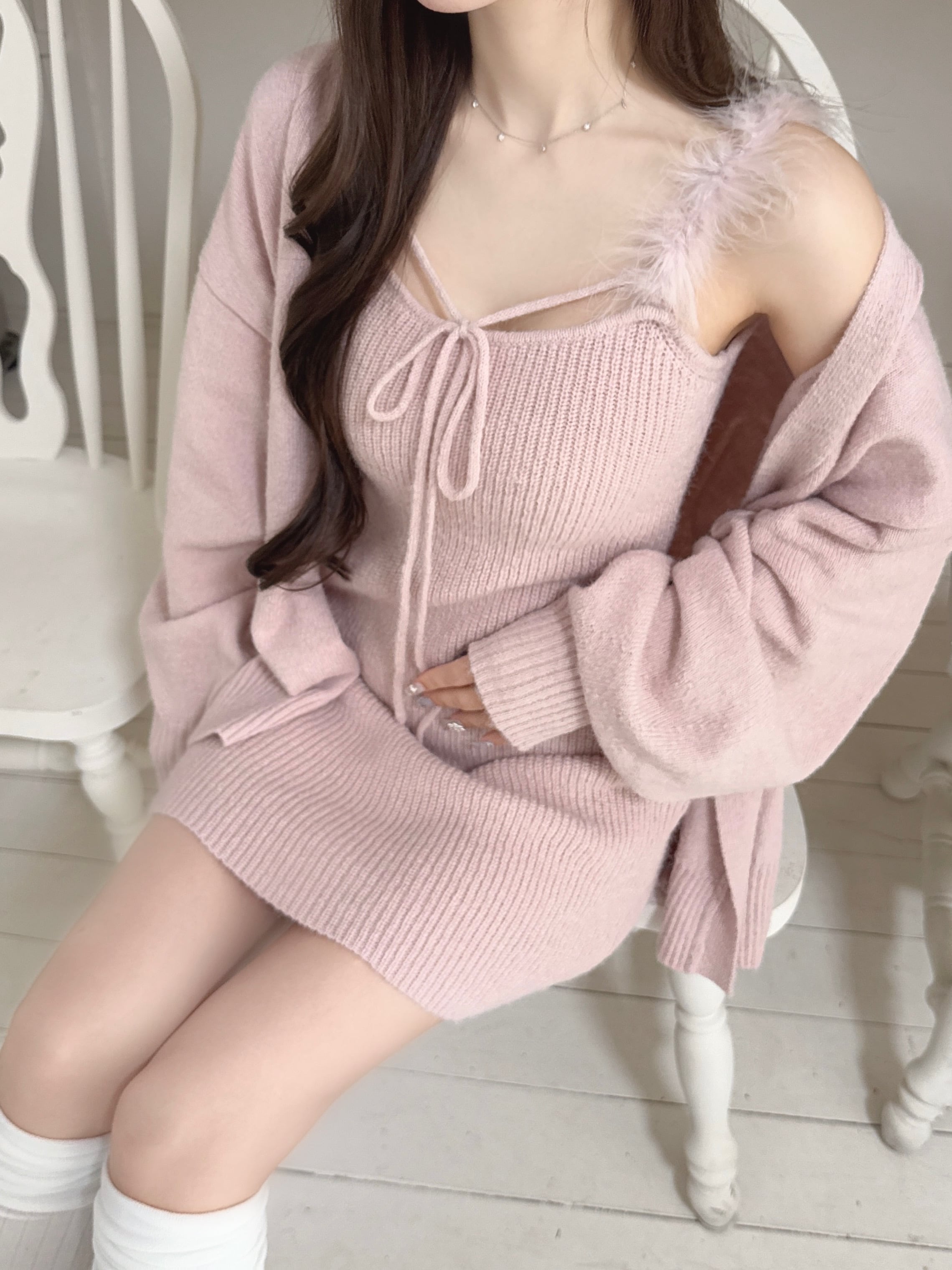 Lumignon original ♥feather ribbon op + cardigan【ピンク】