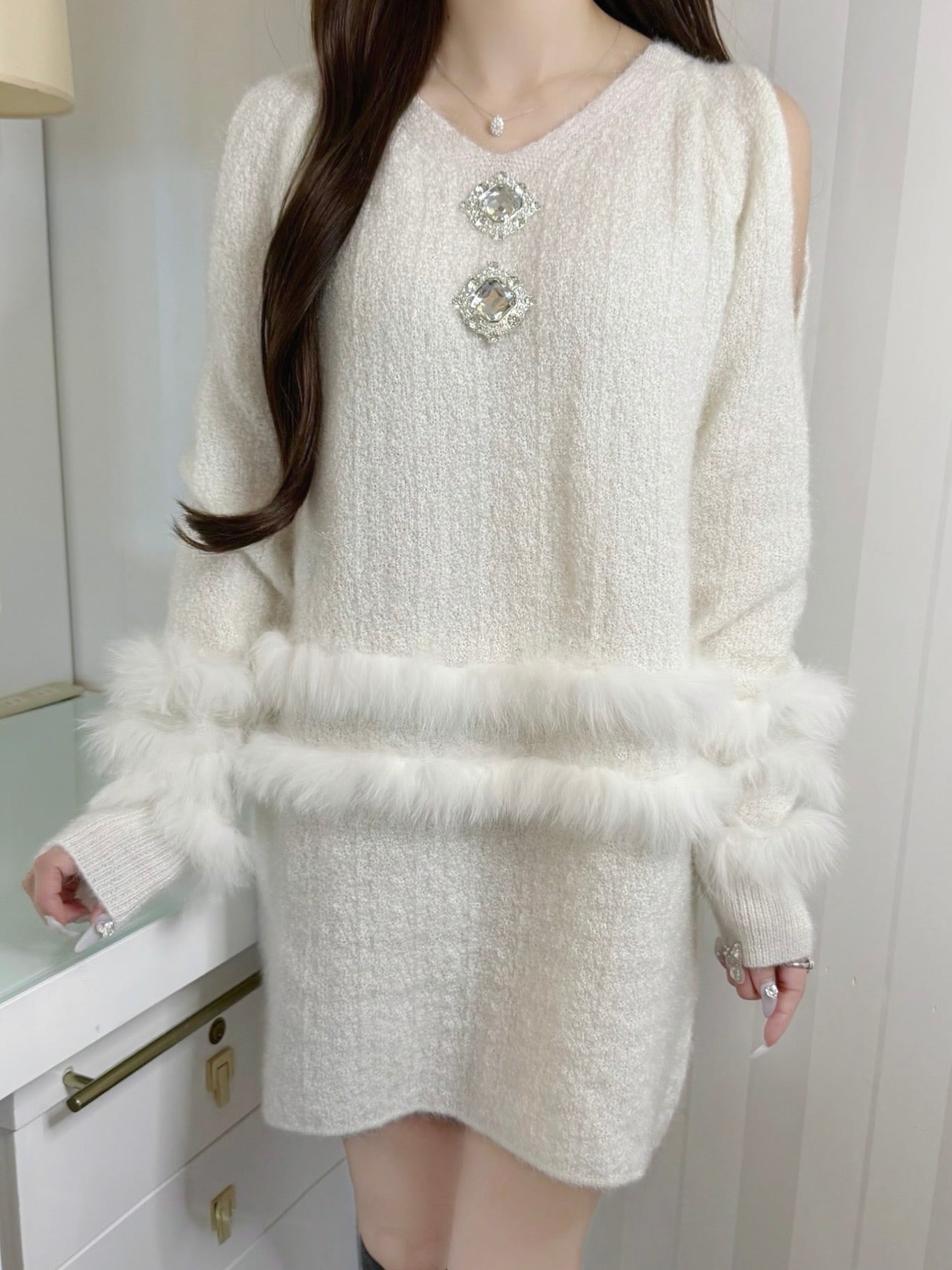 Lumignon original ♥ kirakira fur knit op【ホワイト】