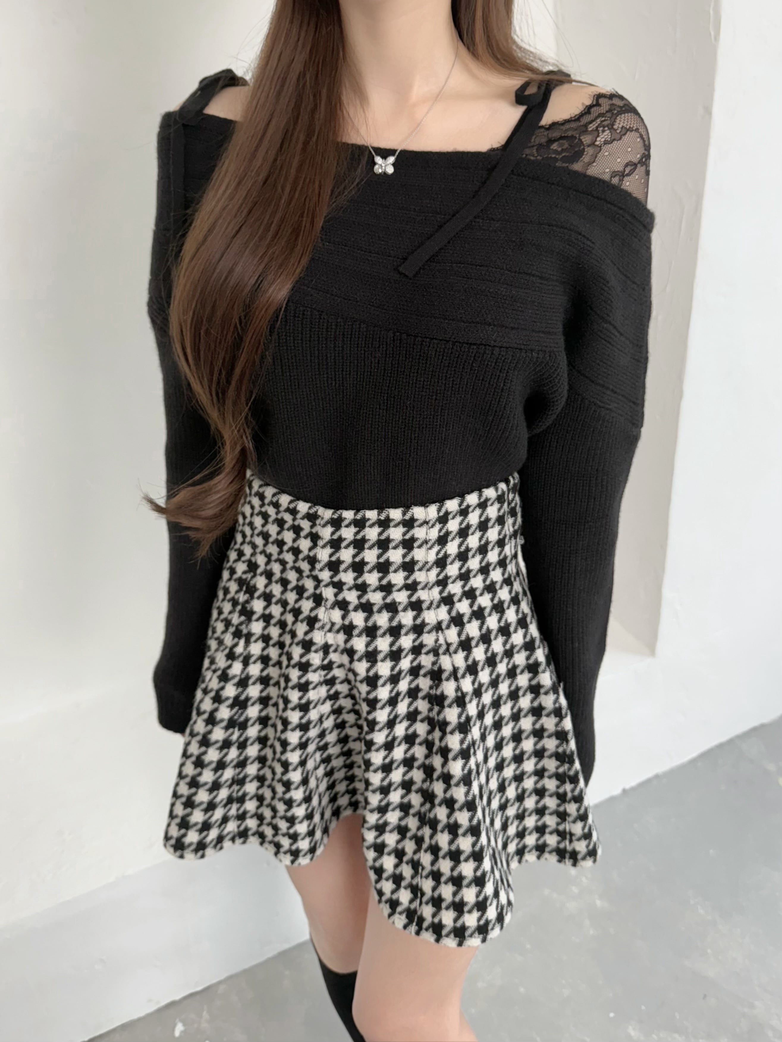 Lumignon original ♥ Lace ribbon mote knit【ブラック】
